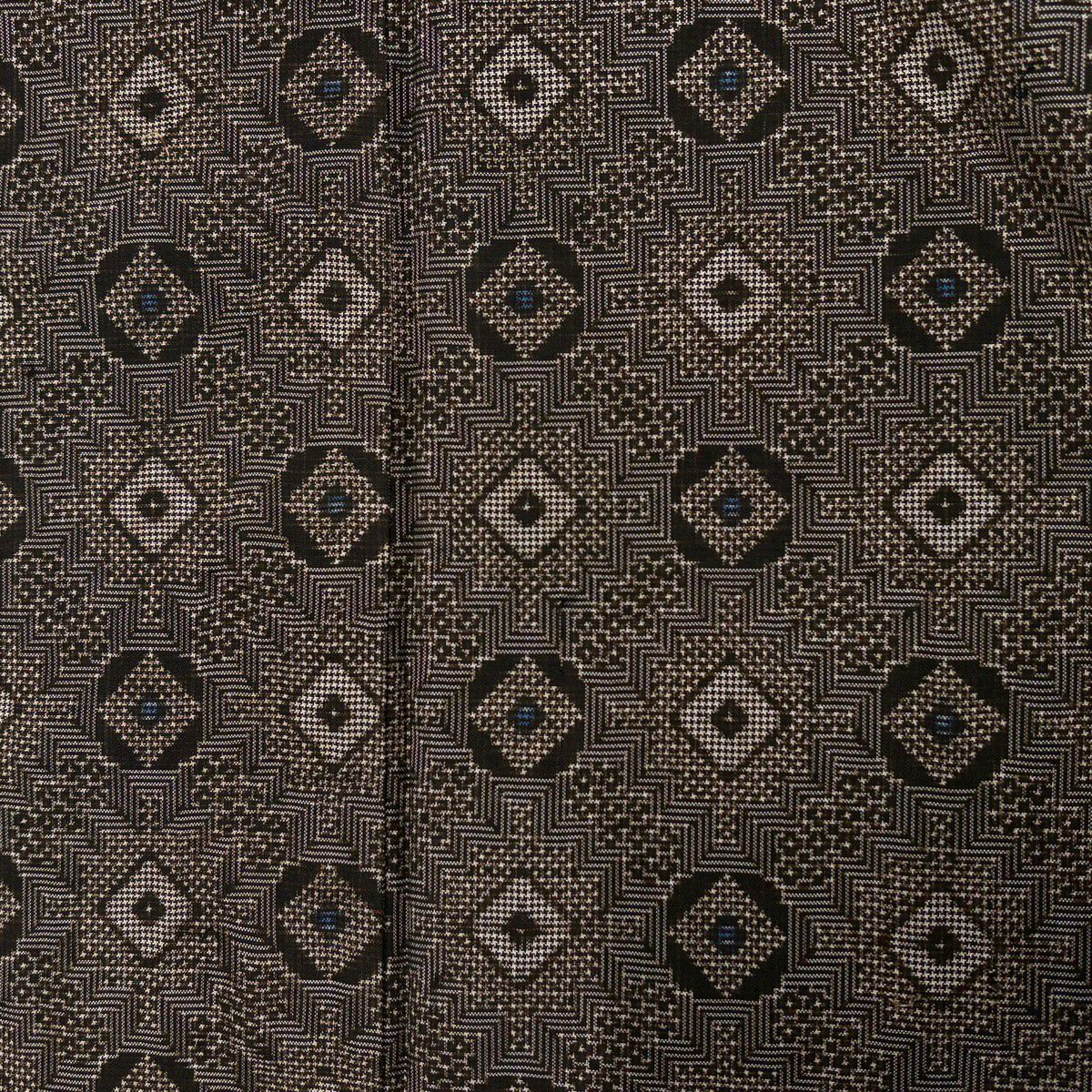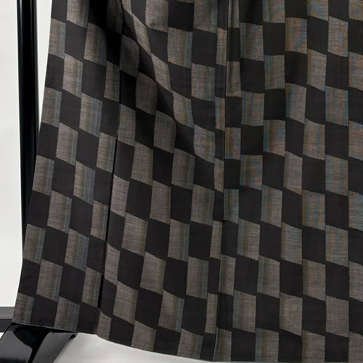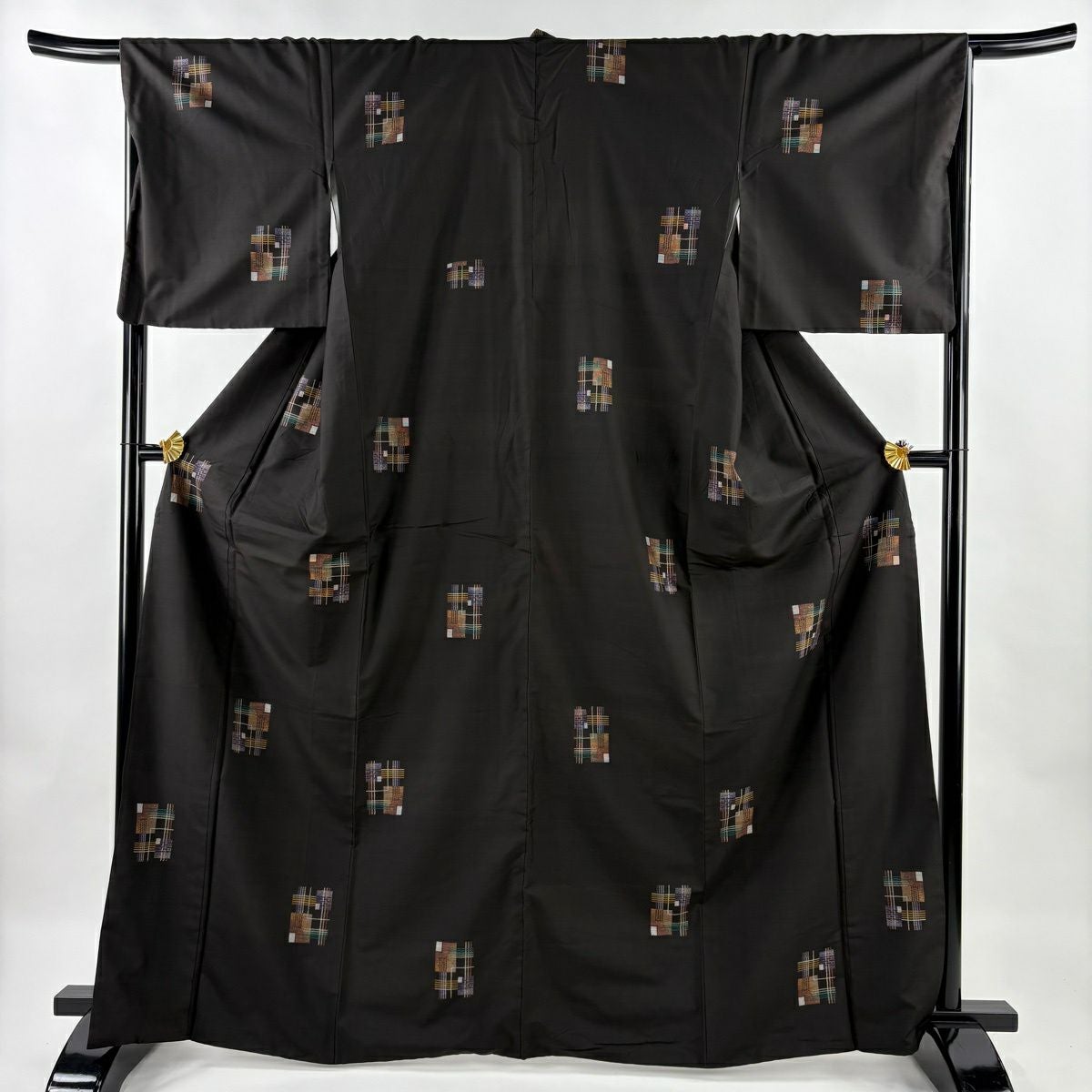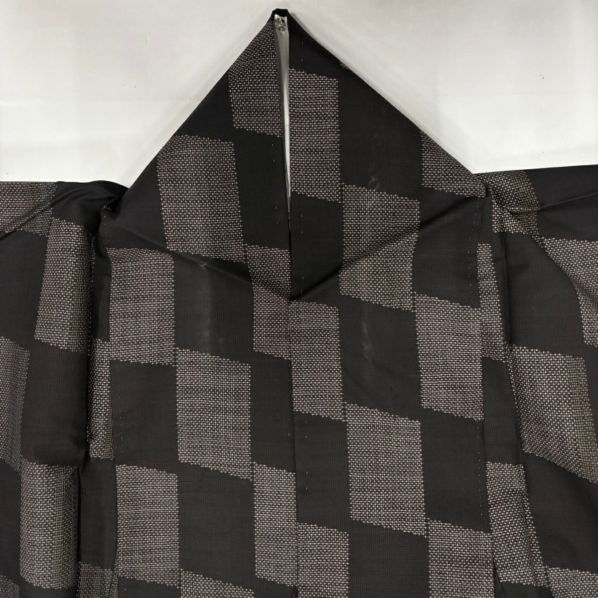 紬 身丈163.5cm 裄丈63.5cm S 袷 幾何学模様 焦茶色 正絹 秀品
