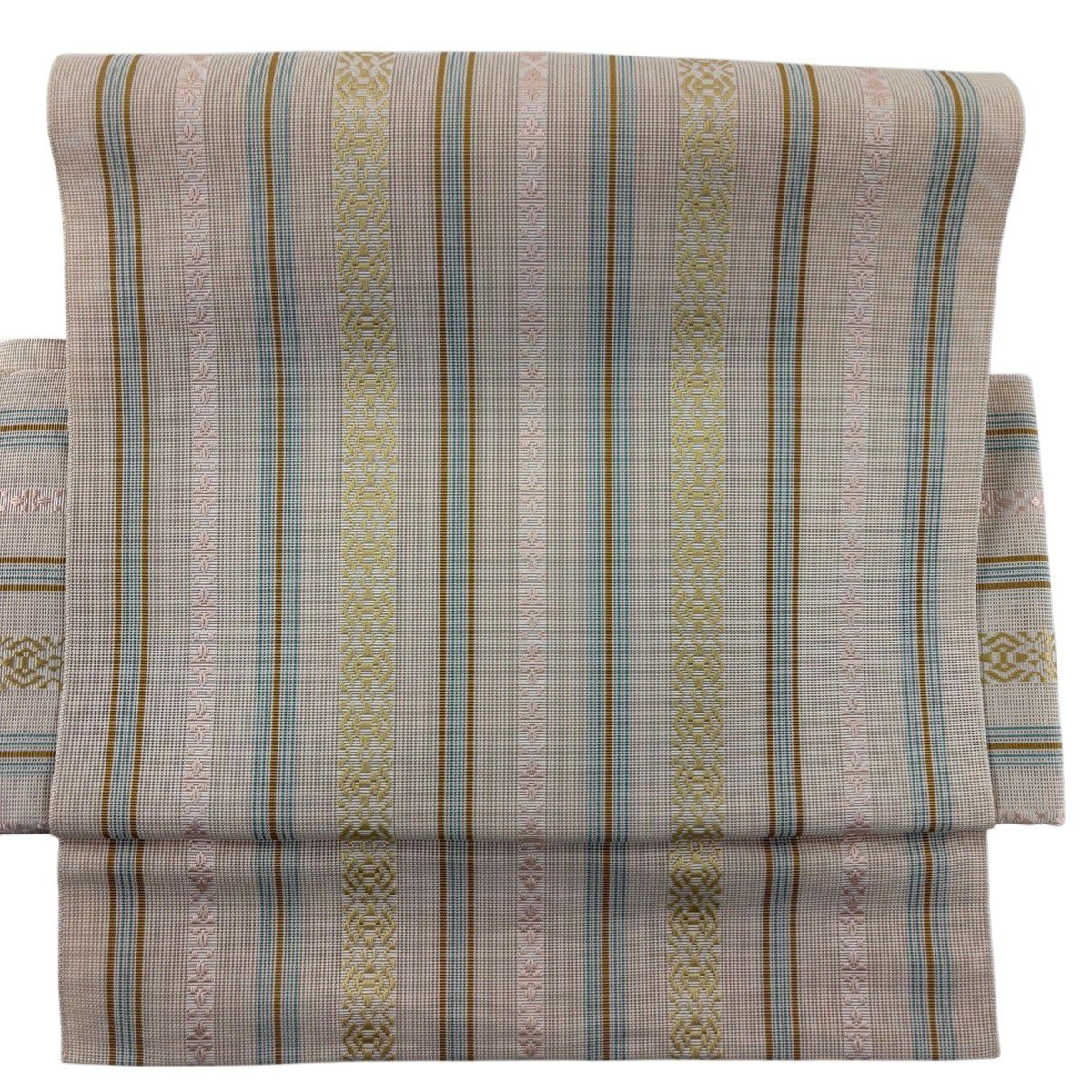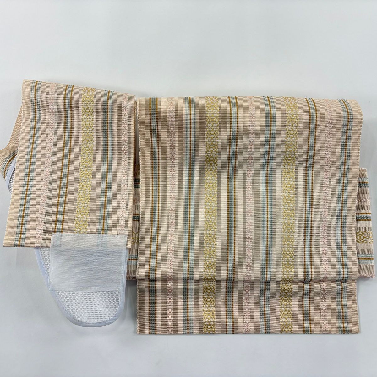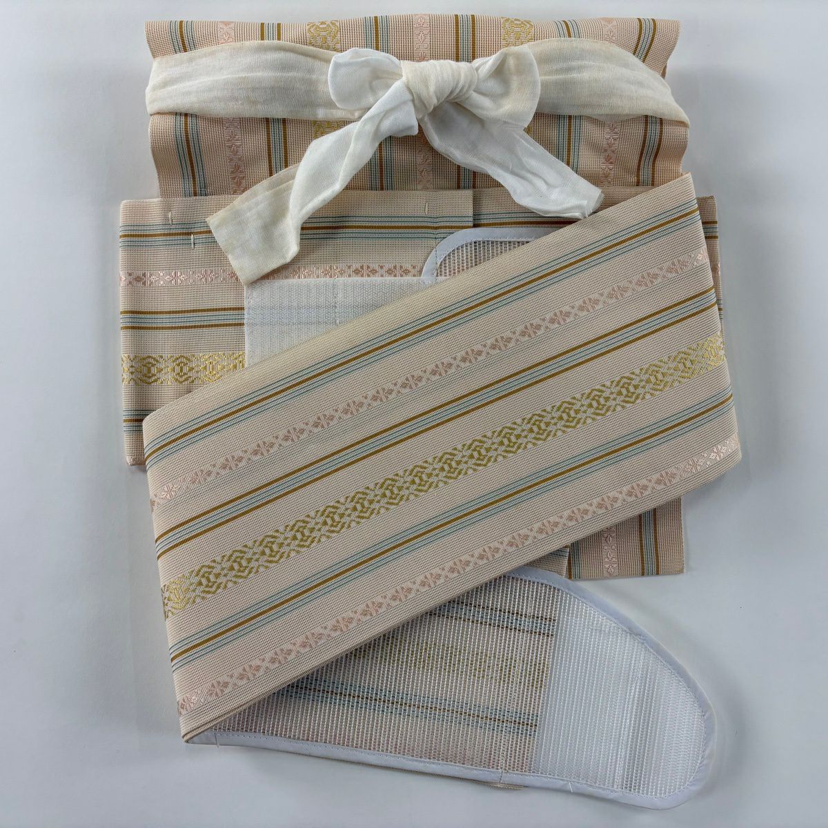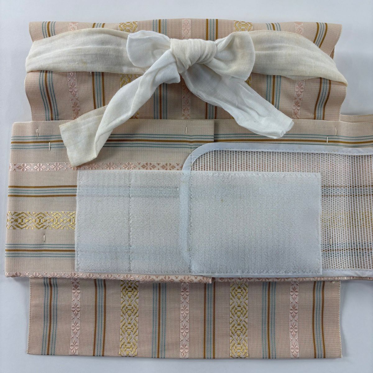 付け帯 秀品 作り帯 夏帯 縞 幾何学模様 ピンクベージュ 正絹