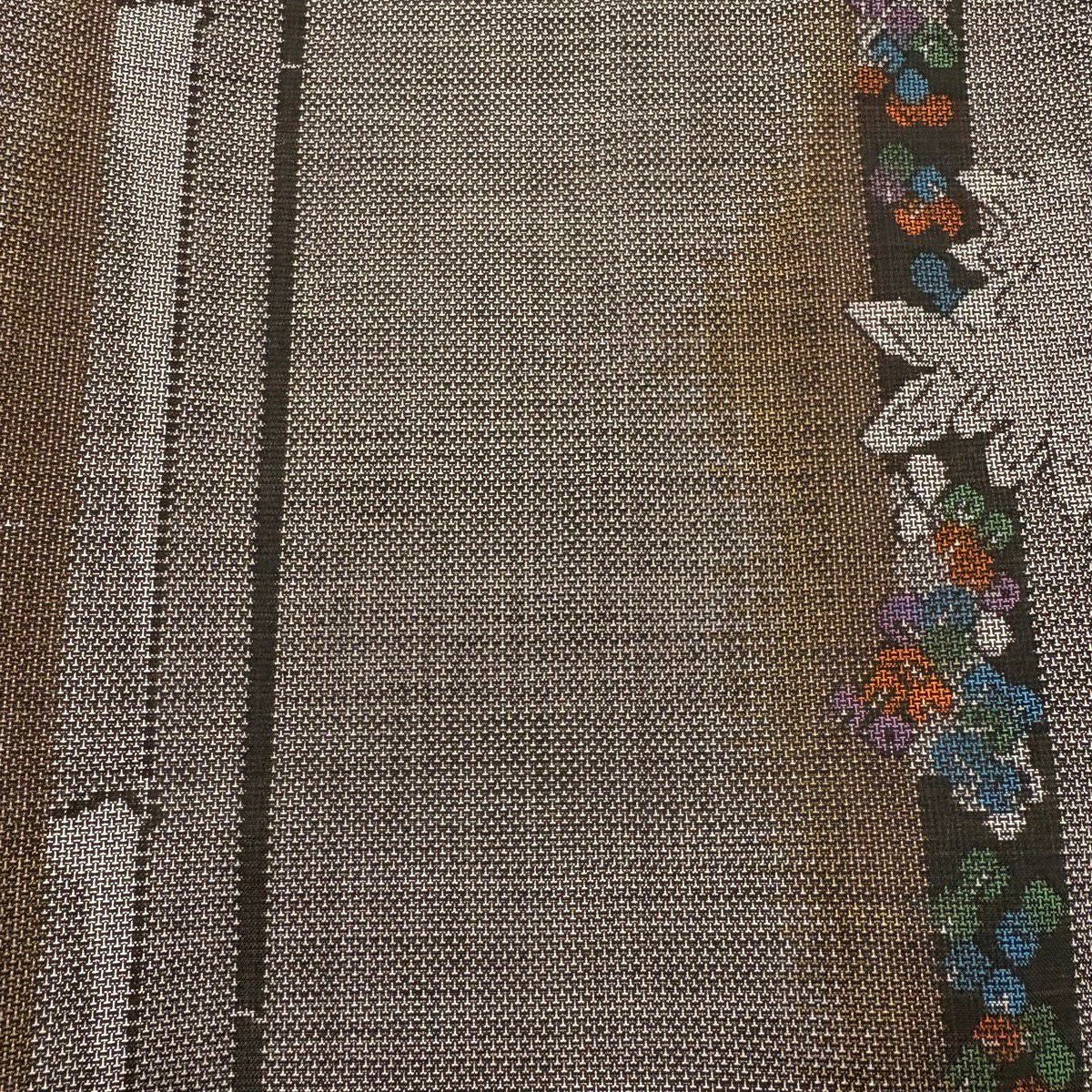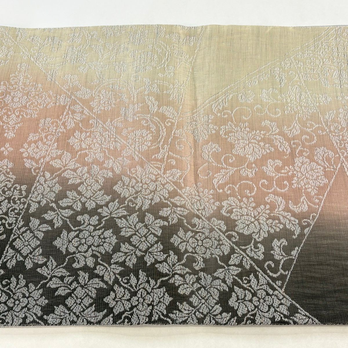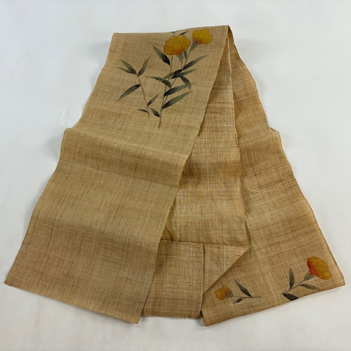 名古屋帯 秀品 夏帯 八寸名古屋帯 松葉仕立て トンネル仕立て 草花 薄茶色 麻
