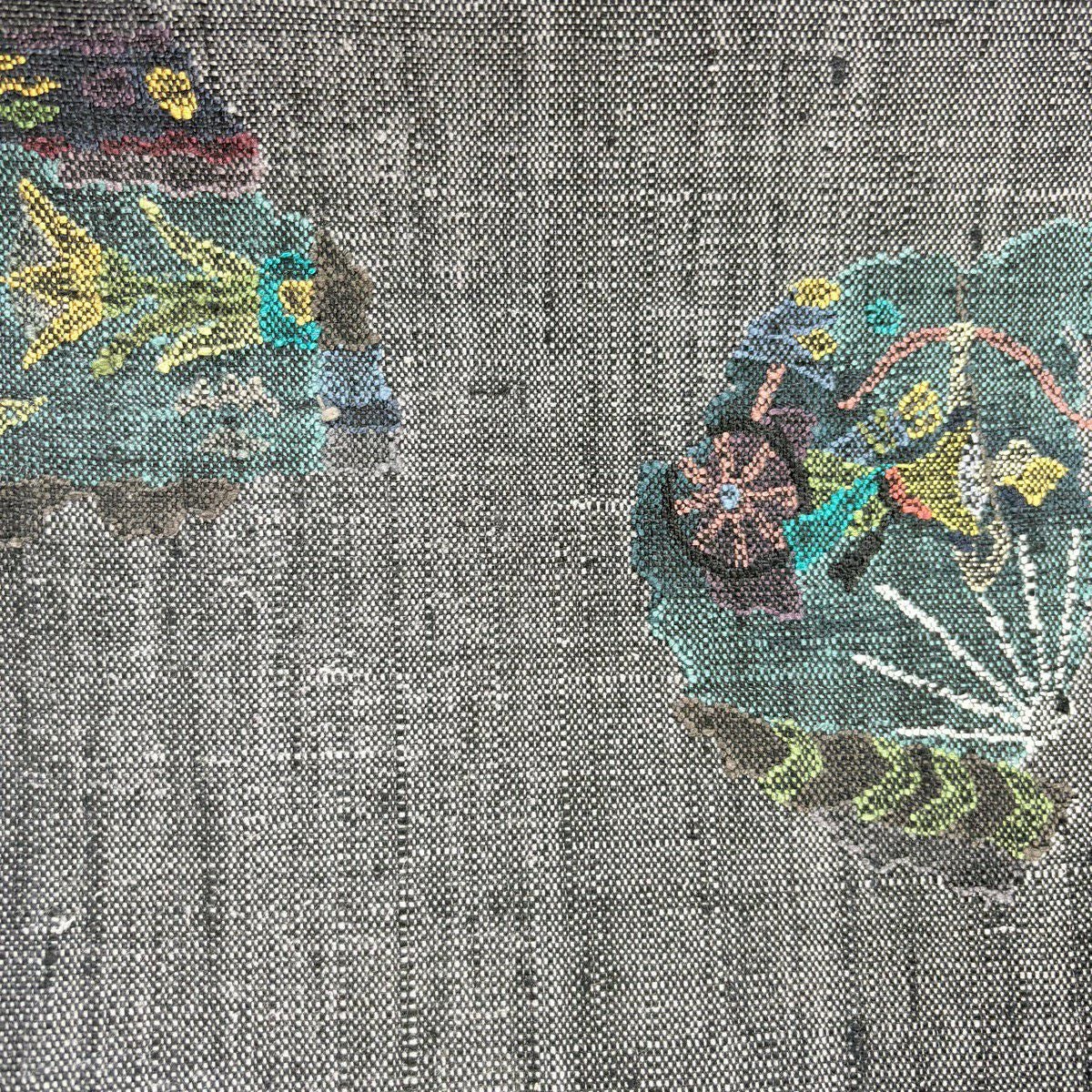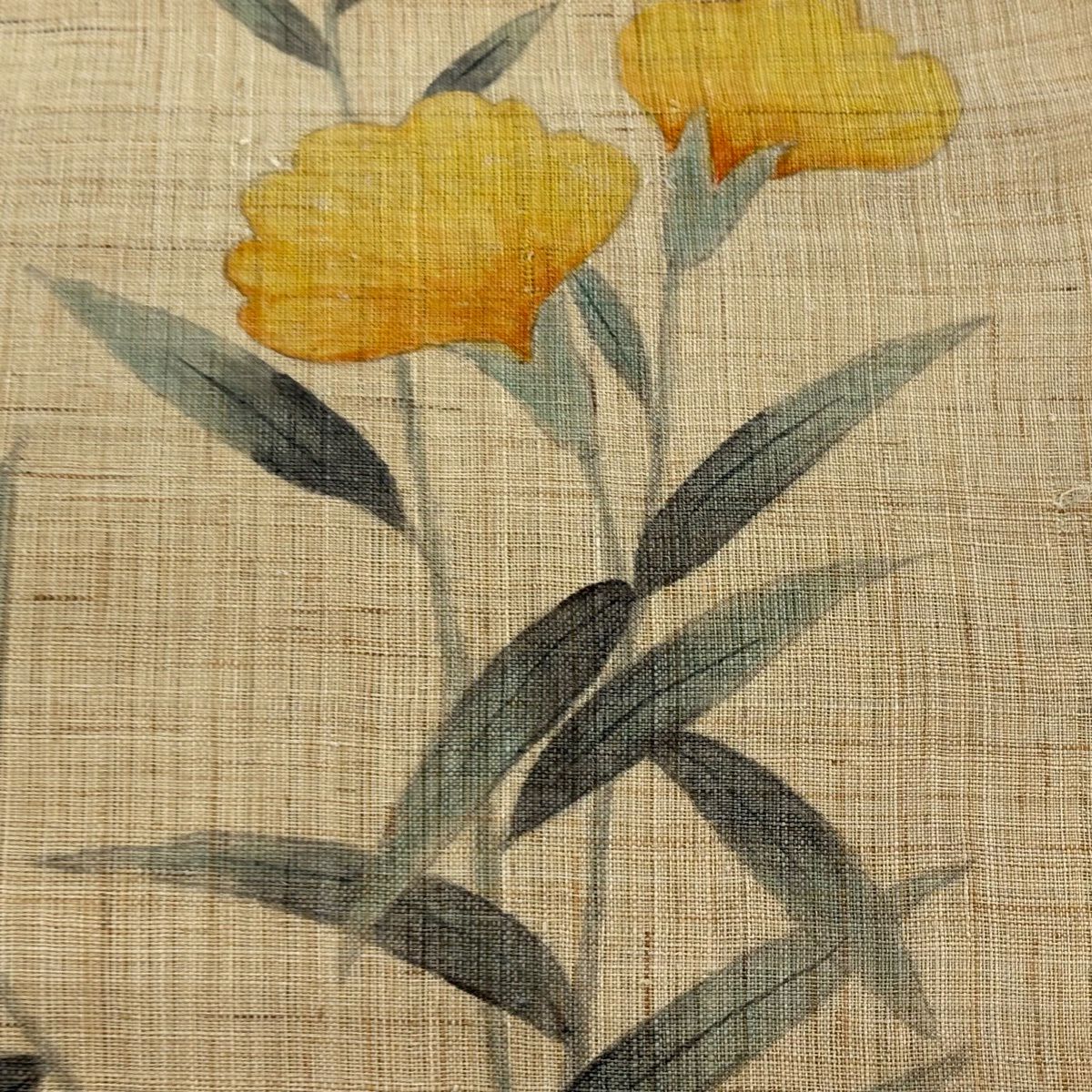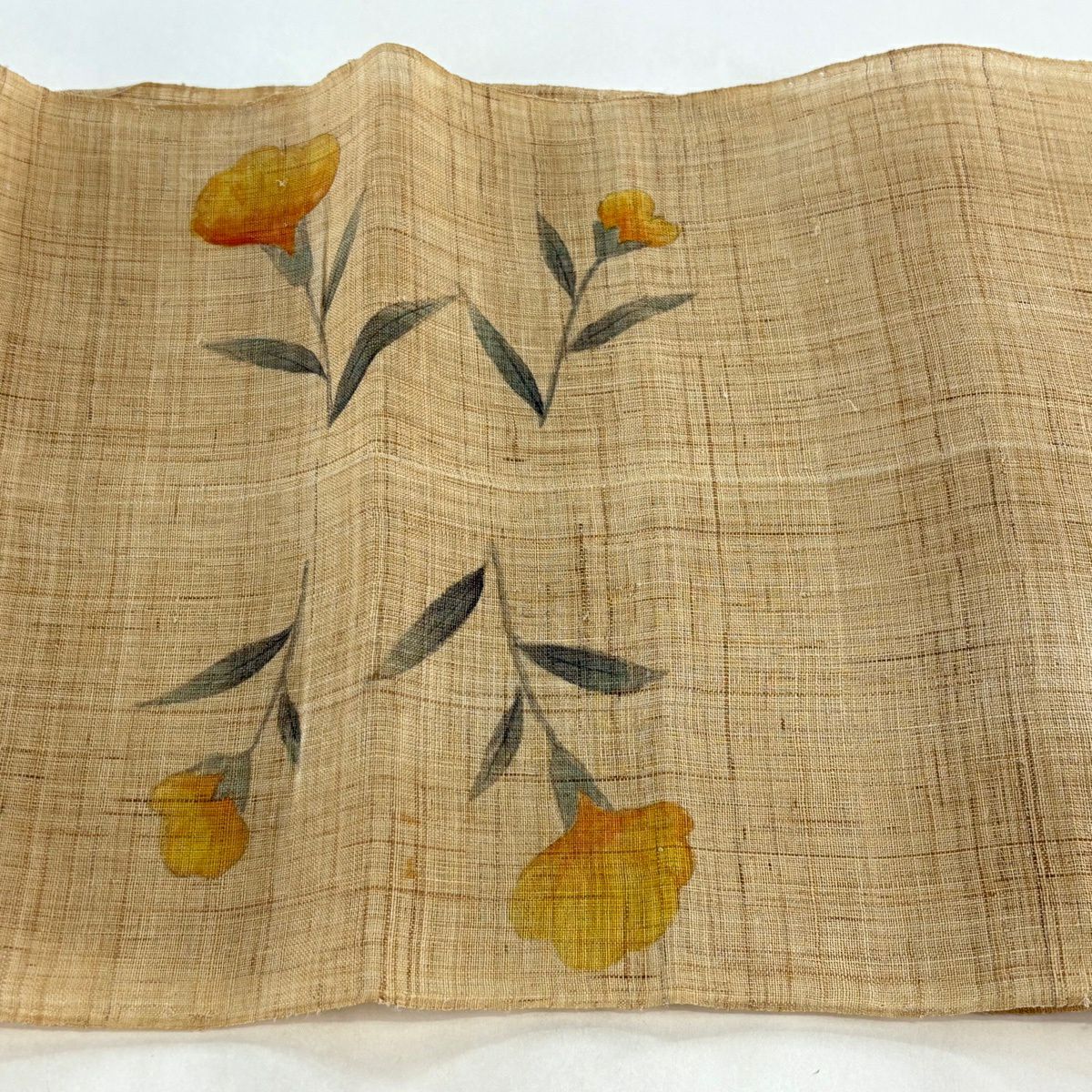 名古屋帯 秀品 夏帯 八寸名古屋帯 松葉仕立て トンネル仕立て 草花 薄茶色 麻