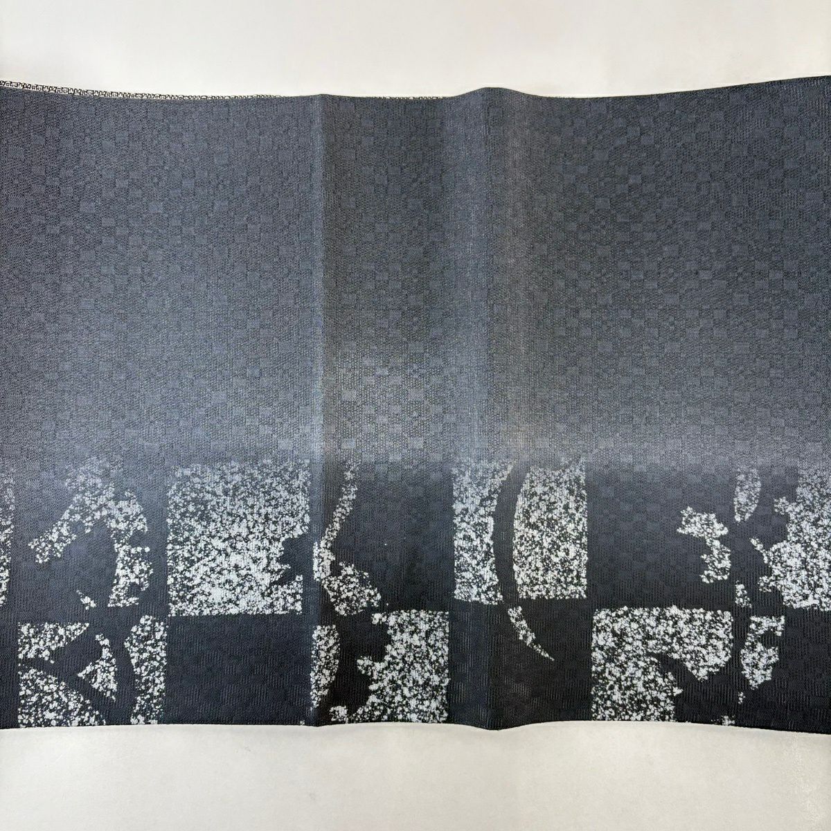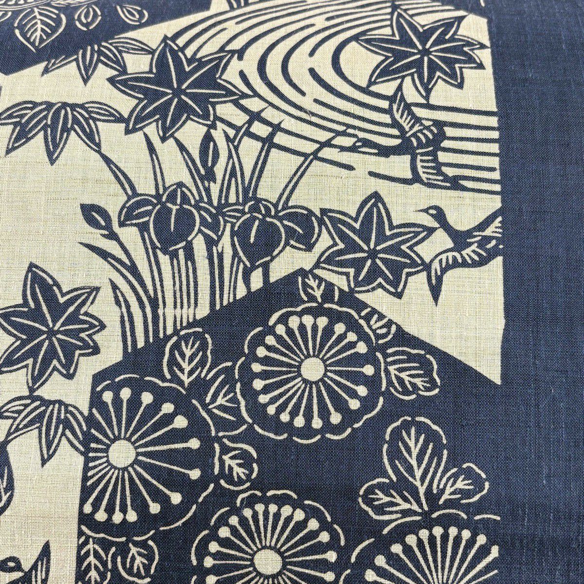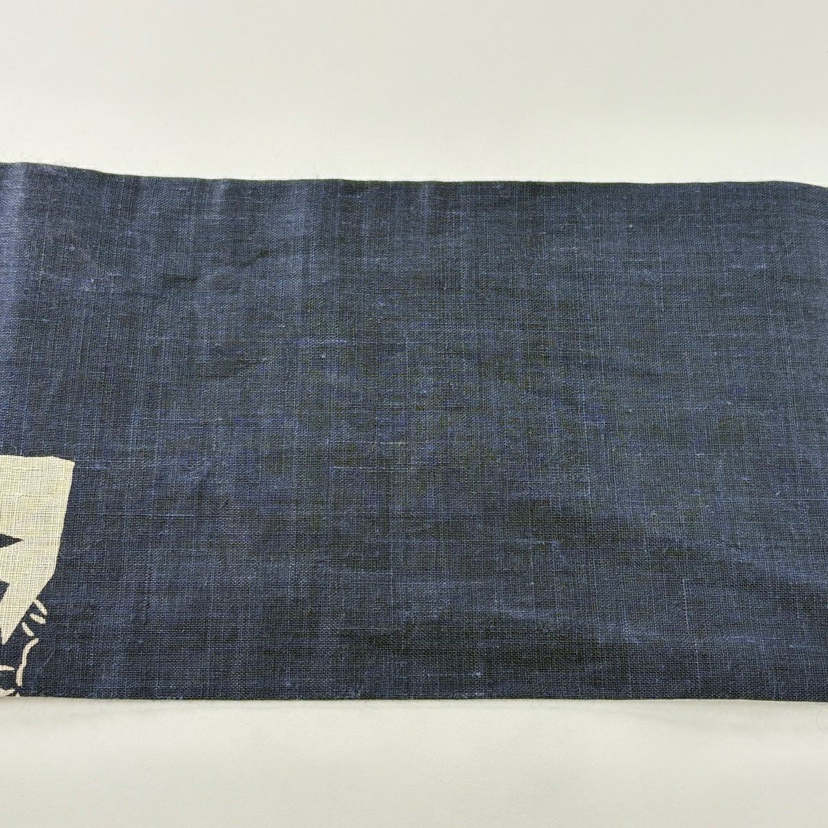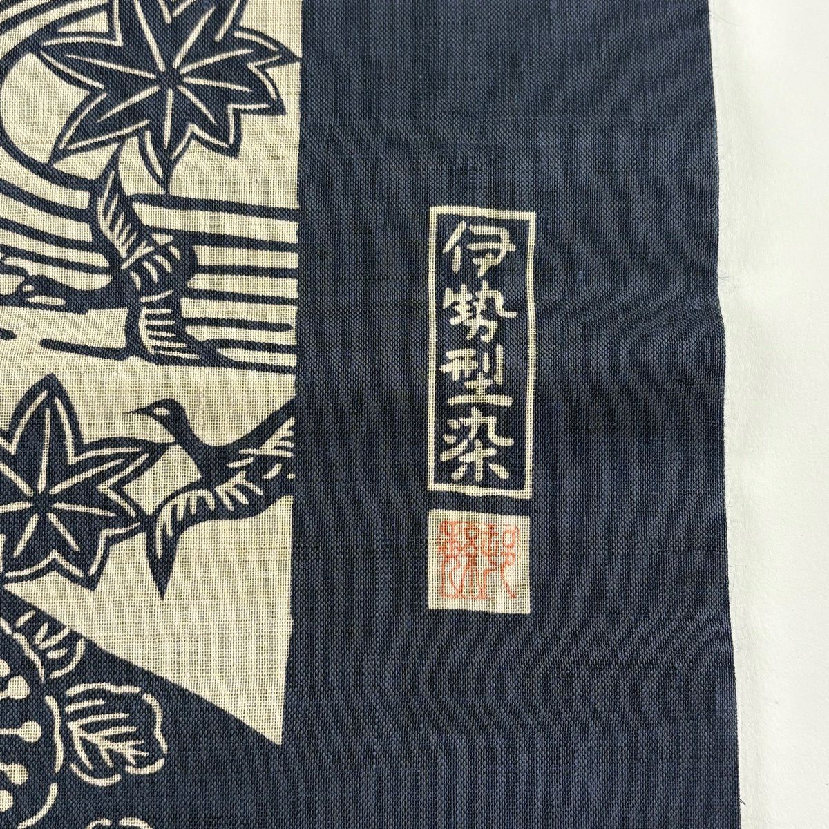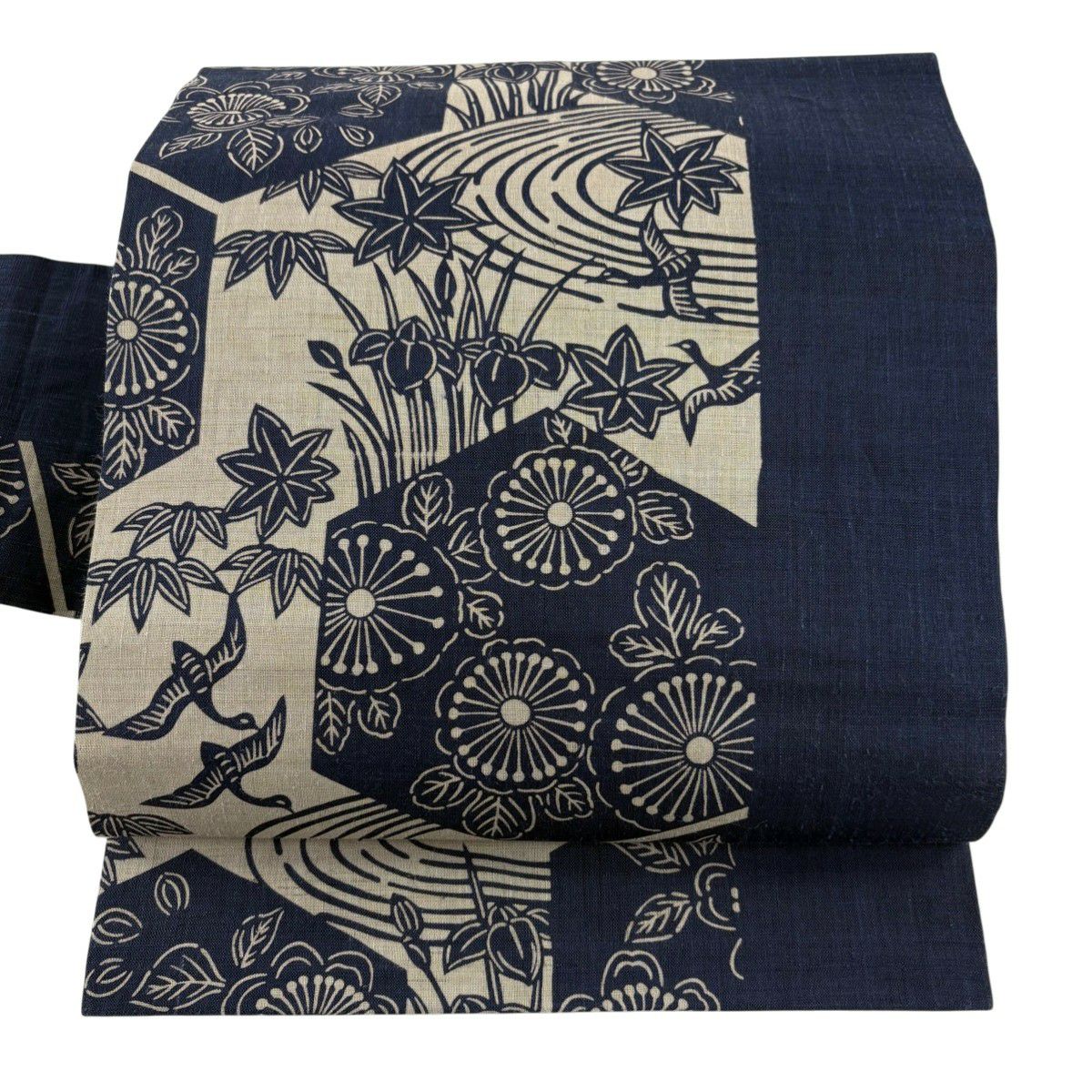 名古屋帯 秀品 落款あり 夏帯 夏紬地 伊勢型染 草花 流水 藍色 正絹