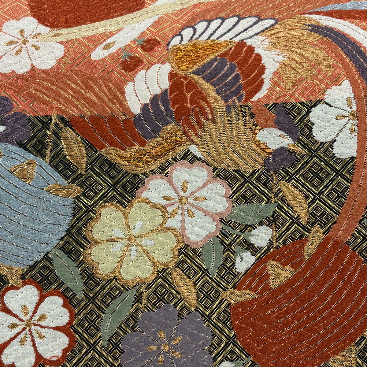 袋帯 秀品 振袖向き 鳳凰 糸巻き 金銀糸 箔 オレンジ 六通 正絹