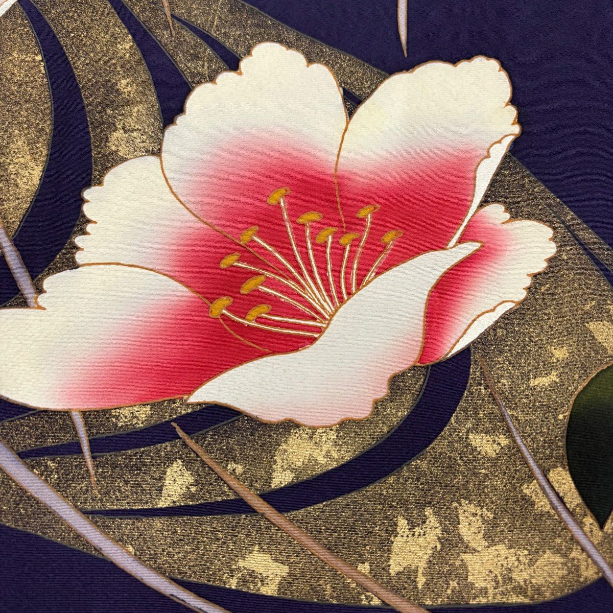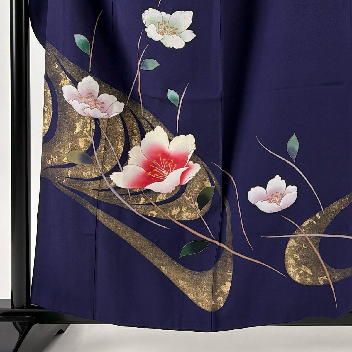 振袖 身丈157cm 裄丈66cm M 袷 枝花 金彩 濃紫 正絹 秀品