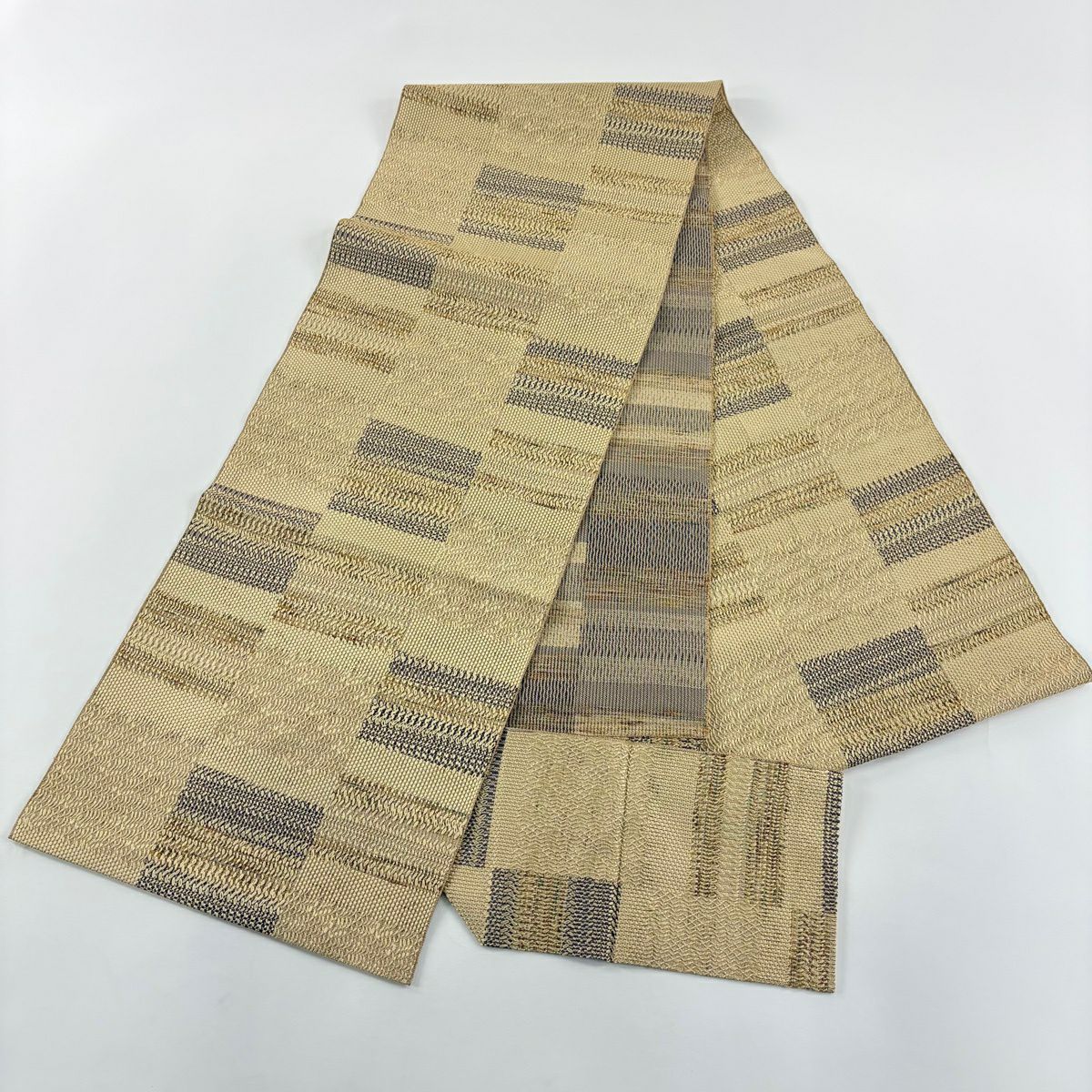 【美品】 名古屋帯 秀品 八寸名古屋帯 松葉仕立て 幾何学模様 薄茶色 正絹
