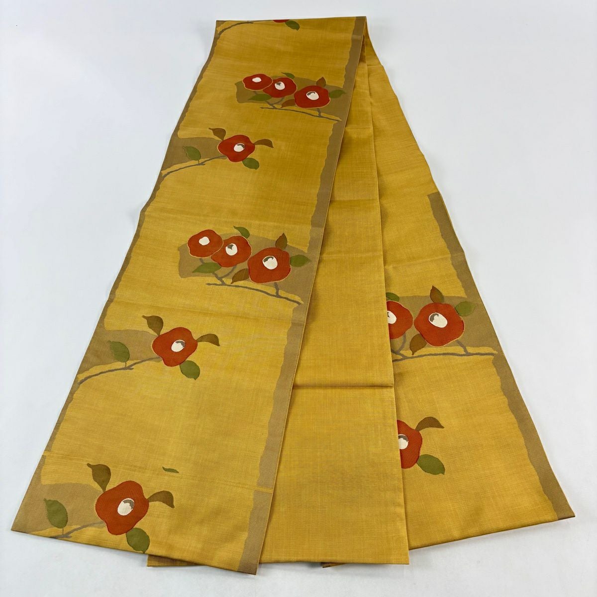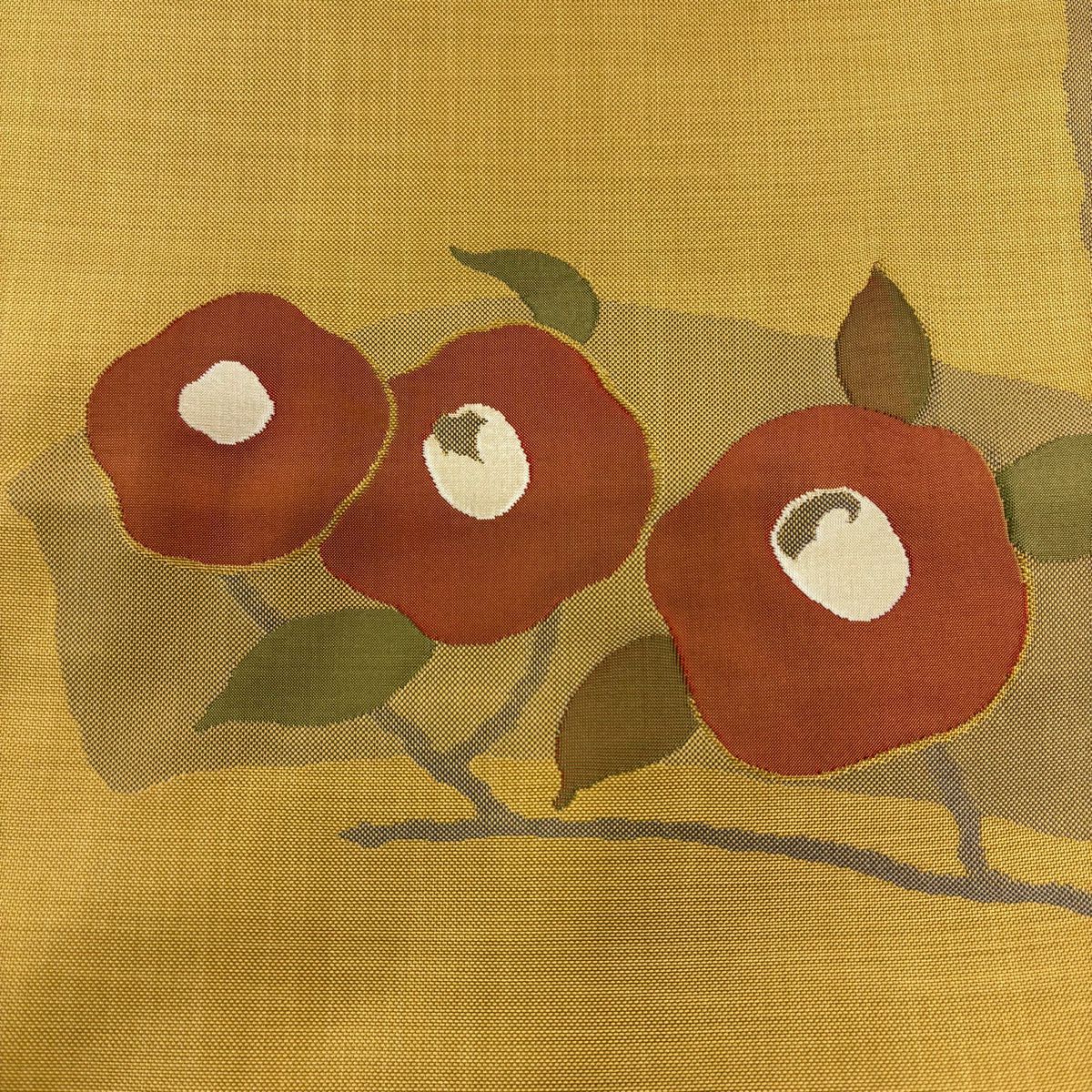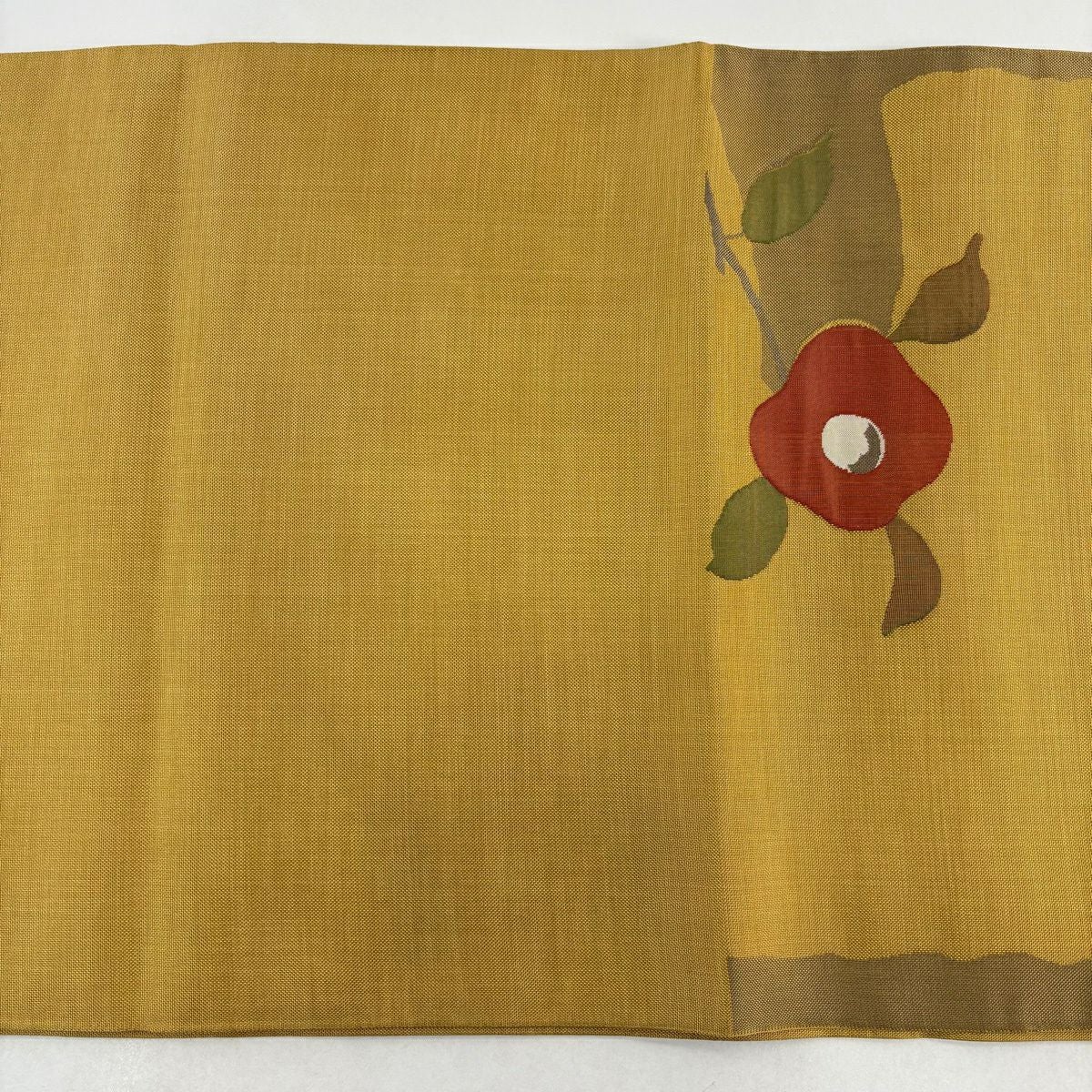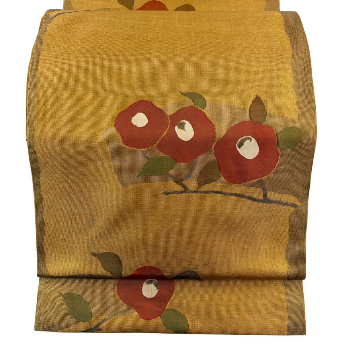 【美品】 袋帯 秀品 木屋太 落款あり 本袋 椿 山吹茶色 六通 正絹