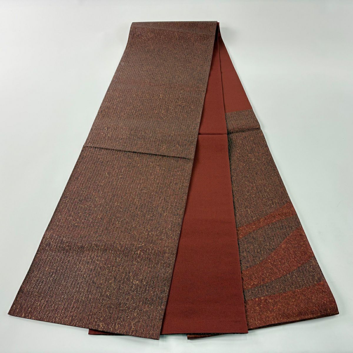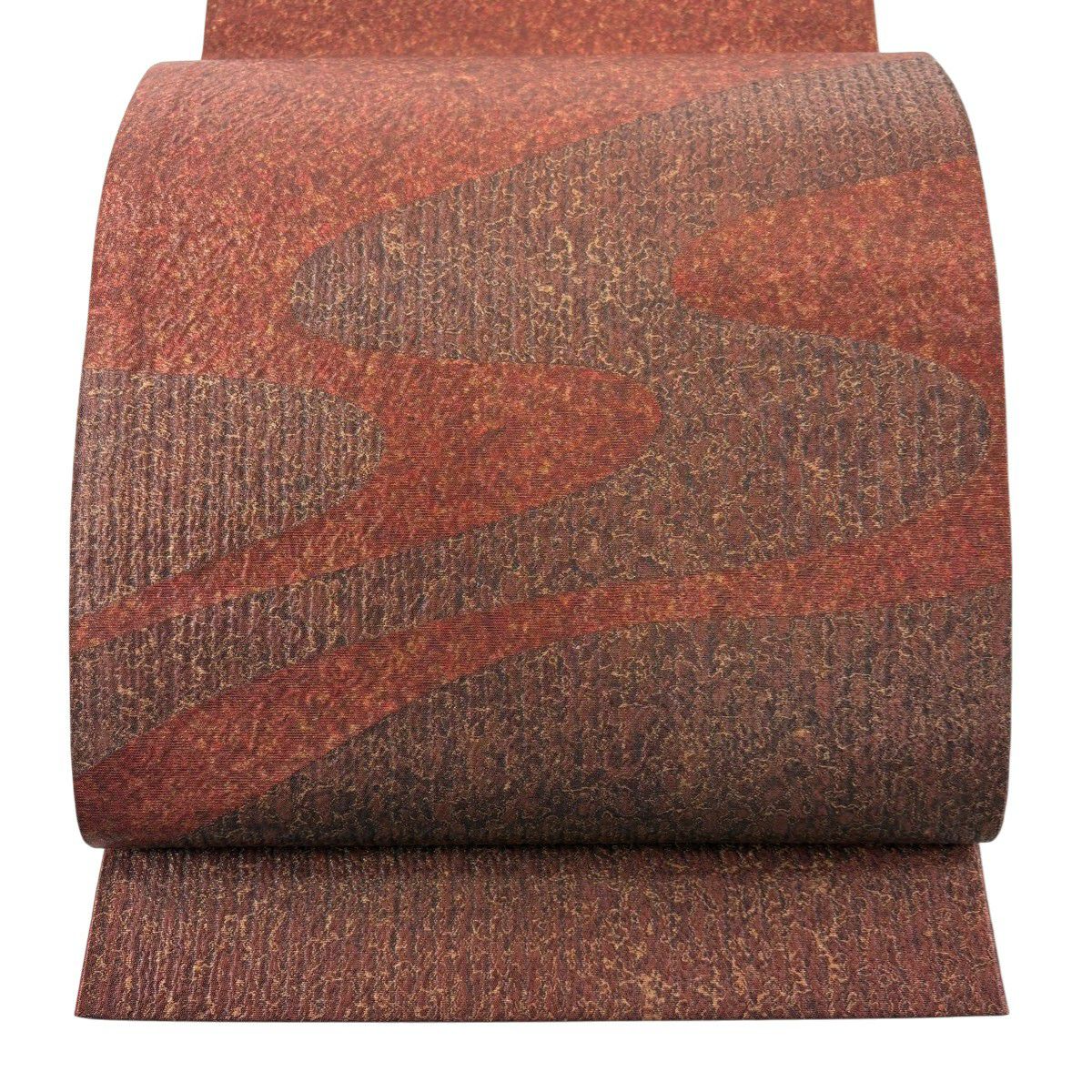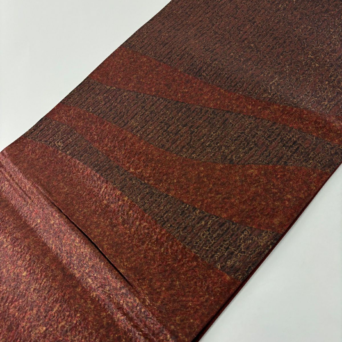 【美品】 名古屋帯 秀品 八寸名古屋帯 松葉仕立て 霞ぼかし えんじ色 正絹