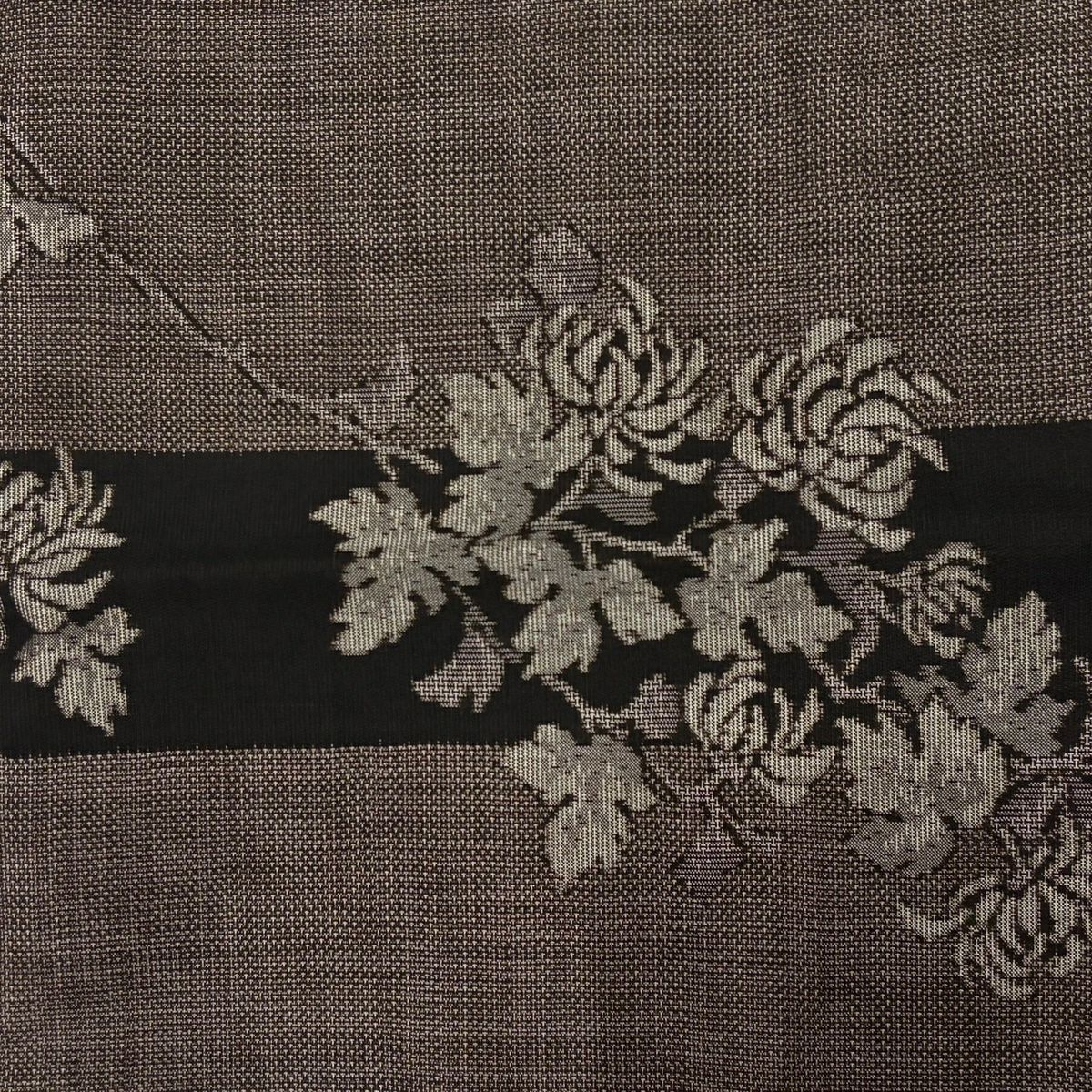 【美品】 袋帯 秀品 関西仕立て 草花 金彩 箔 茶色 お太鼓柄 正絹