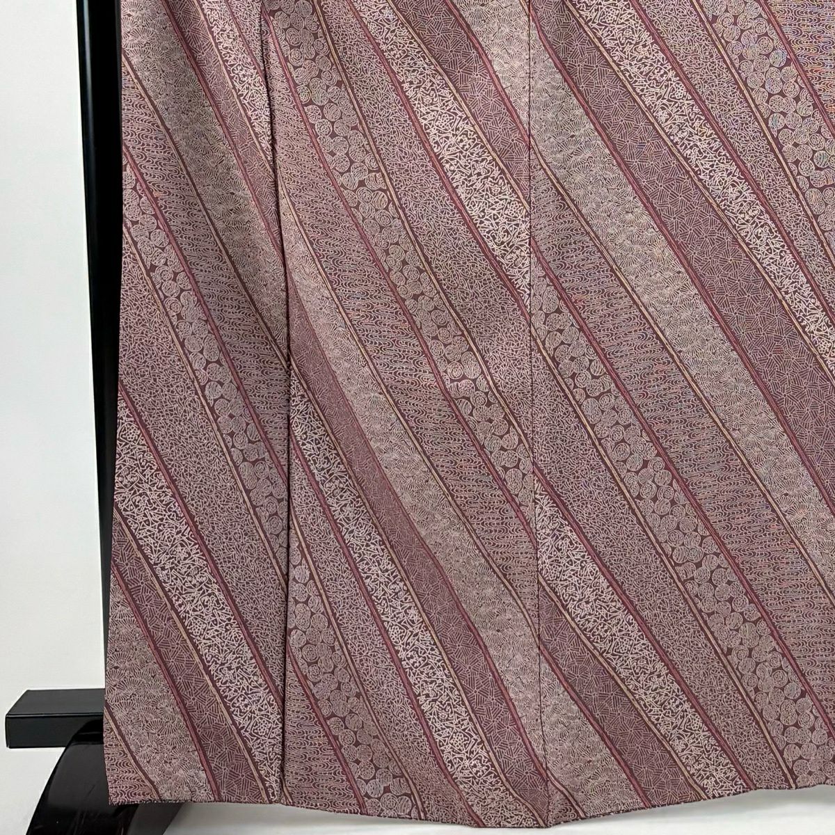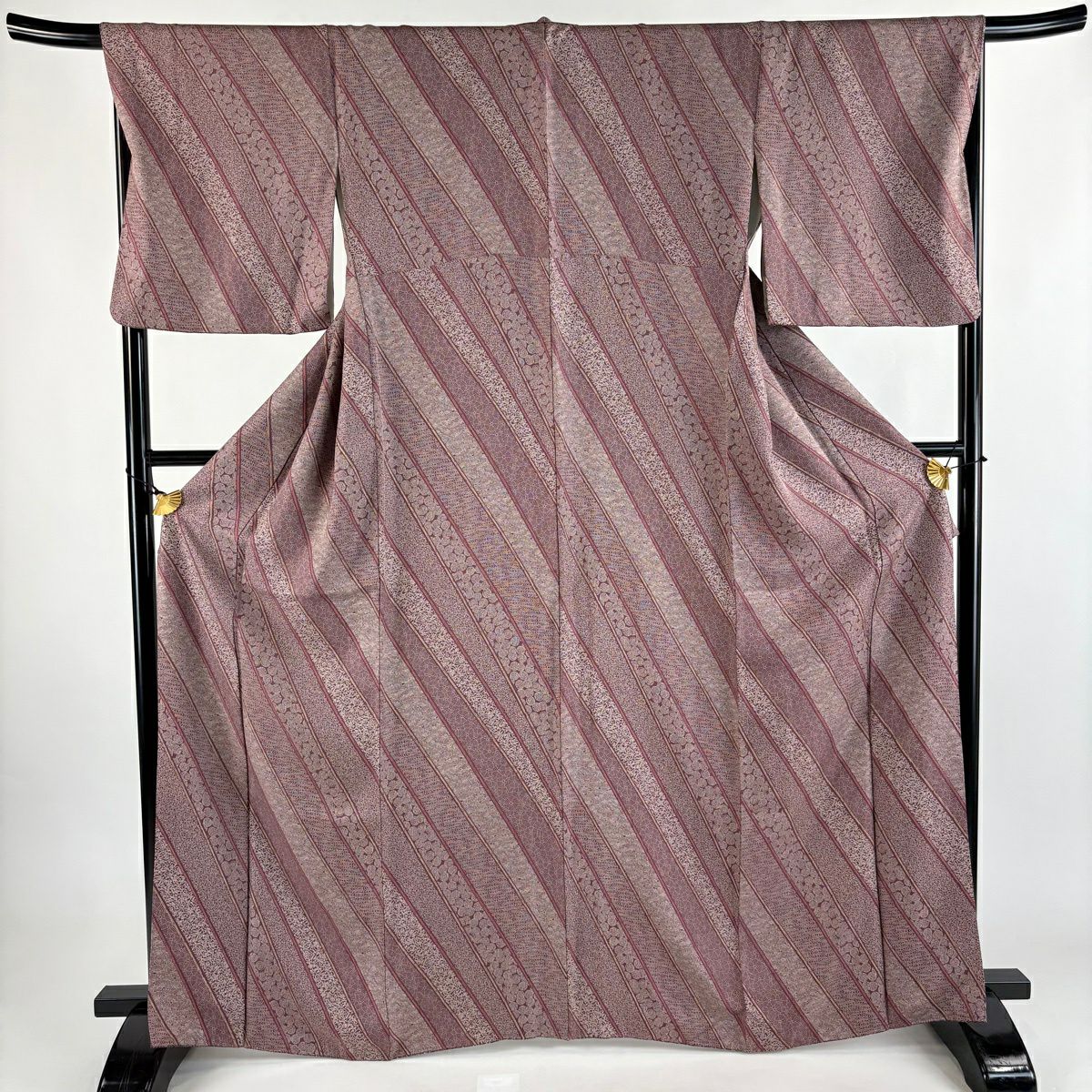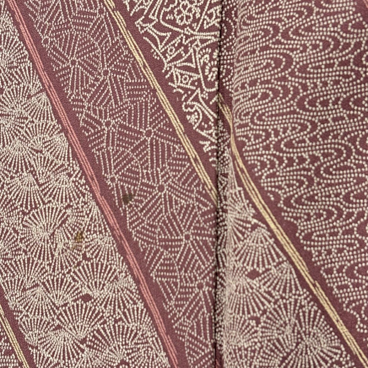 小紋 身丈165cm 裄丈68cm L 袷 斜縞 流水 赤紫 正絹 秀品