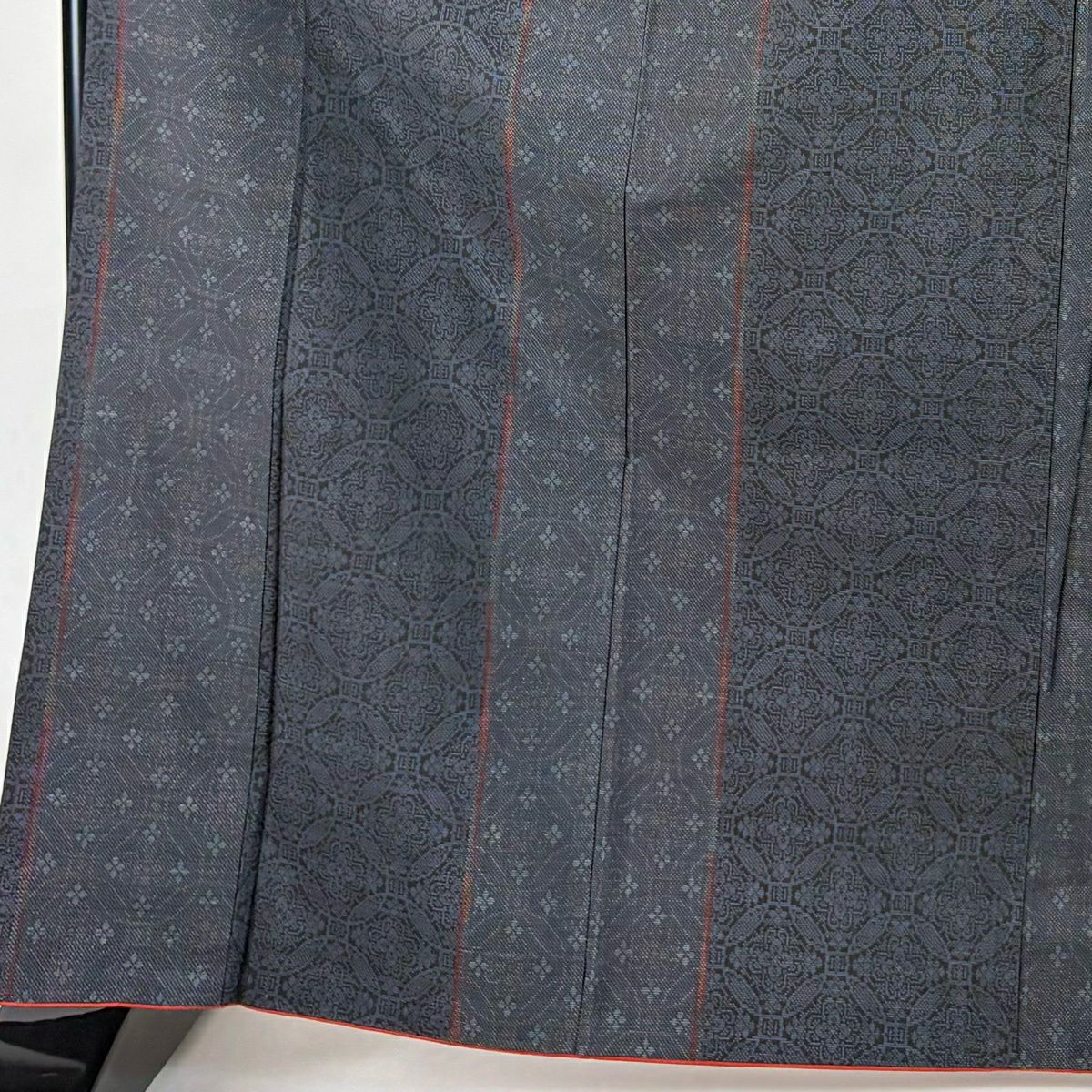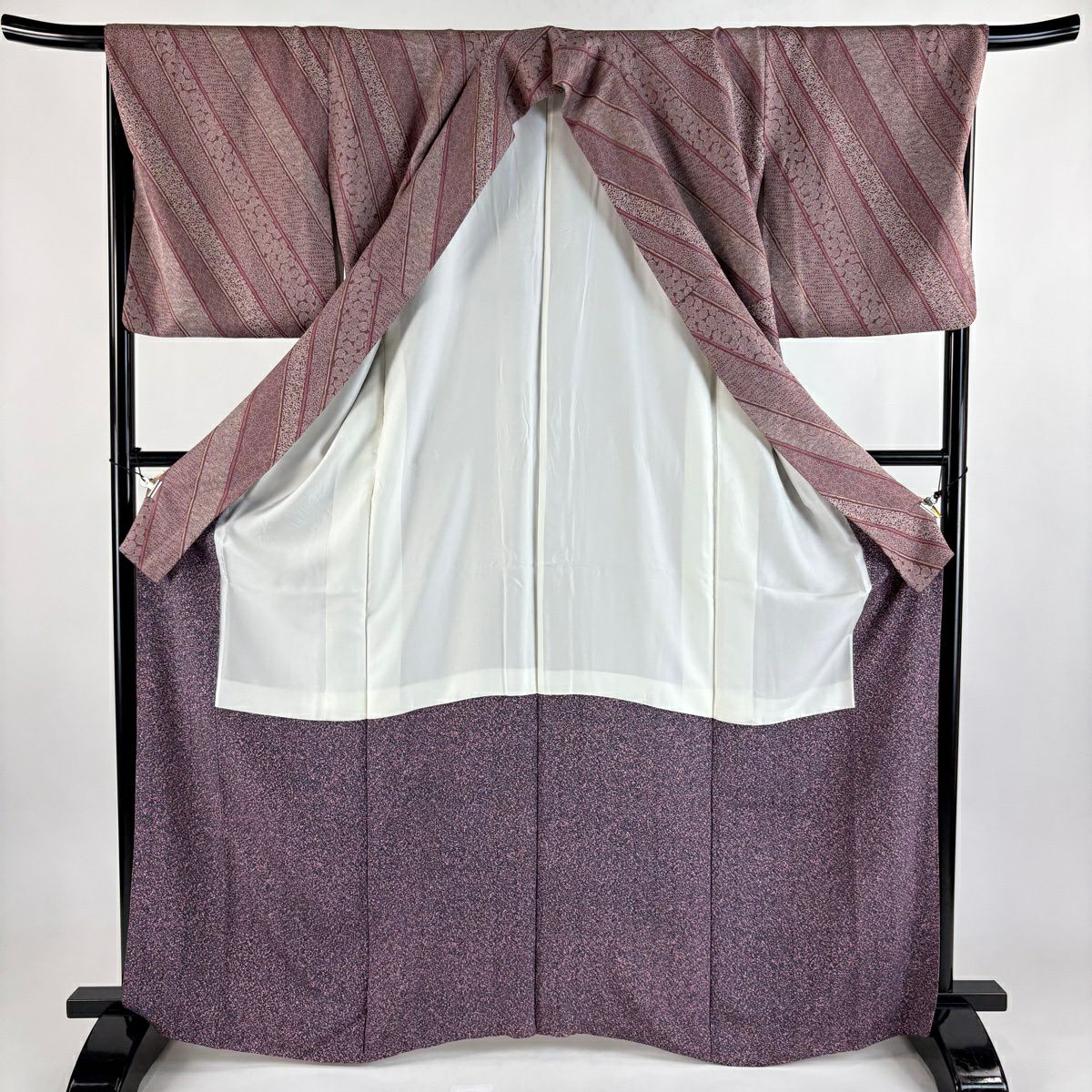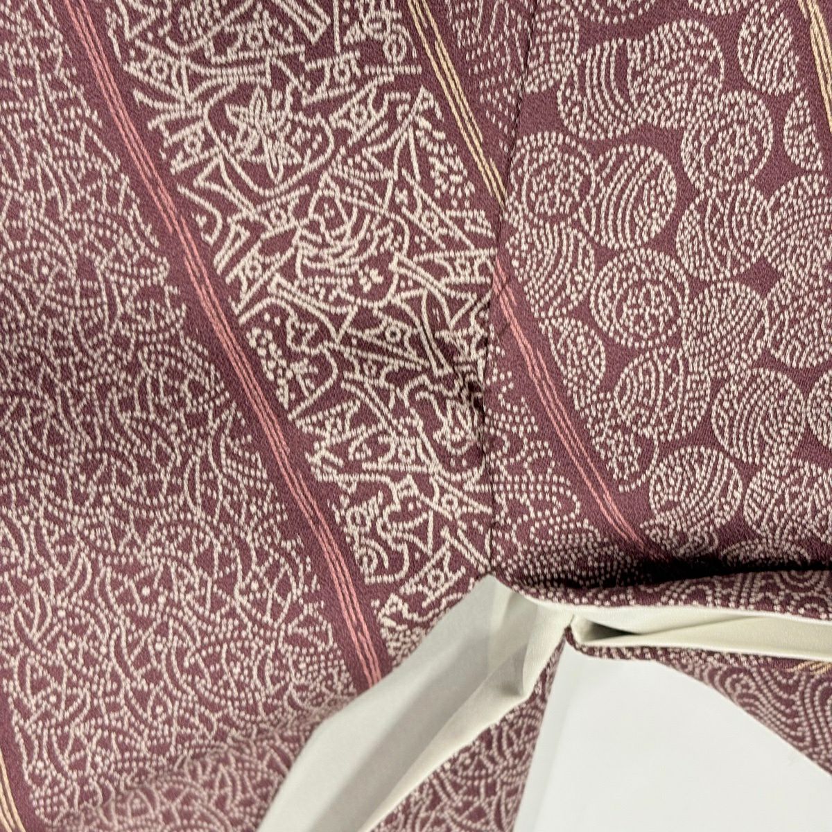 小紋 身丈165cm 裄丈68cm L 袷 斜縞 流水 赤紫 正絹 秀品