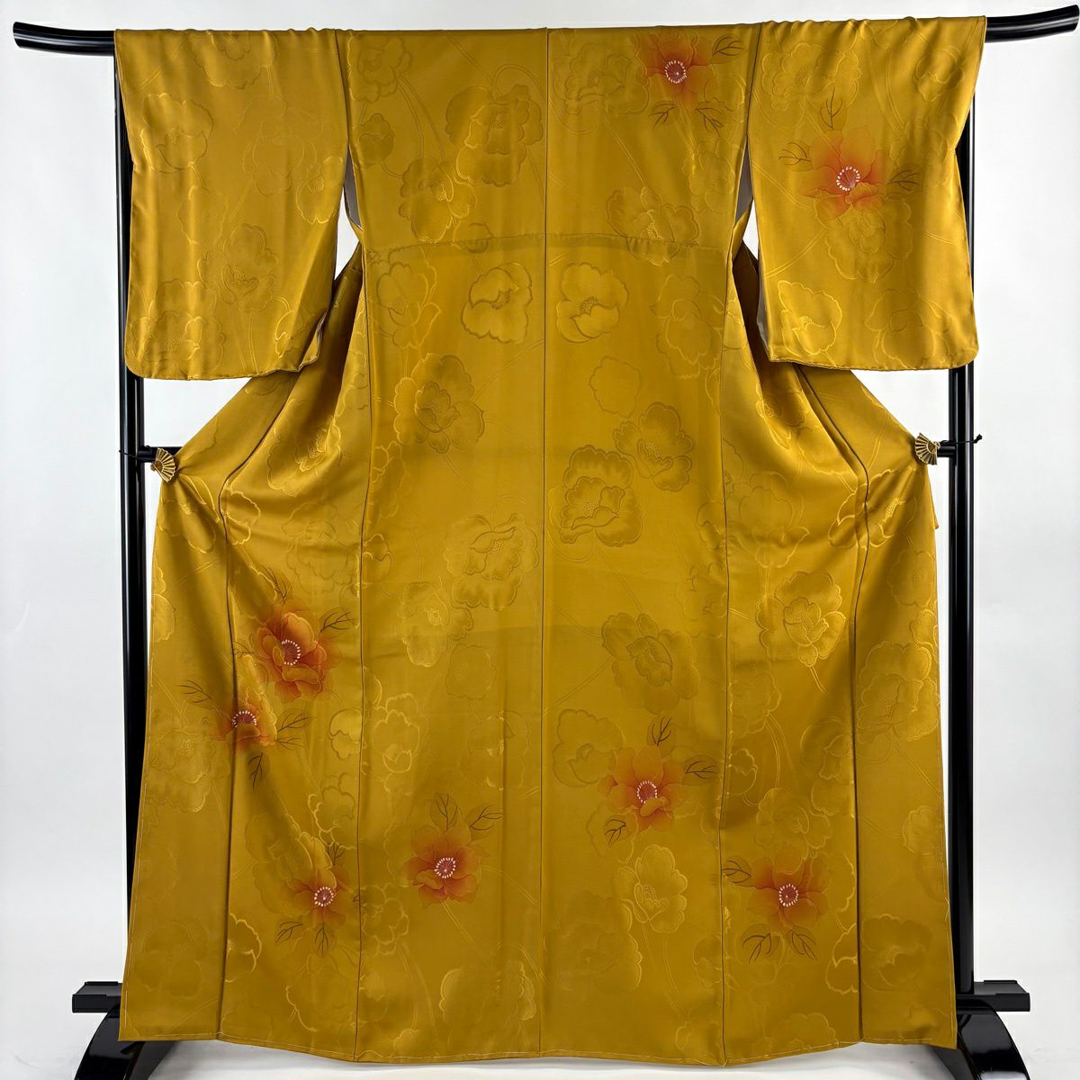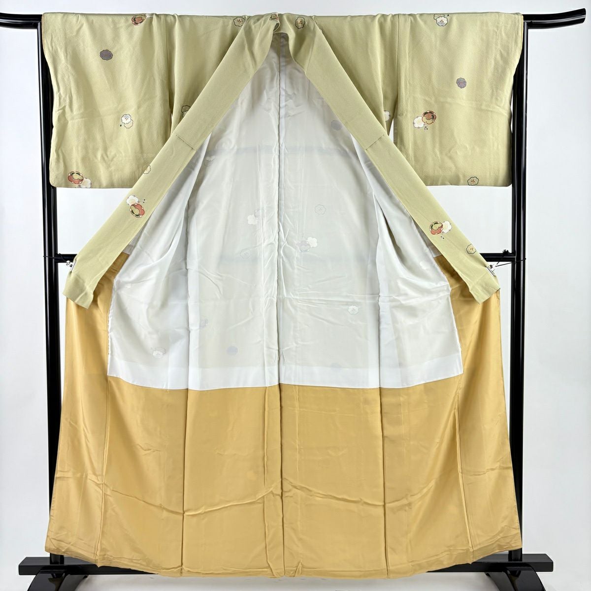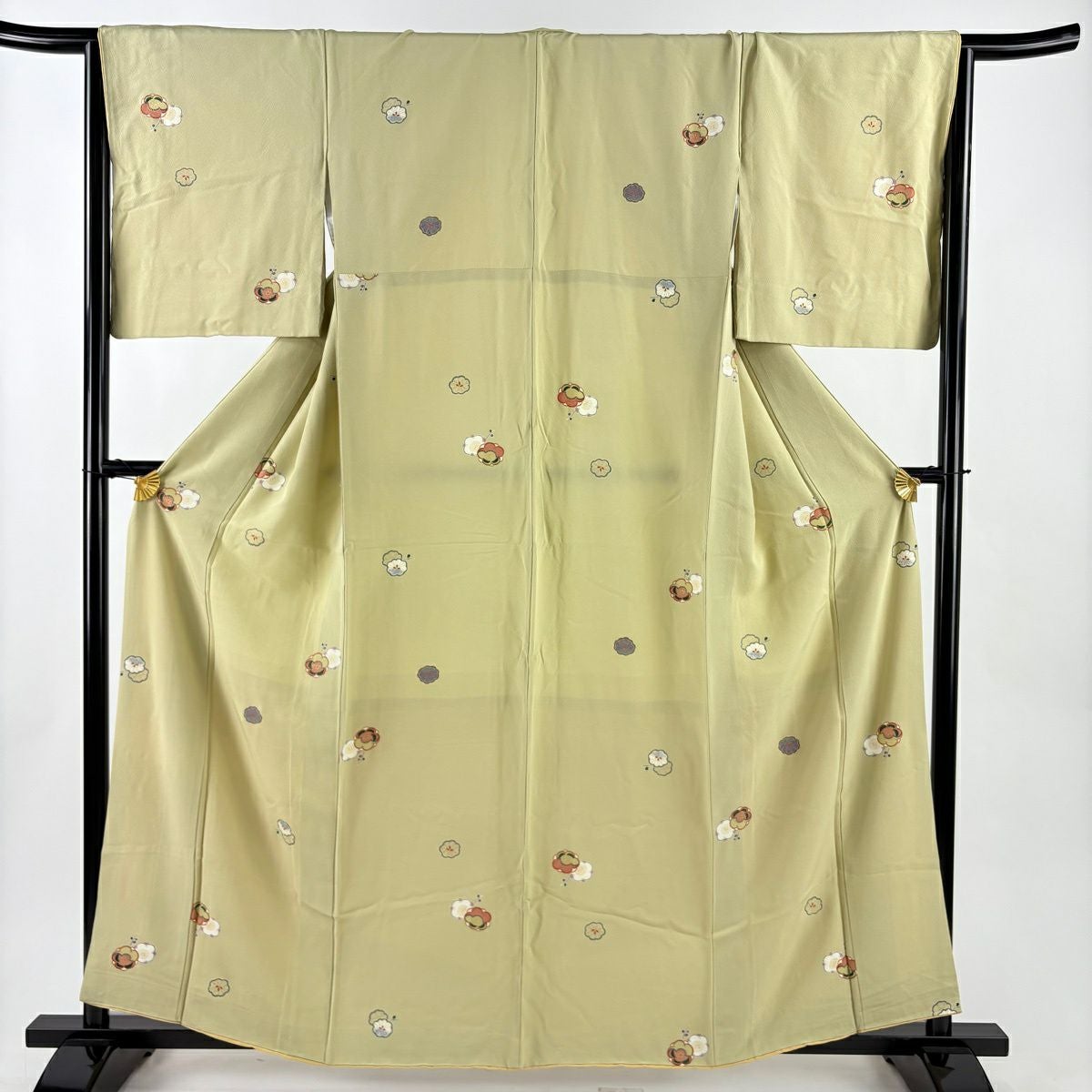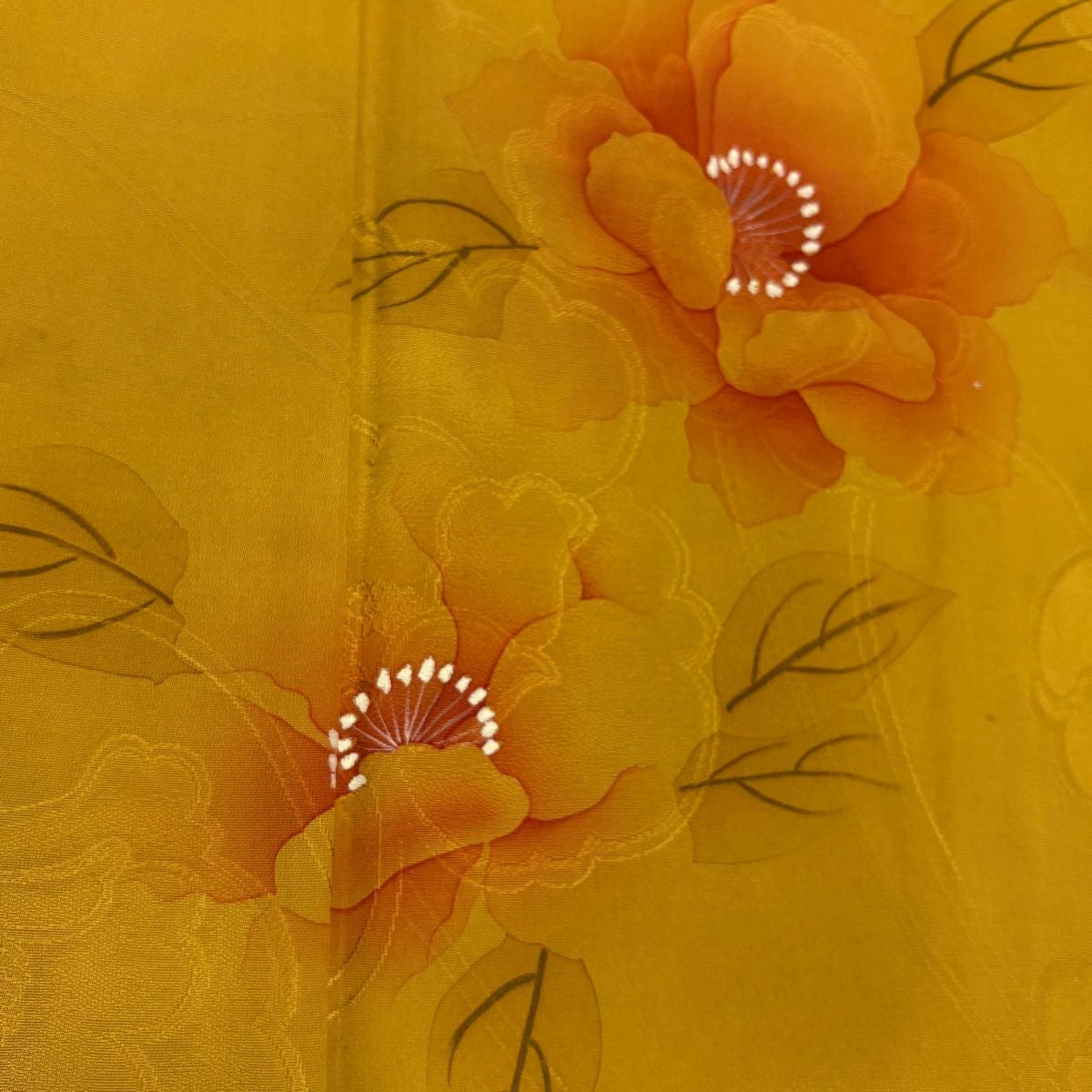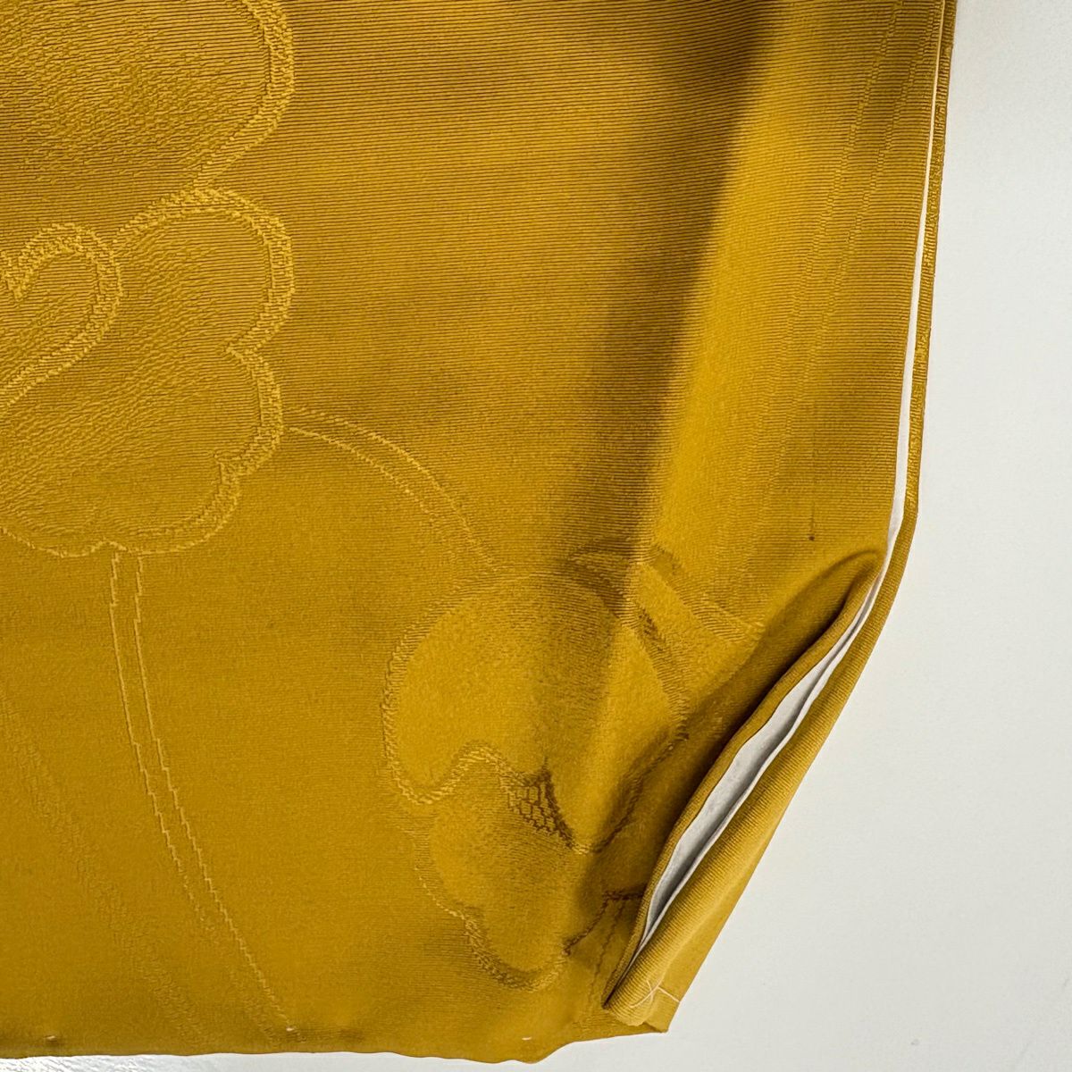 付下げ 身丈168cm 裄丈68cm L 袷 草花 地紋 山吹色 正絹 秀品