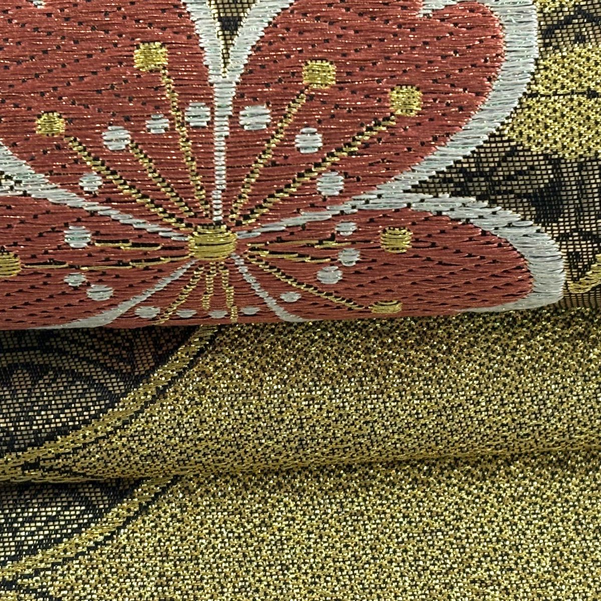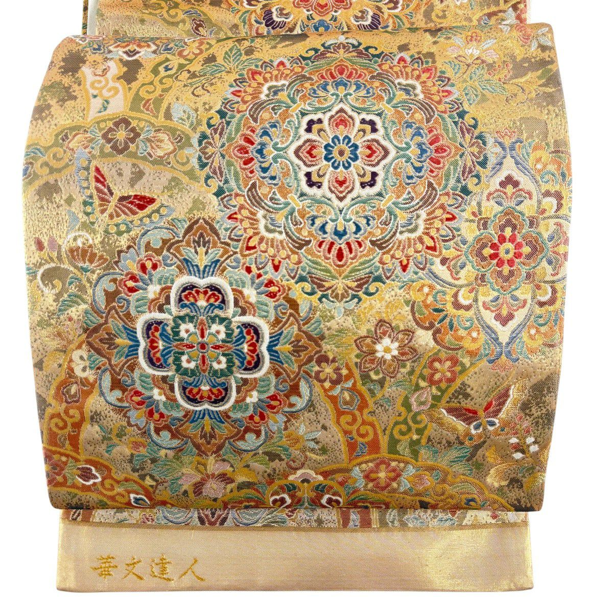 【美品】 袋帯 秀品 関西仕立て 華文達人 華文 蝶 箔 金色 六通 正絹