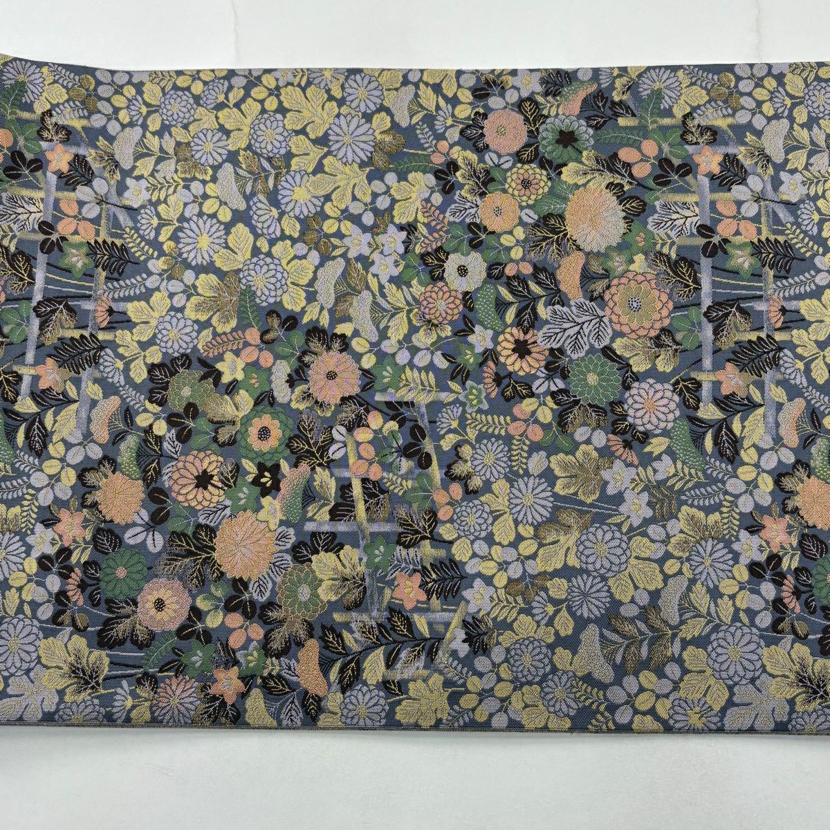 【美品】 袋帯 秀品 落款あり 紹巴萬葉 草花 秋草 灰紫 全通 正絹