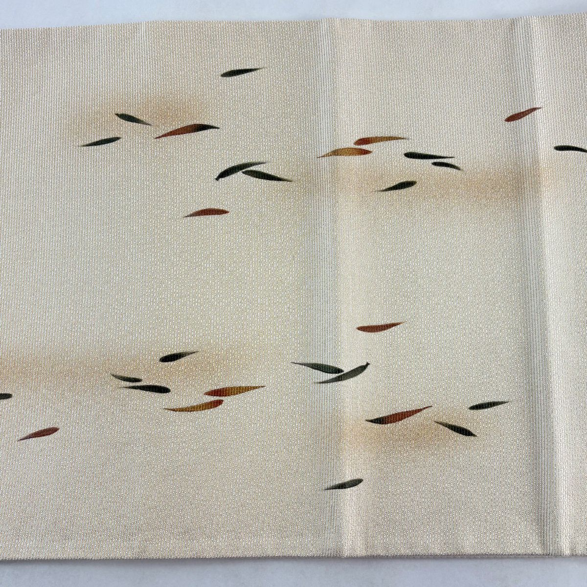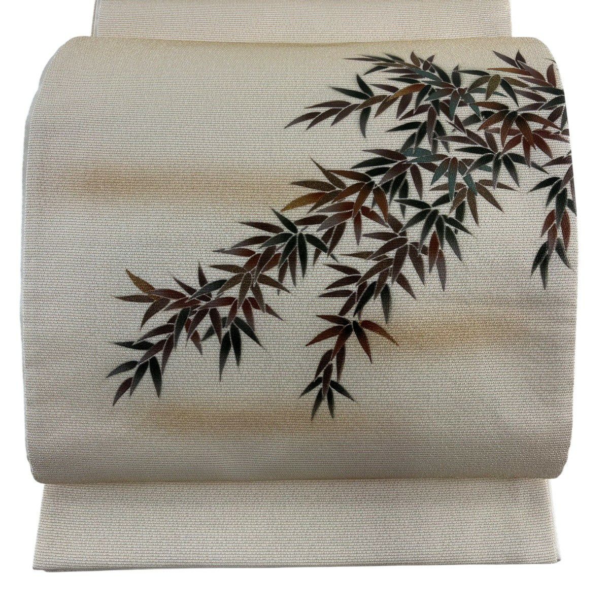 【美品】 袋帯 秀品 紹? 関西仕立て 葉柄 ベージュ 全通 正絹