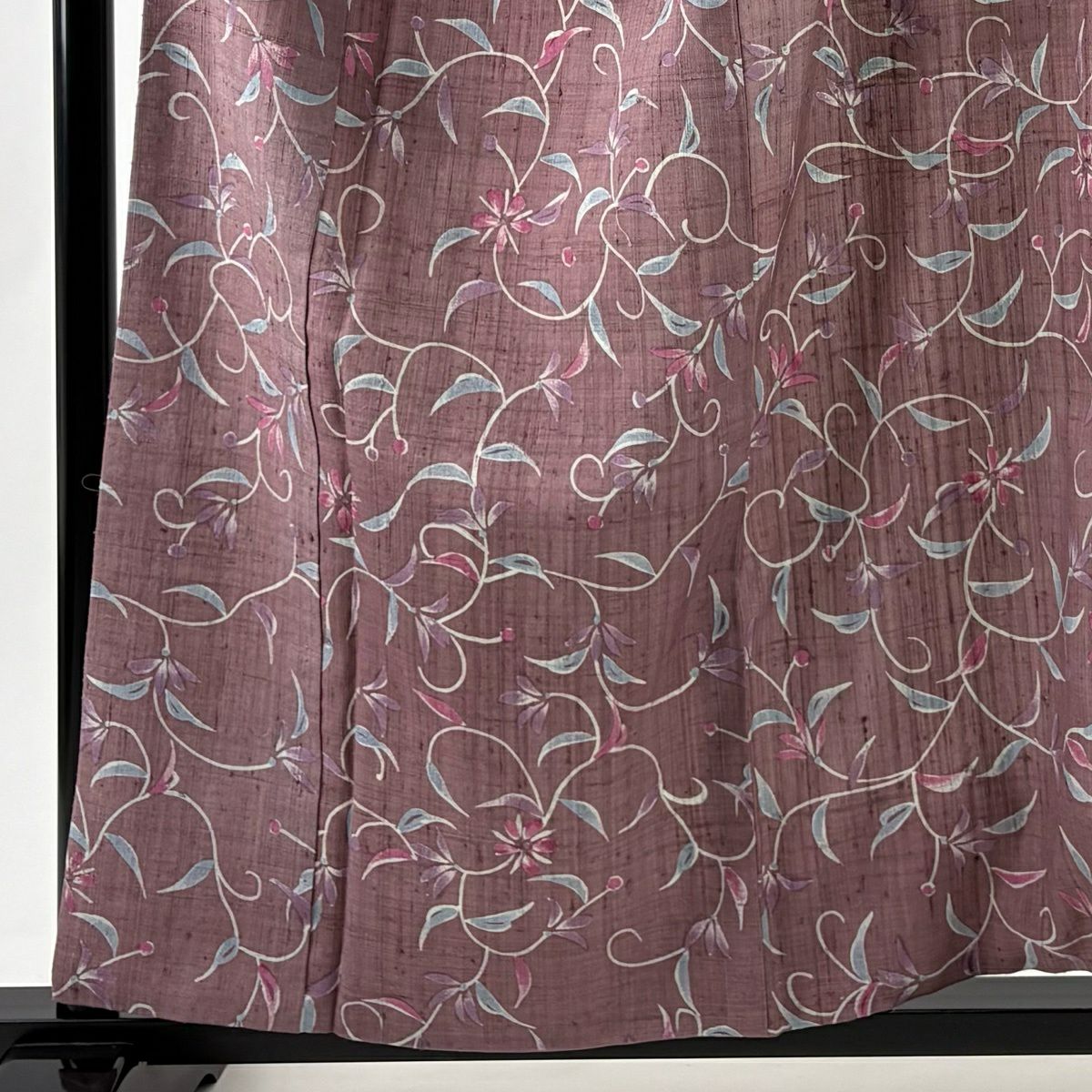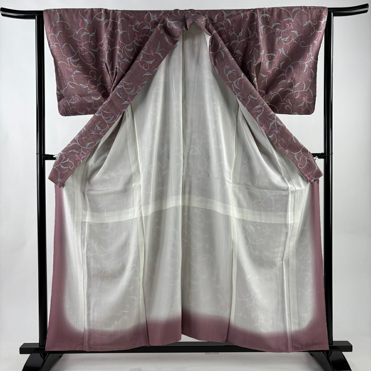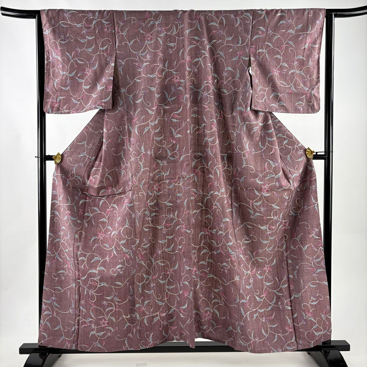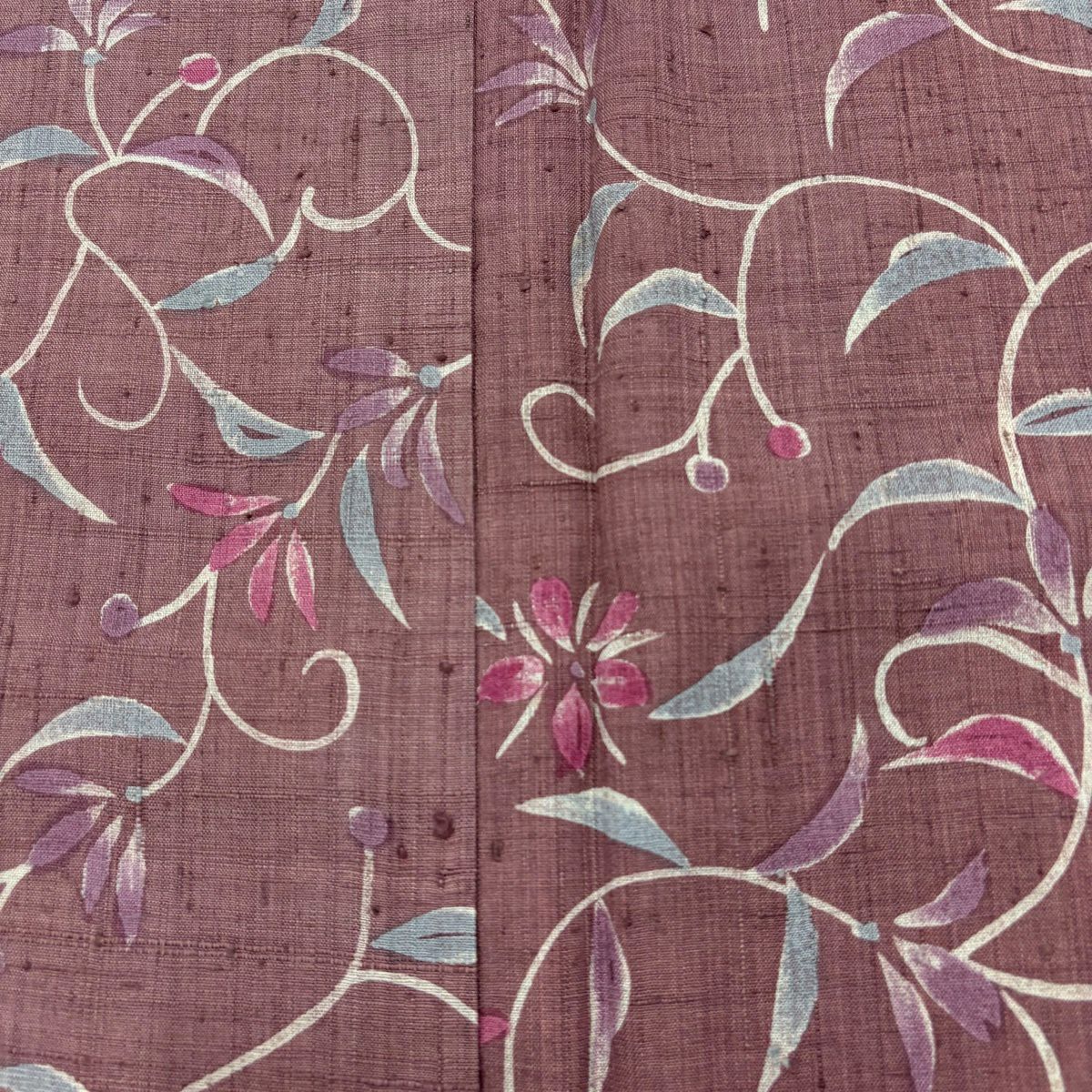 小紋 身丈158cm 裄丈64cm M 袷 紬地 花唐草 紫 正絹 秀品