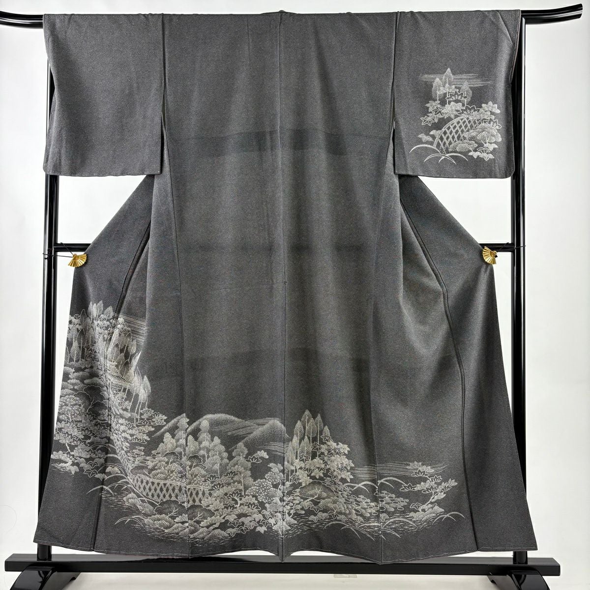 【美品】 紬 身丈156cm 裄丈62.5cm S 袷 黒灰 正絹 秀品