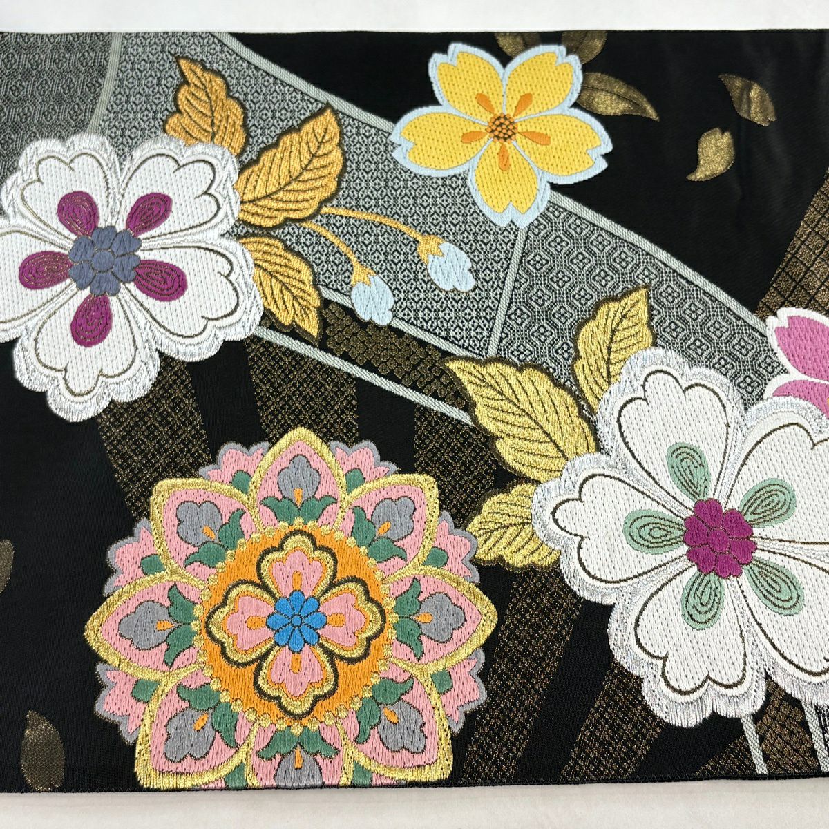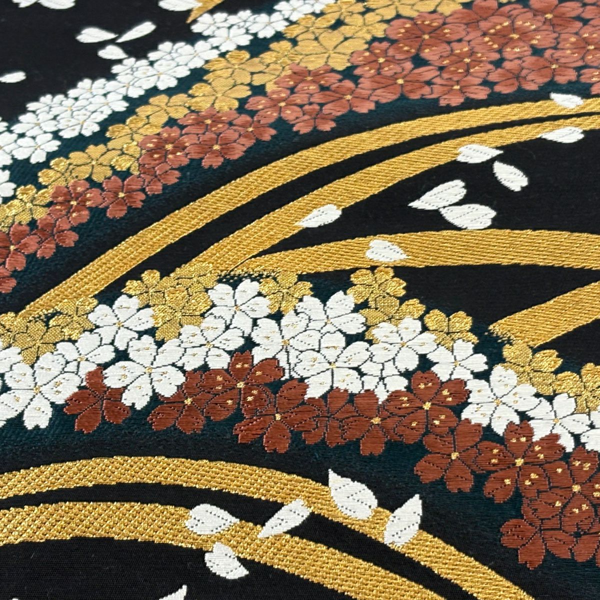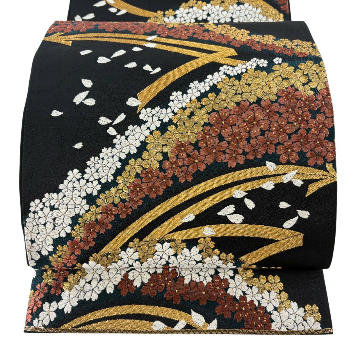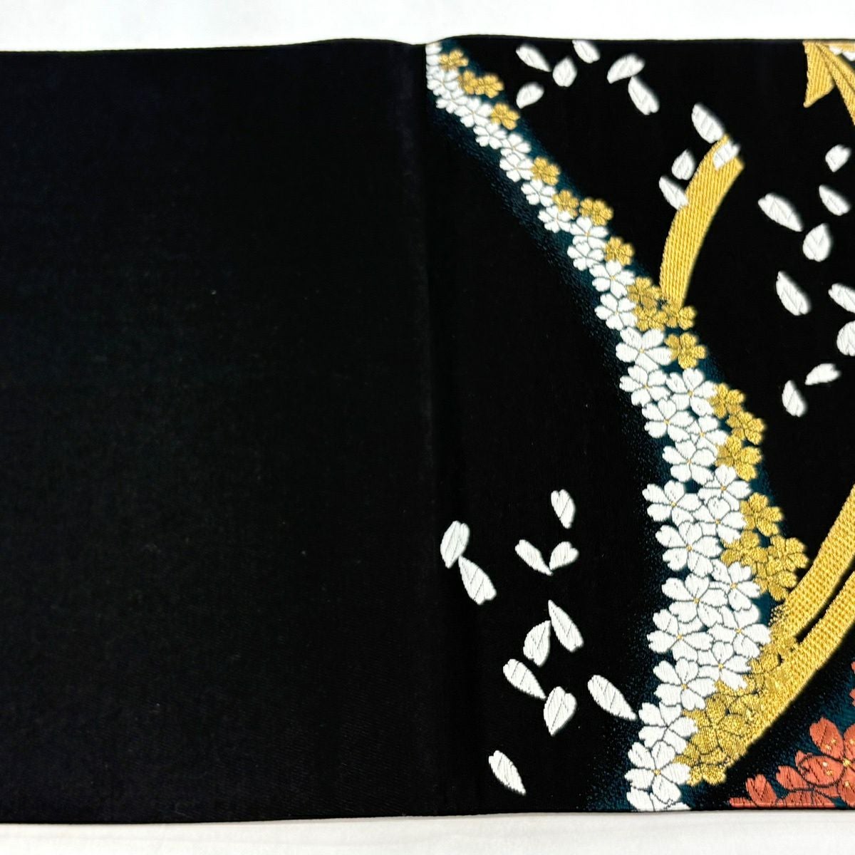 【美品】 袋帯 秀品 振袖向き 桜 桜の花びら 金糸 箔 金色 六通 正絹