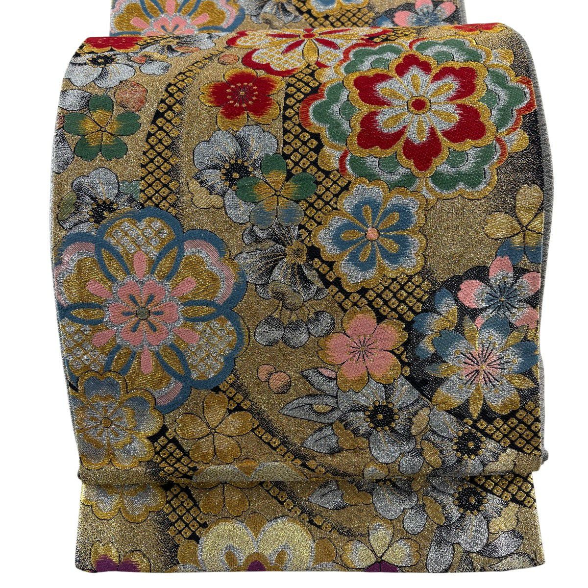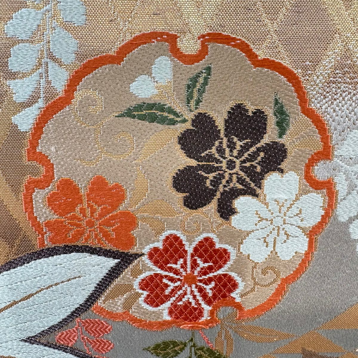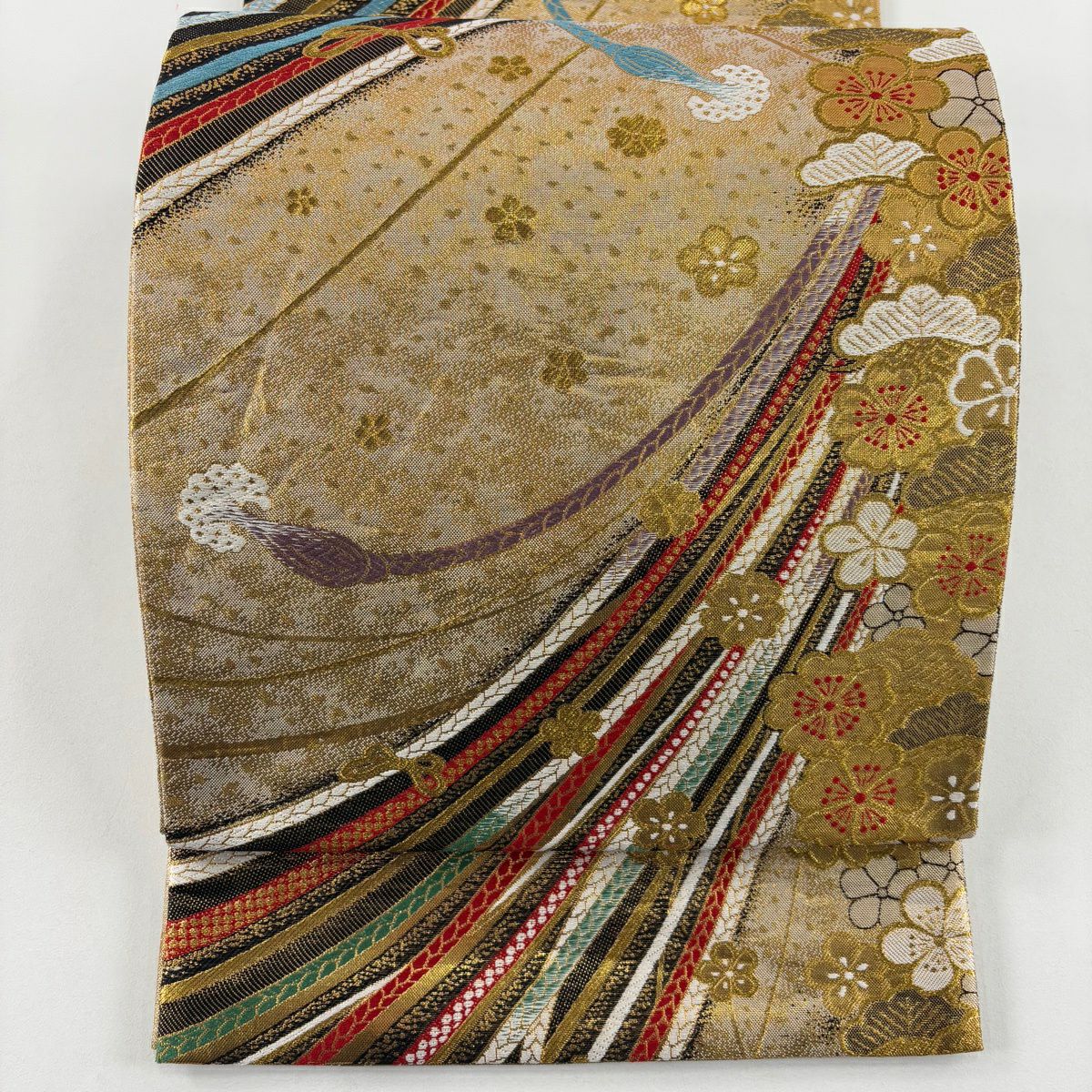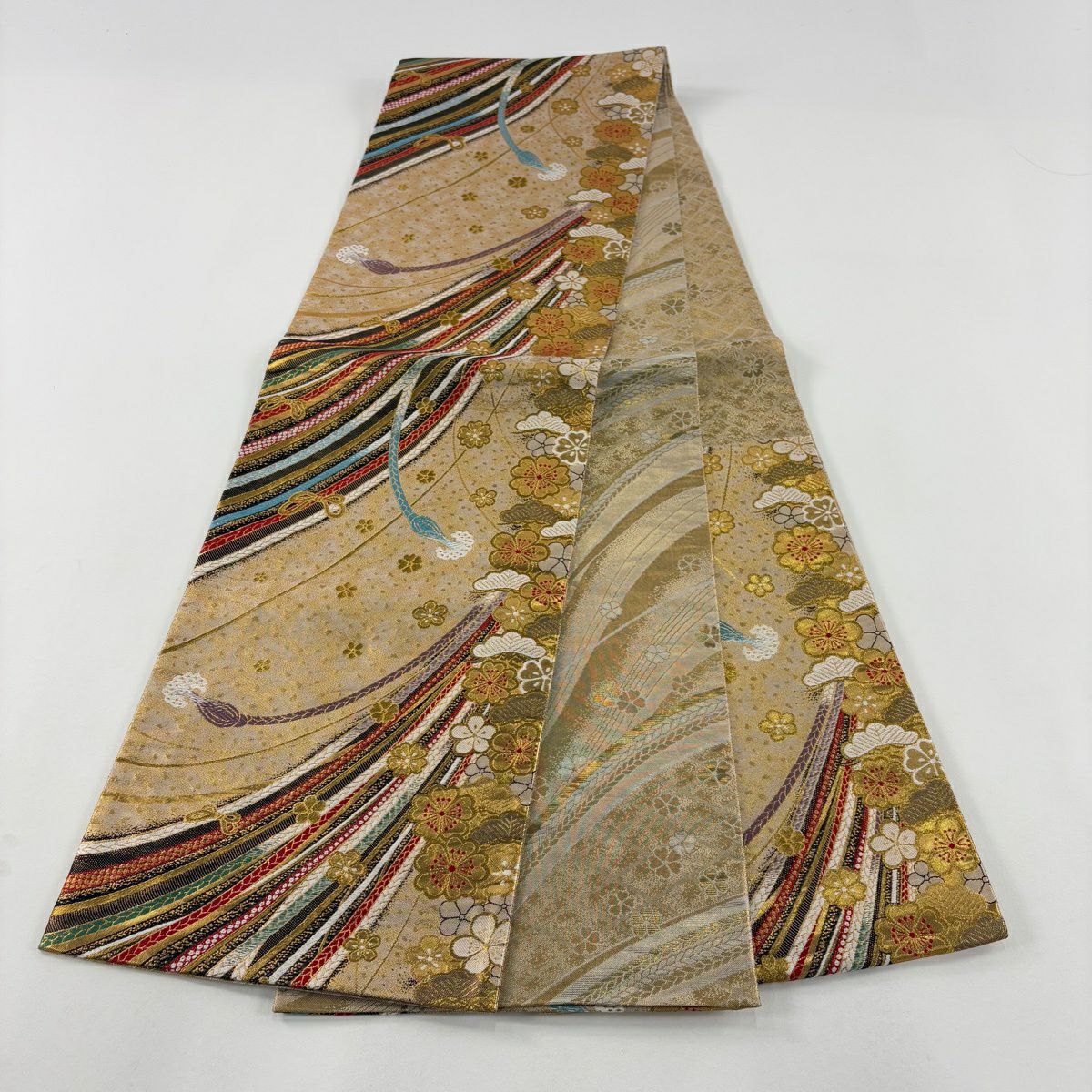 50%OFF 【美品】 袋帯 秀品 組紐 花 金色 六通 正絹 K50