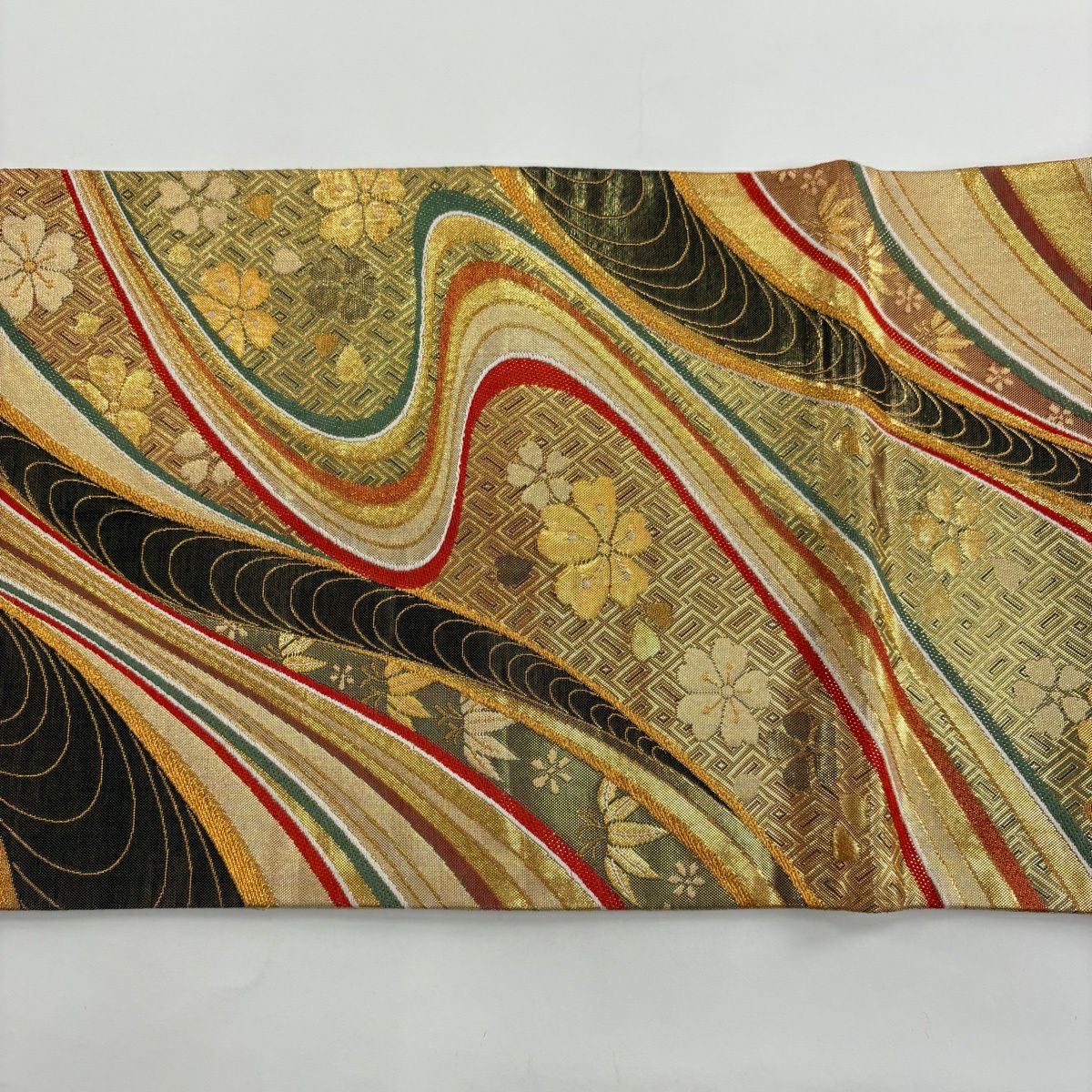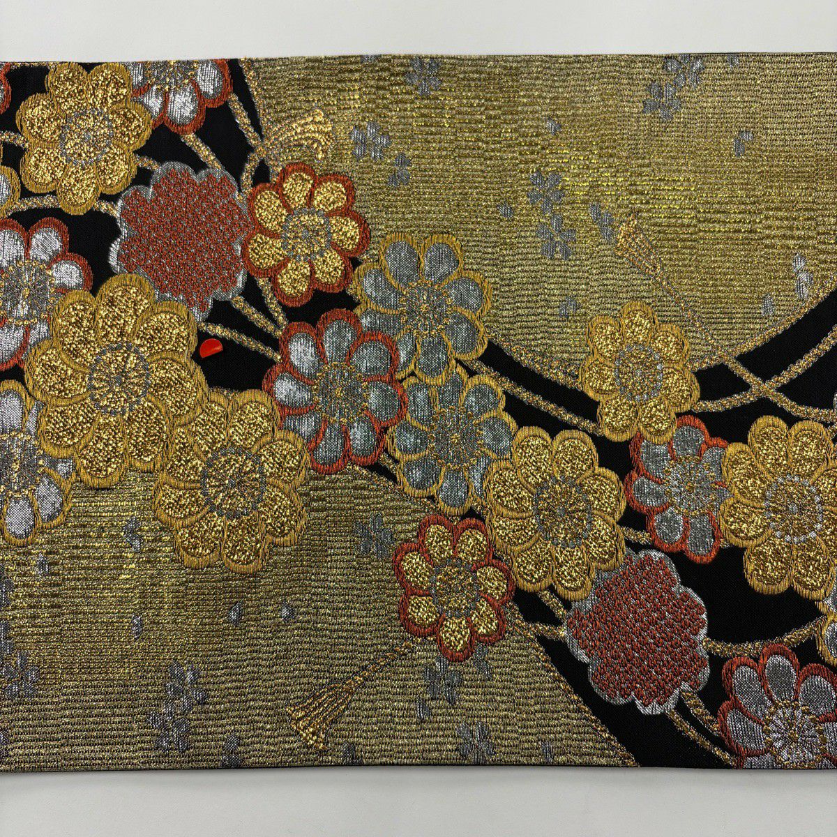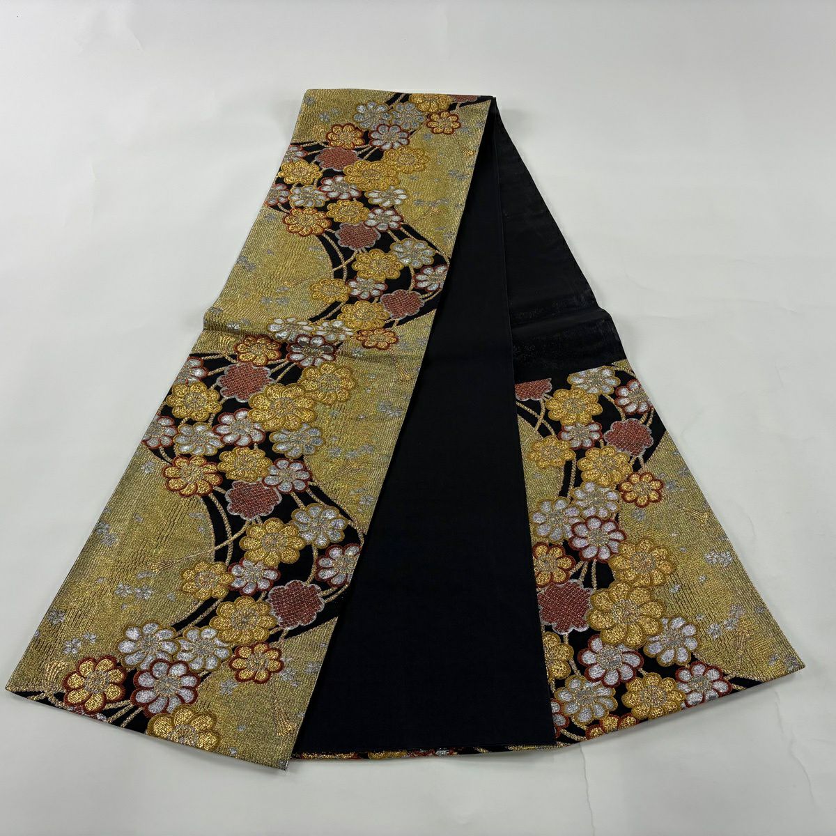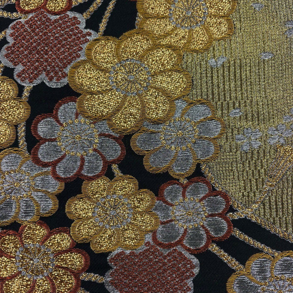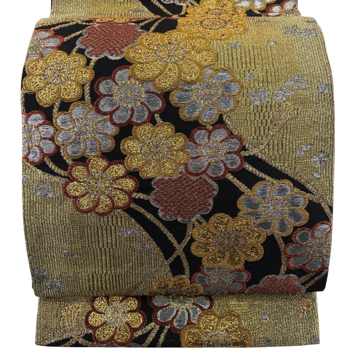 50%OFF 【美品】 袋帯 秀品 組紐 花 金色 六通 正絹 K50