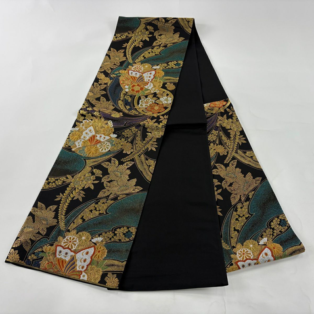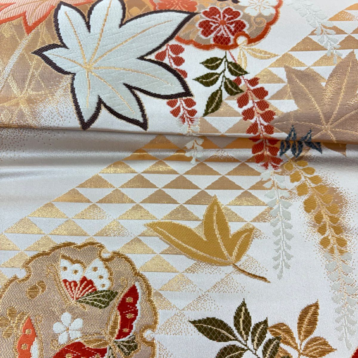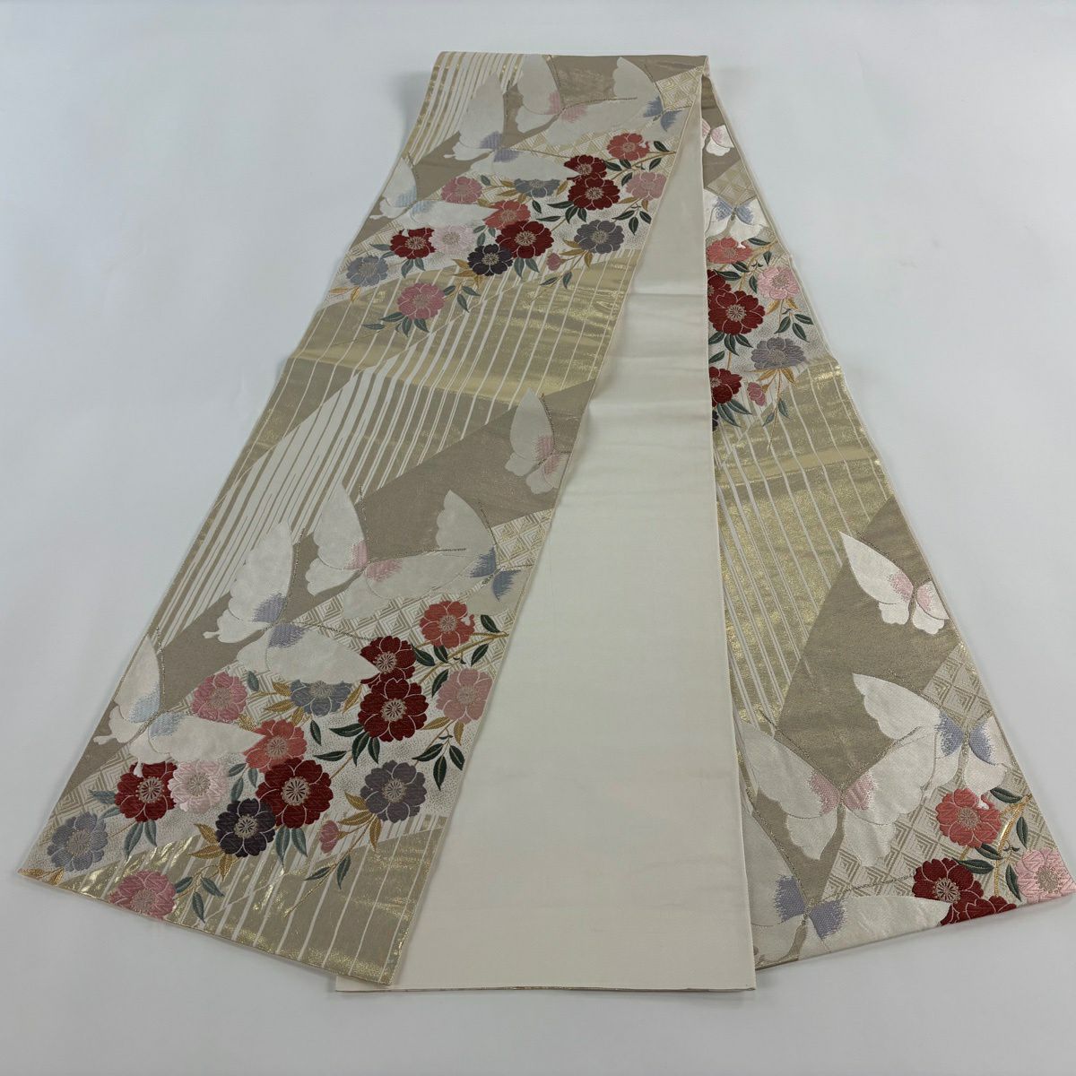 50%OFF 袋帯 秀品 蝶 草花 唐織 金糸 金色 全通 正絹 K50
