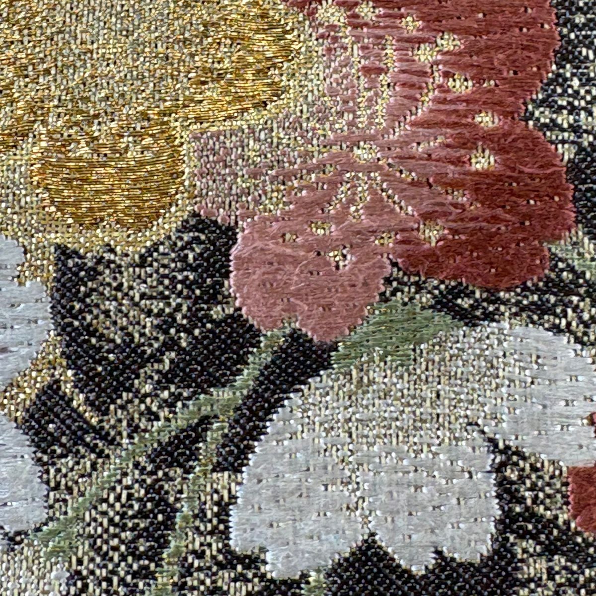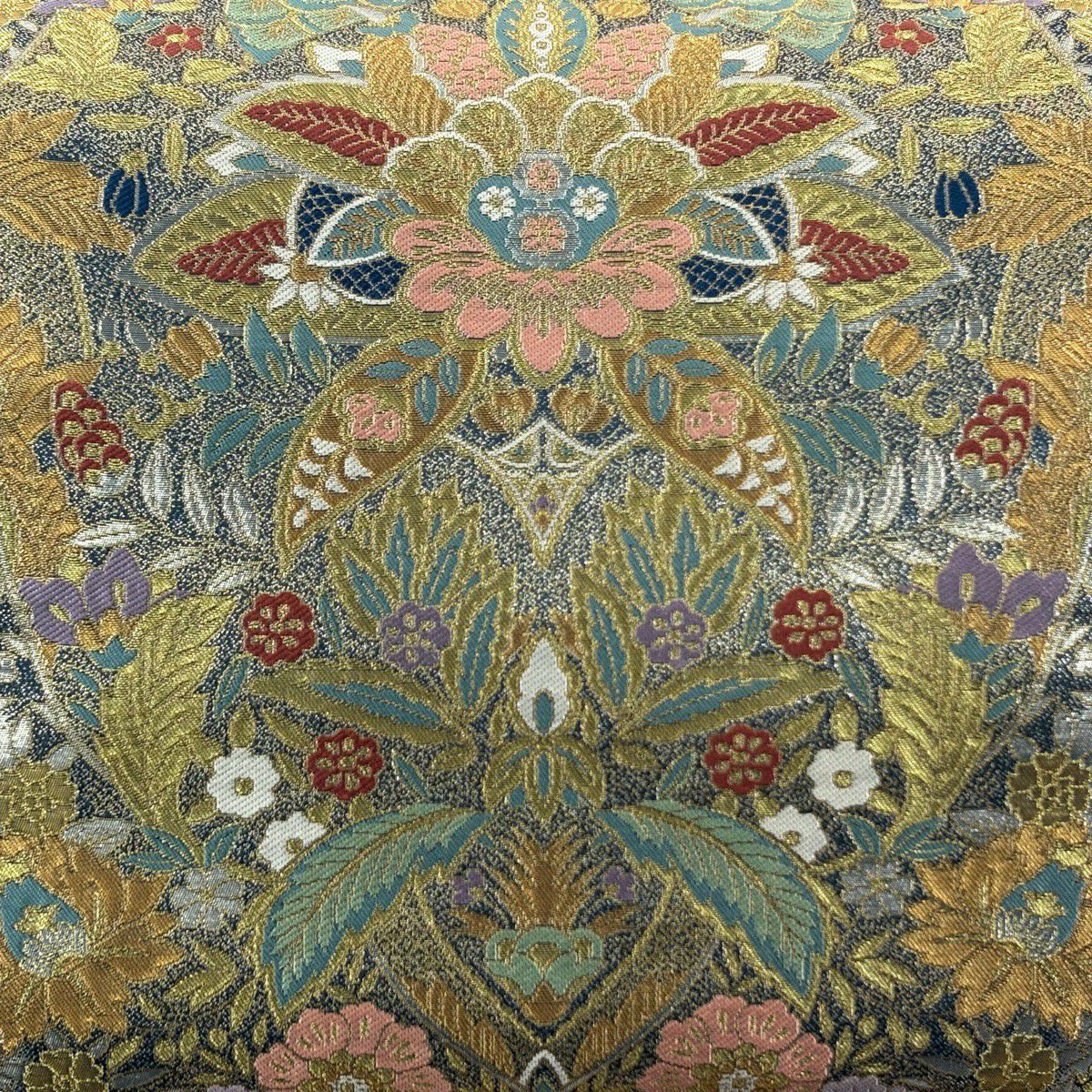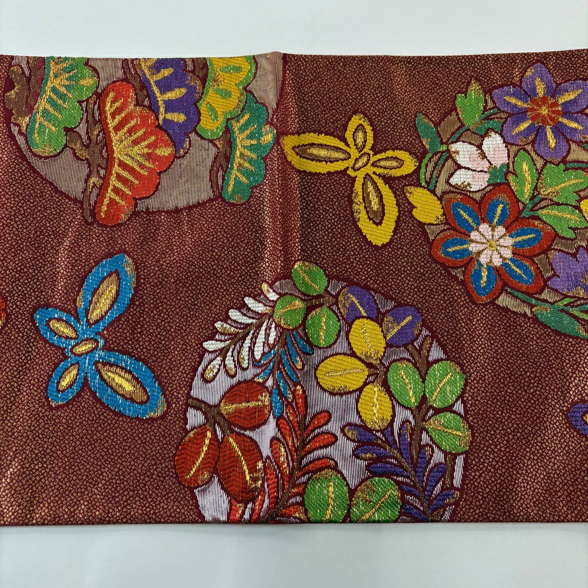 50%OFF 袋帯 秀品 蝶 草花 唐織 金糸 金色 全通 正絹 K50