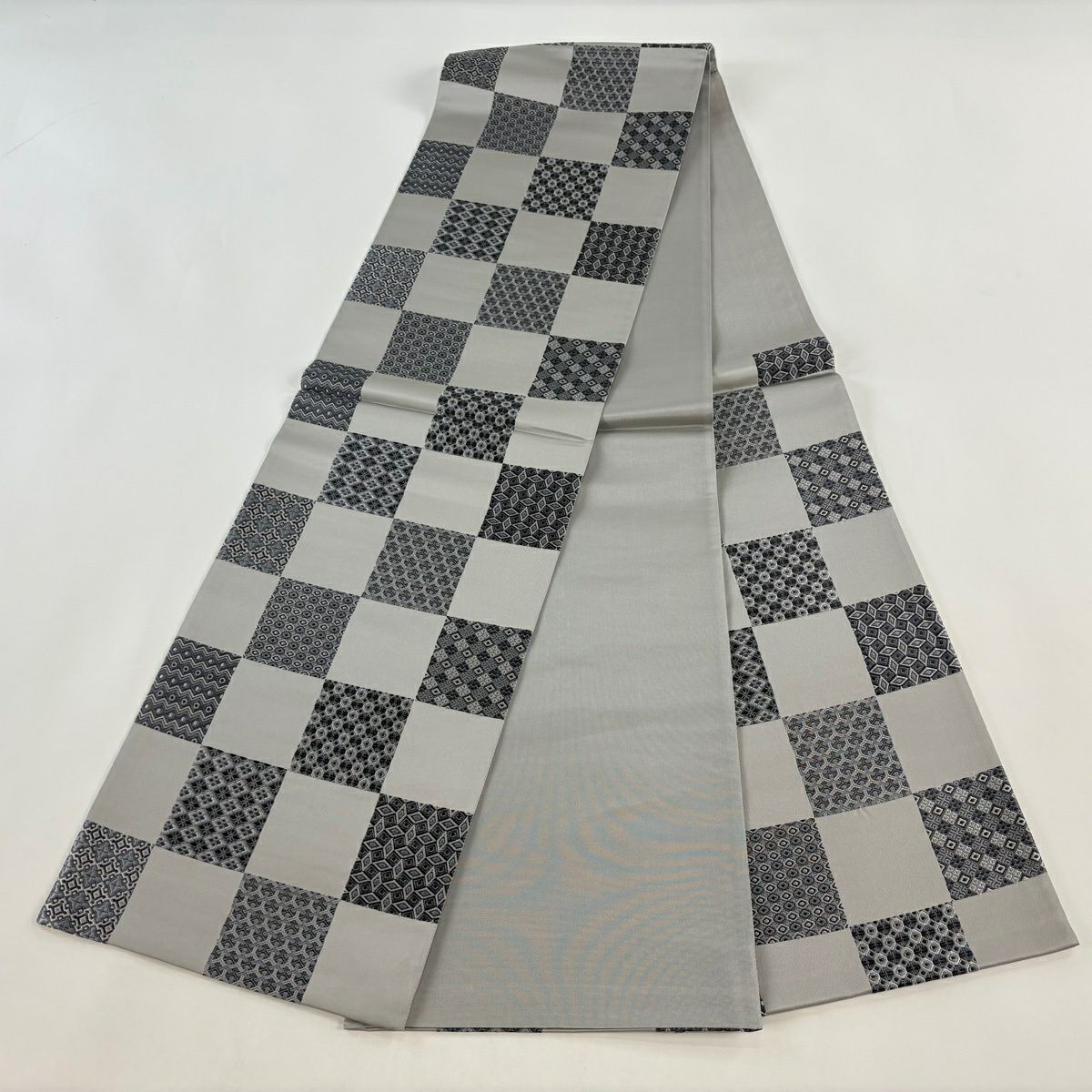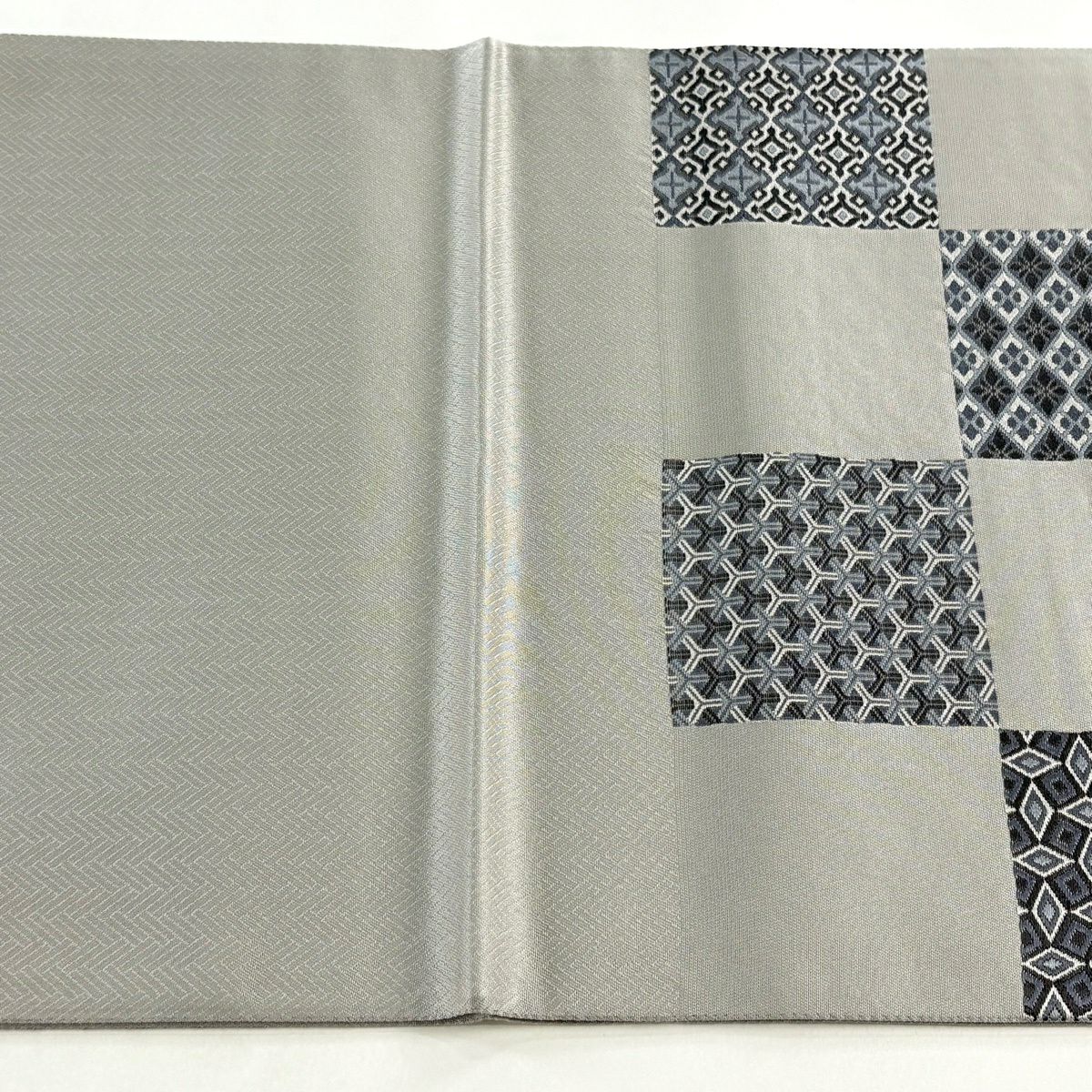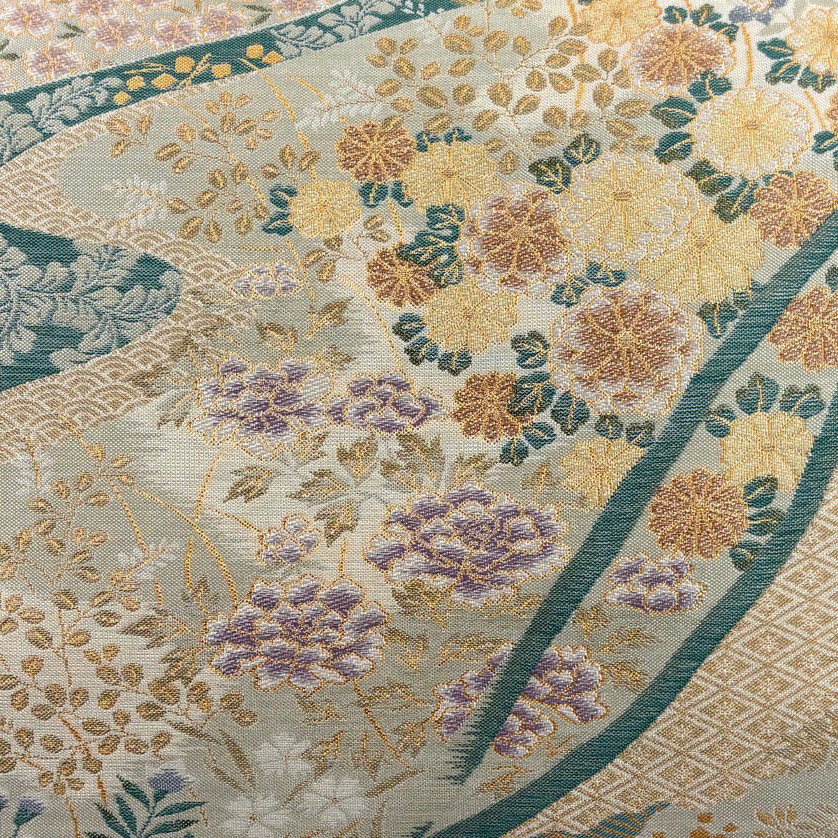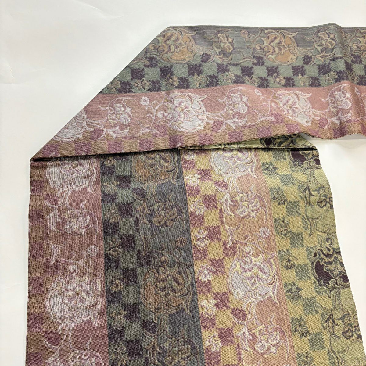 50%OFF 【美品】 名古屋帯 秀品 草花 市松 灰緑 正絹 K50