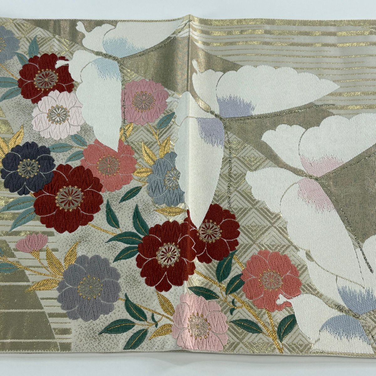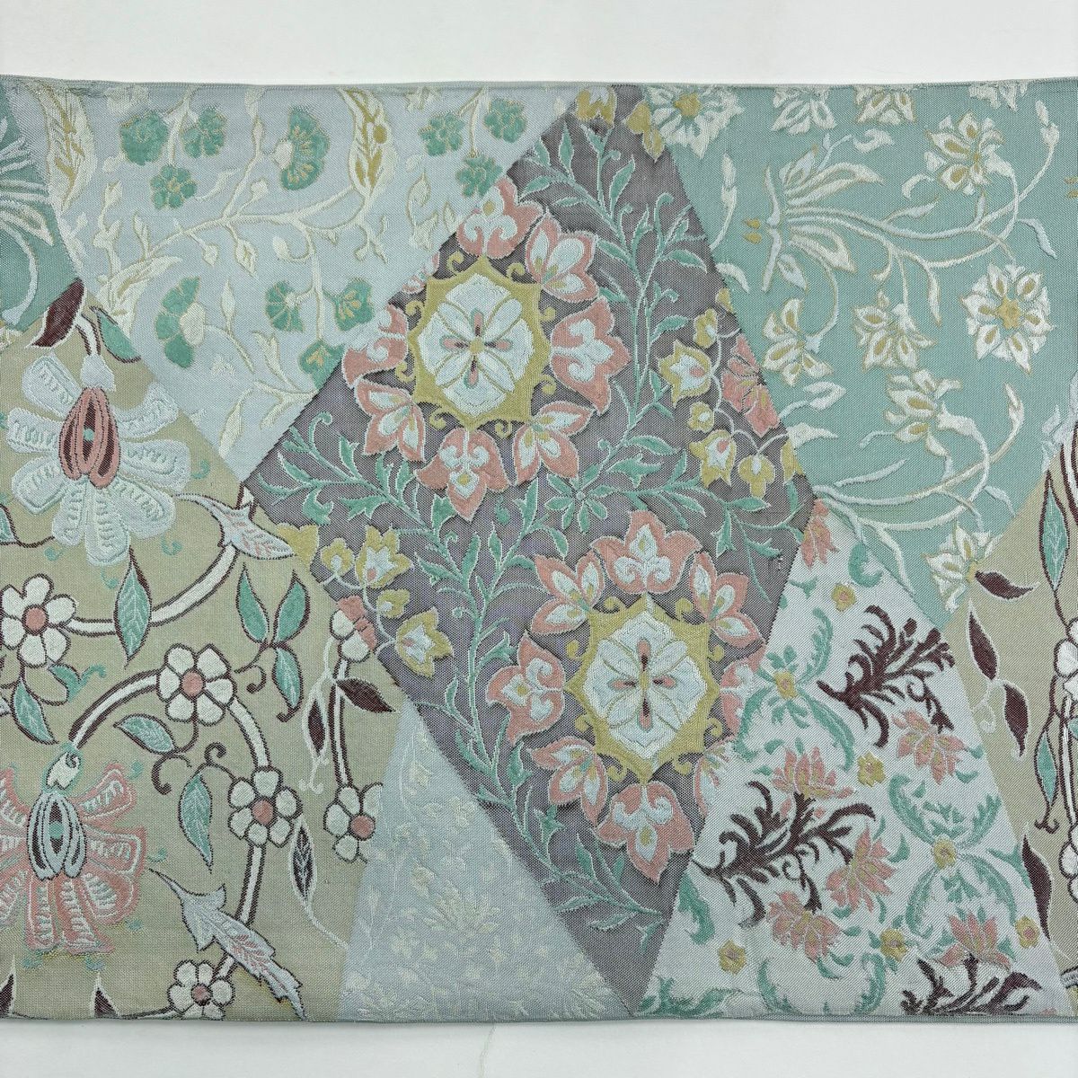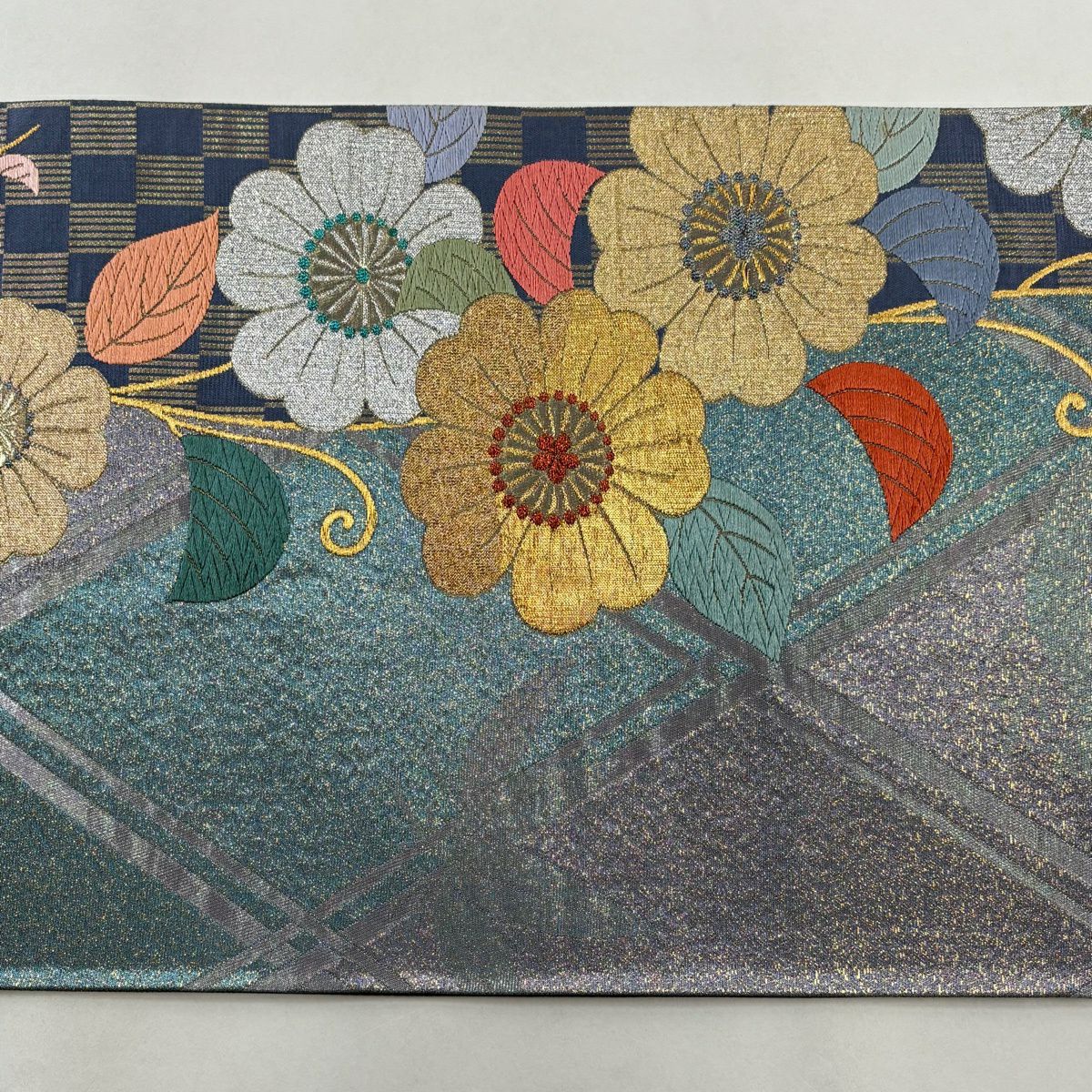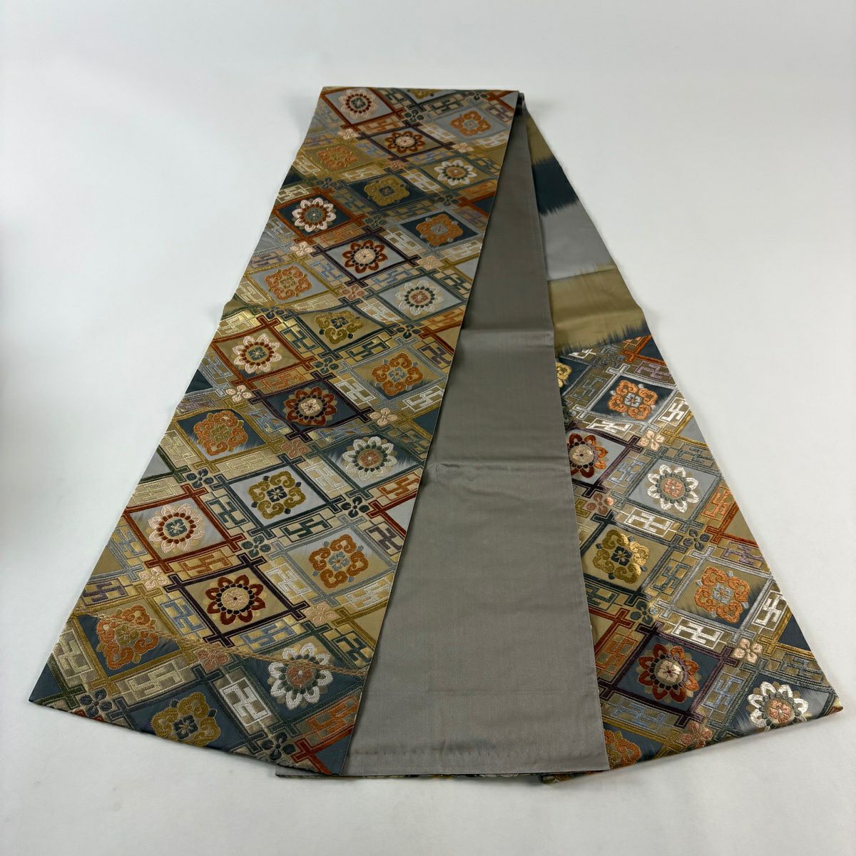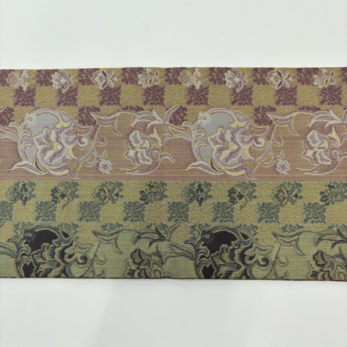 50%OFF 【美品】 名古屋帯 秀品 草花 市松 灰緑 正絹 K50