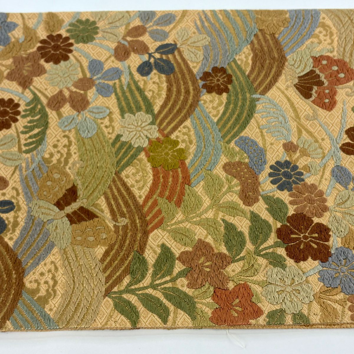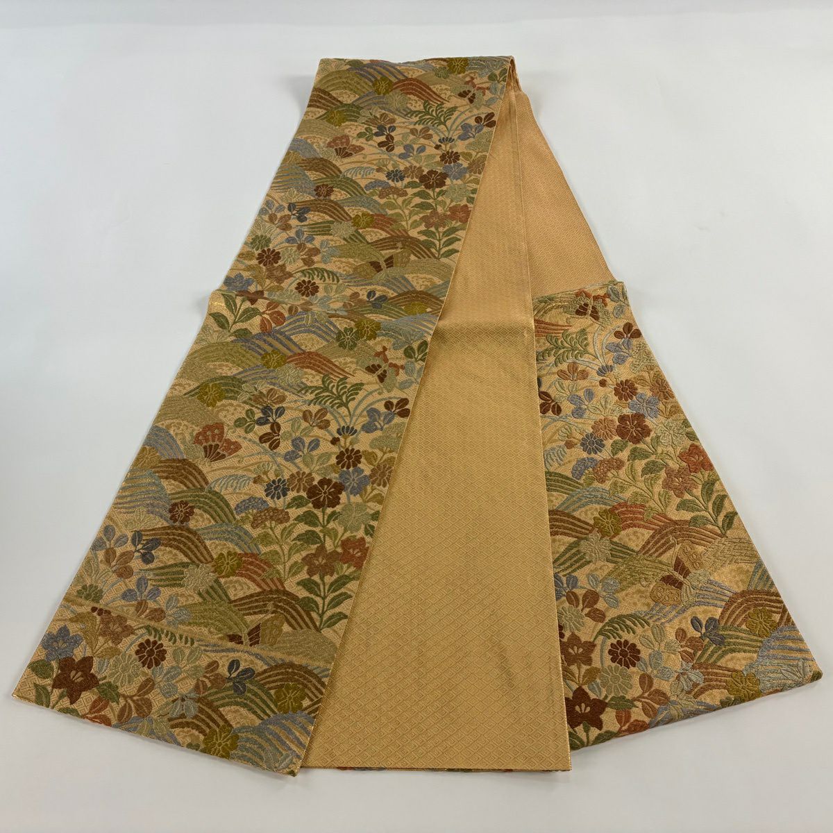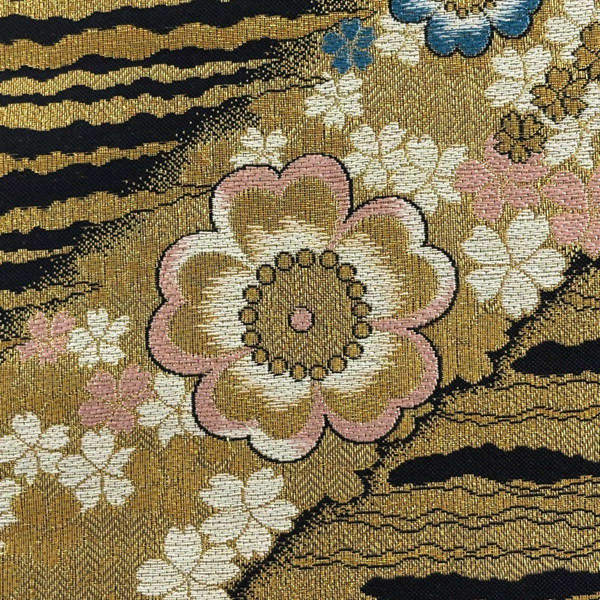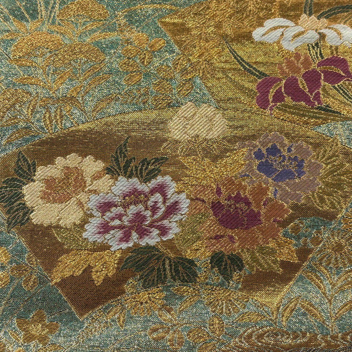 50%OFF 袋帯 秀品 秋草 流水 金糸 箔 金色 六通 正絹 K50