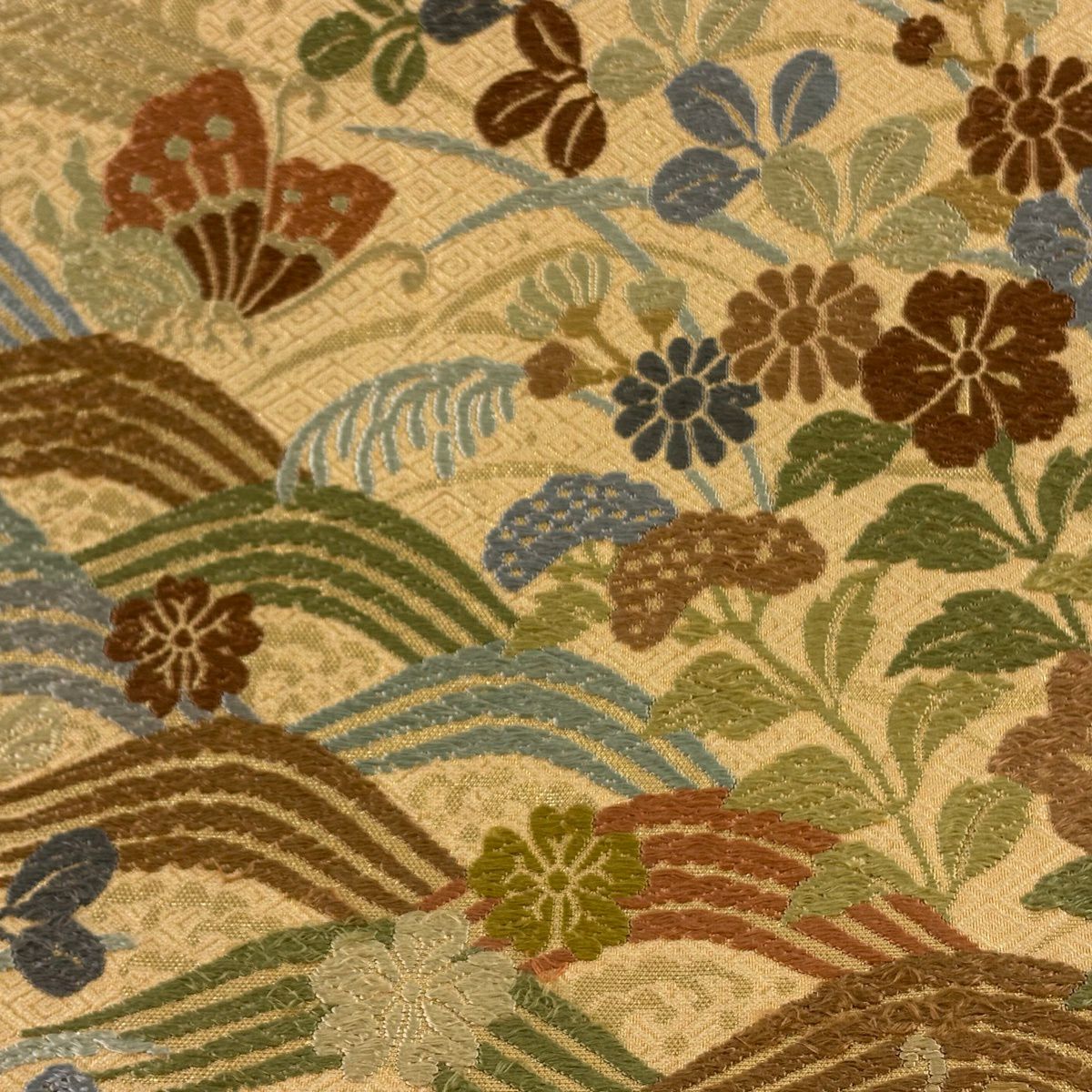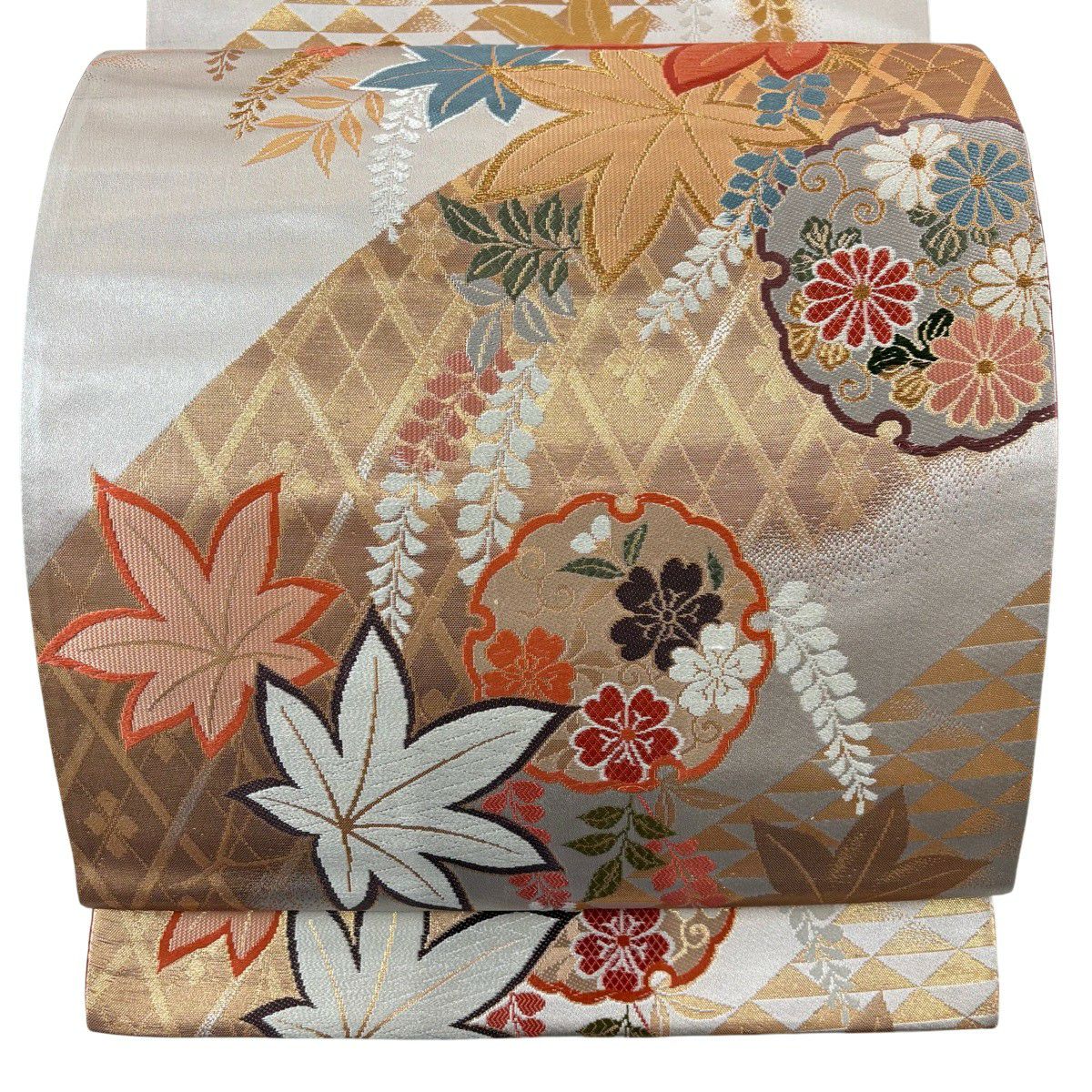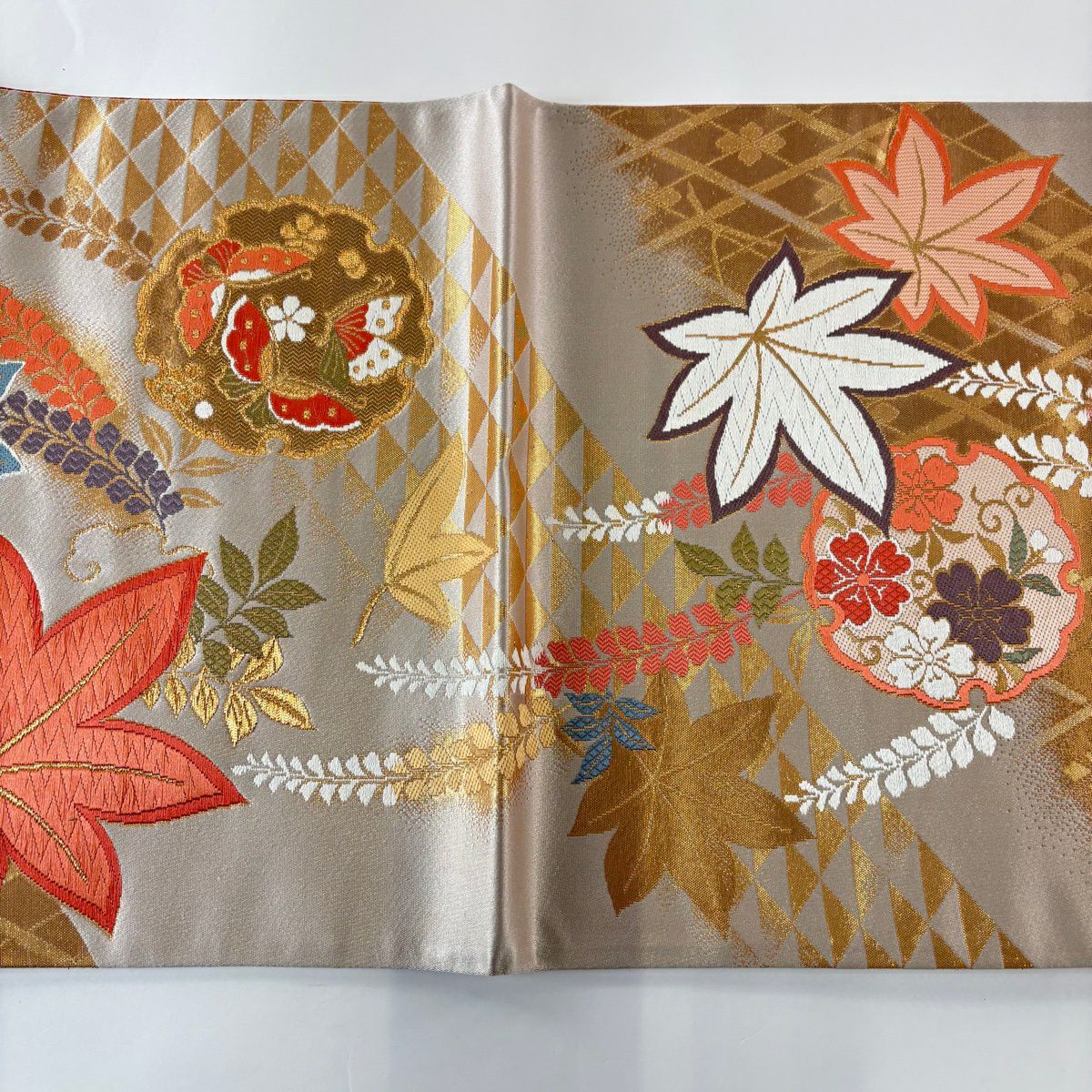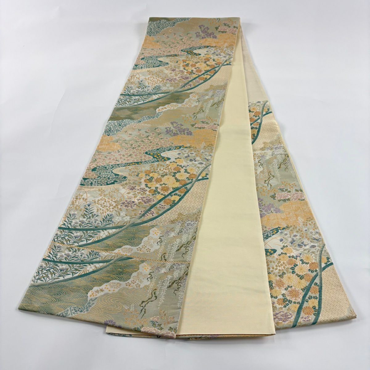 50%OFF 袋帯 秀品 秋草 流水 金糸 箔 金色 六通 正絹 K50