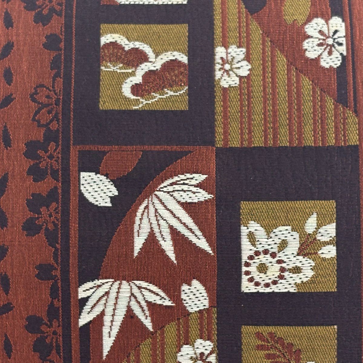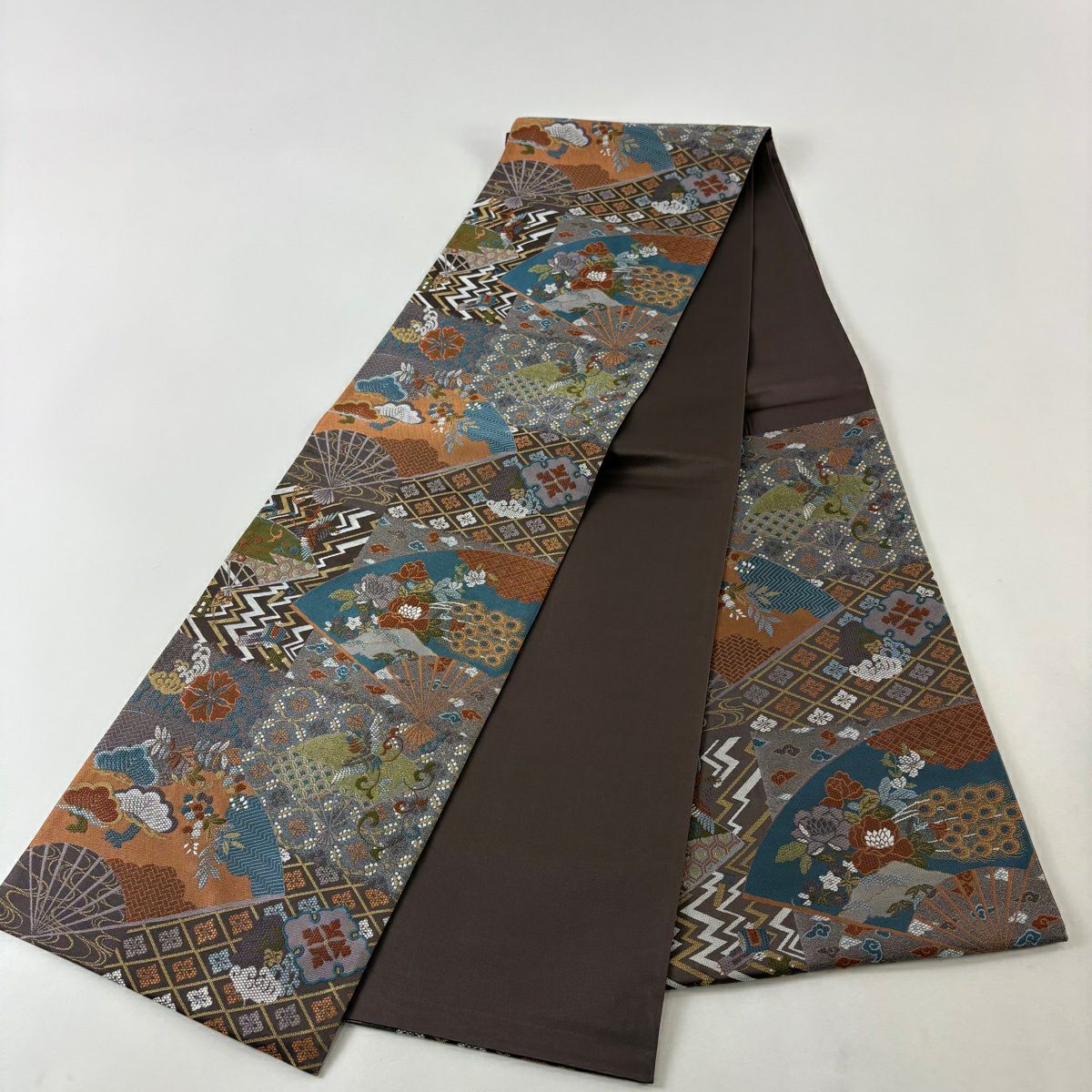 50%OFF 【美品】 袋帯 秀品 扇 花鳥 茶色 六通 正絹 K50