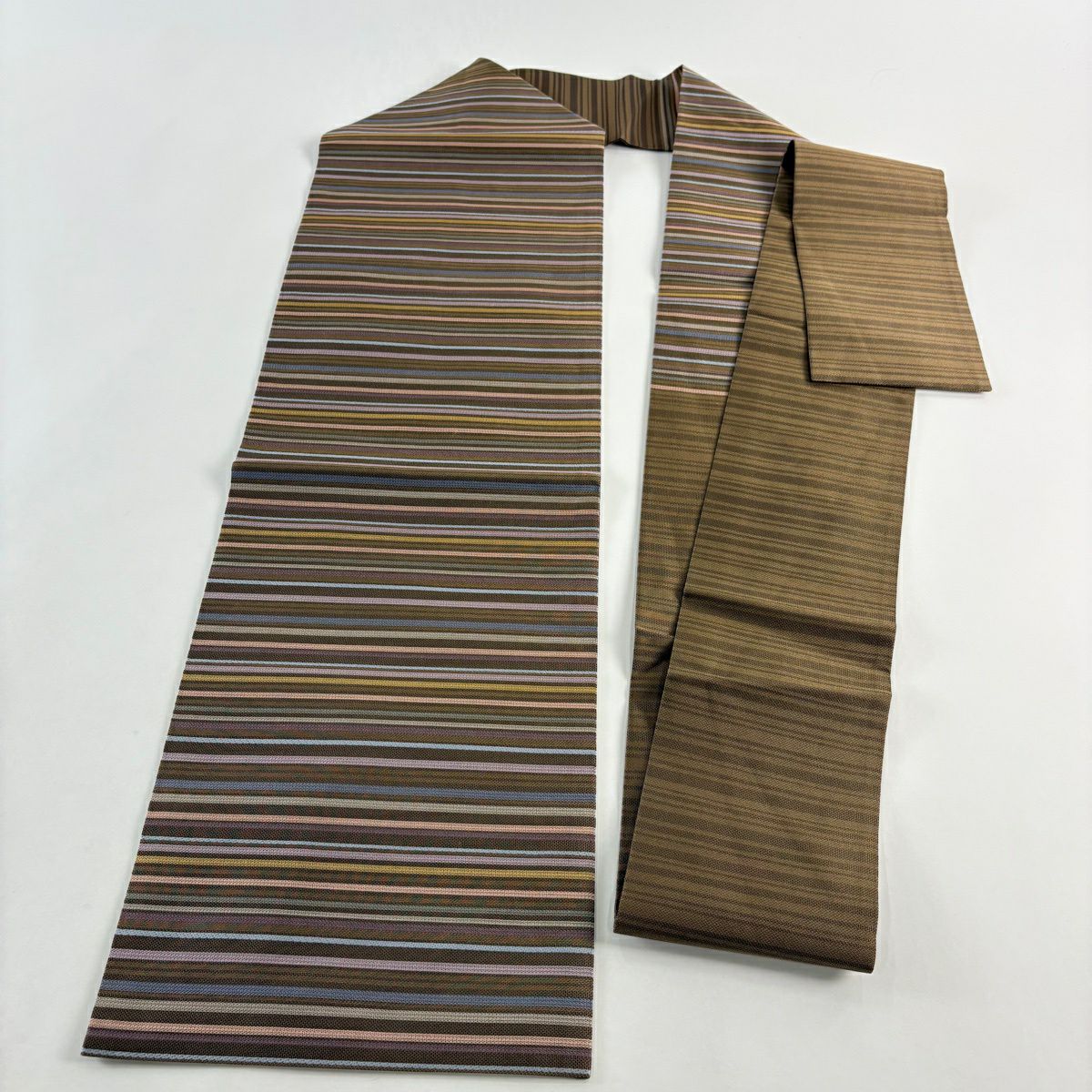 50%OFF 【美品】 名古屋帯 秀品 紬地 縞 焦茶色 正絹 K50