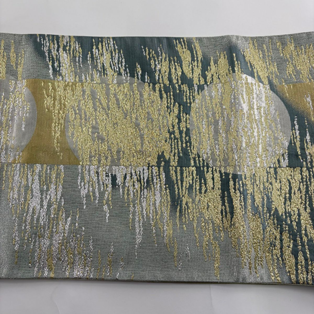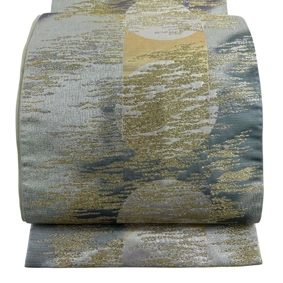 50%OFF 袋帯 秀品 月 霞 金銀糸 箔 薄緑 六通 正絹 K50