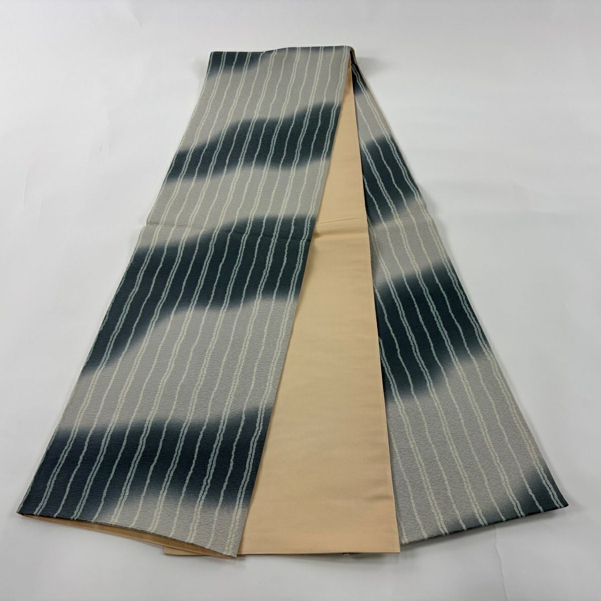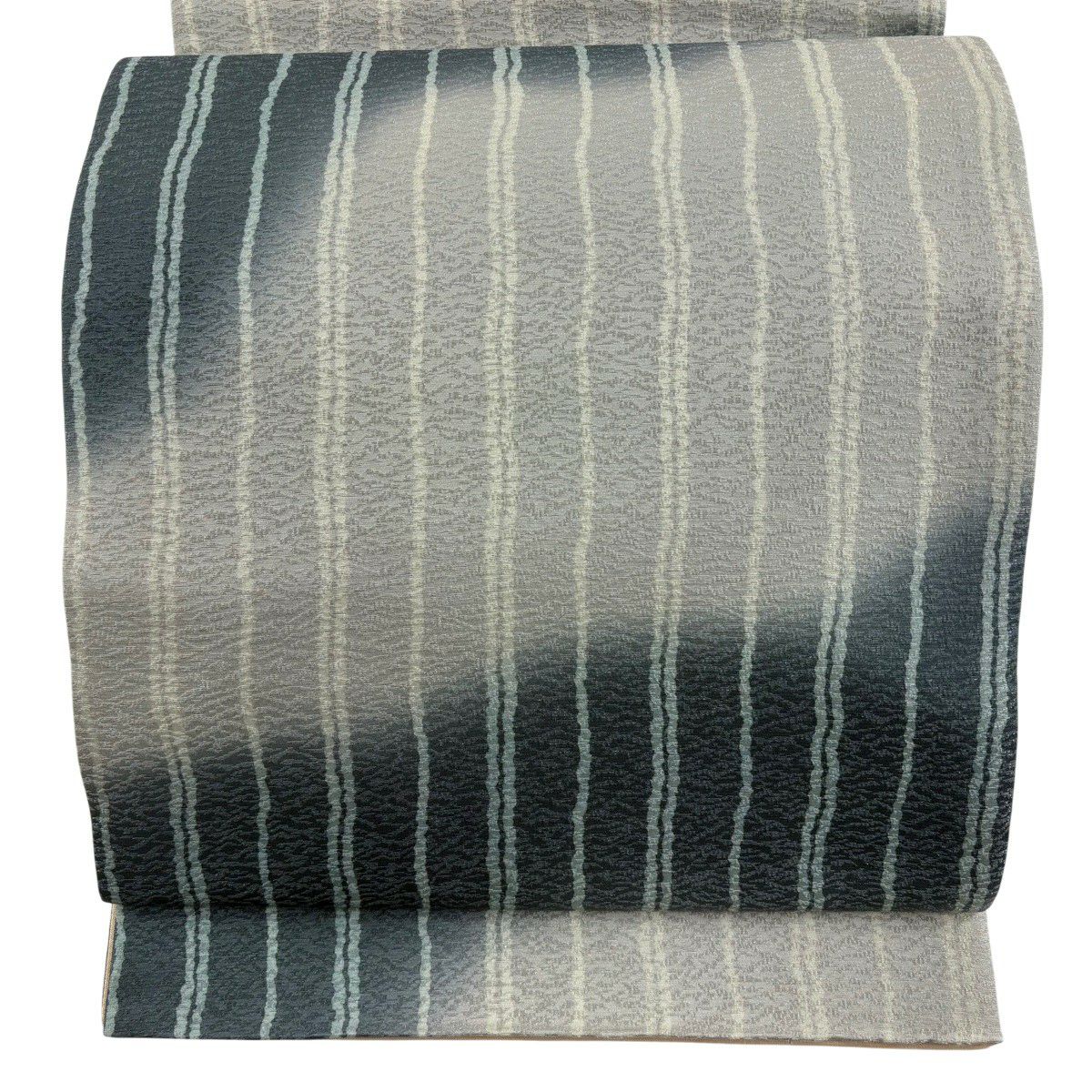 50%OFF 袋帯 秀品 縞 銀糸 ぼかし 青灰色 全通 正絹 K50