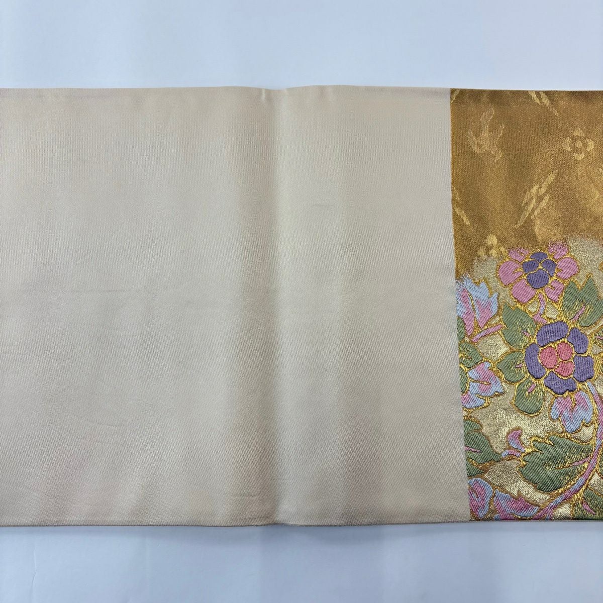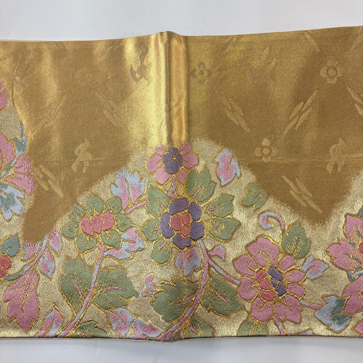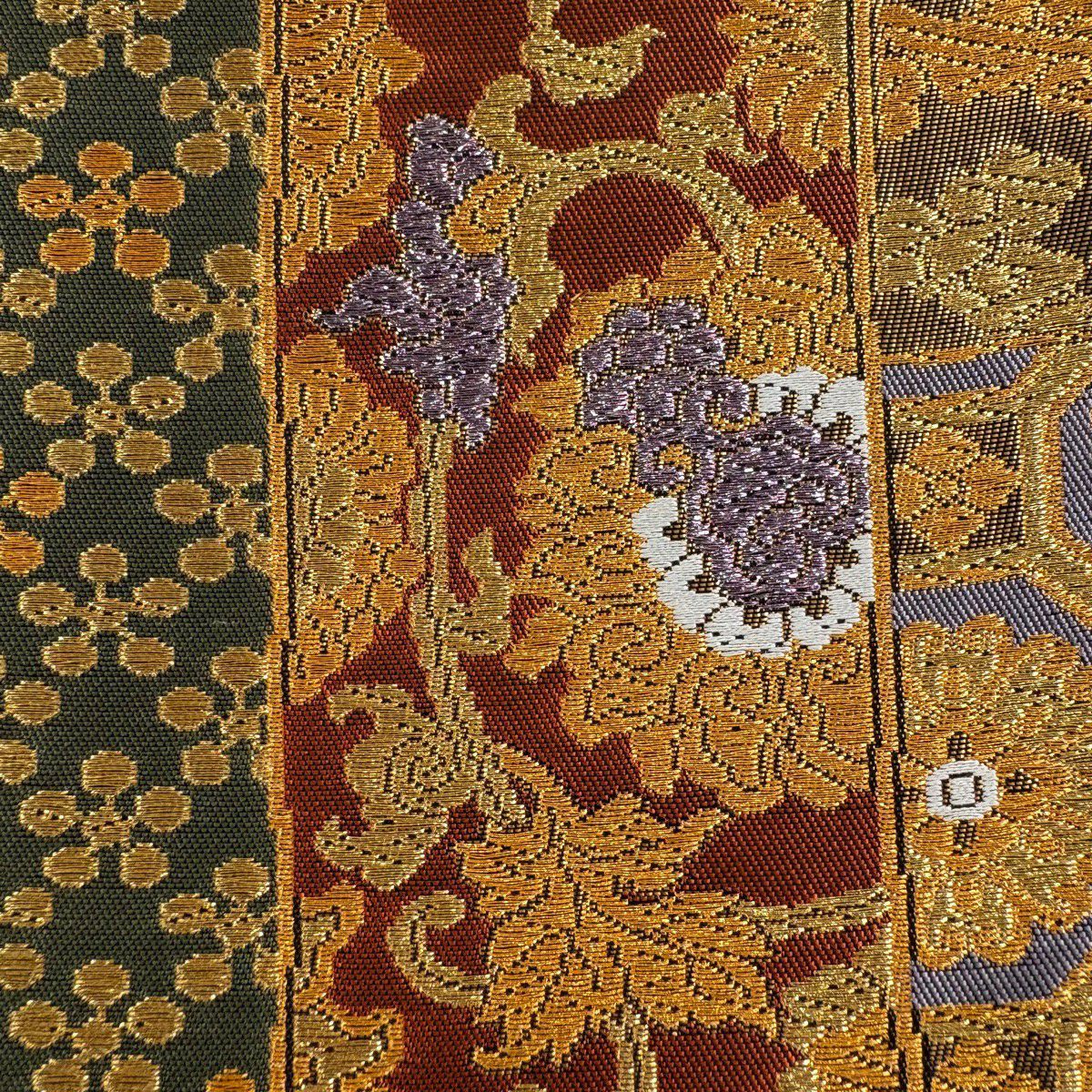 50%OFF 袋帯 秀品 草花 蝶 唐織 箔 金色 六通 正絹 K50