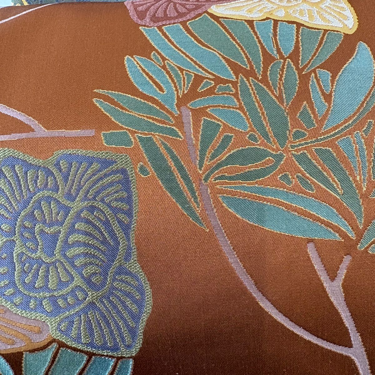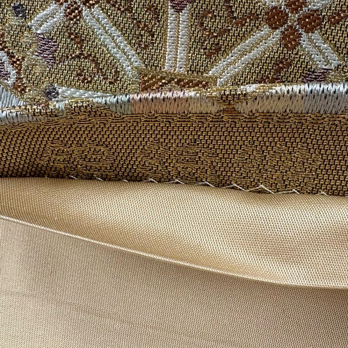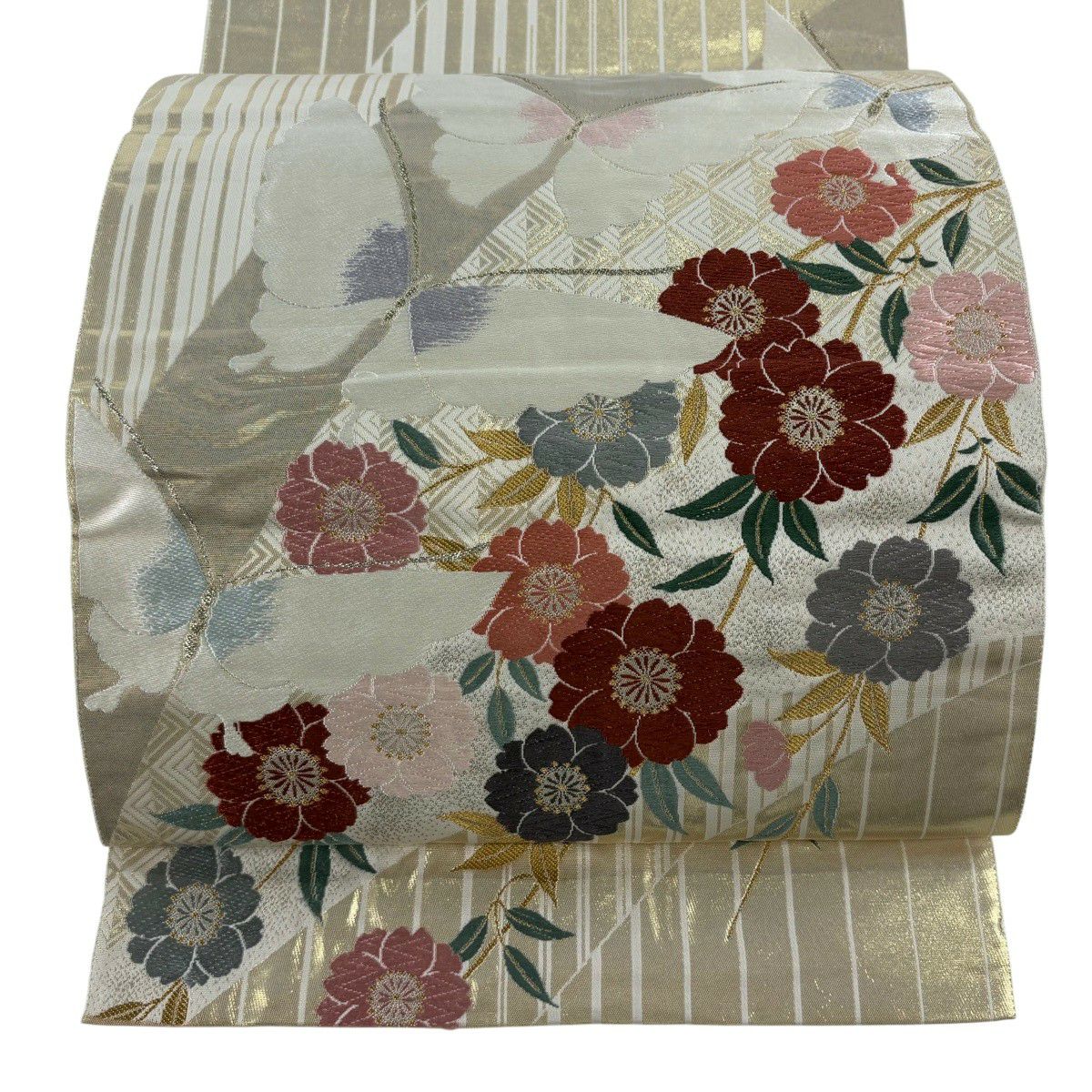 50%OFF 袋帯 秀品 草花 蝶 唐織 箔 金色 六通 正絹 K50