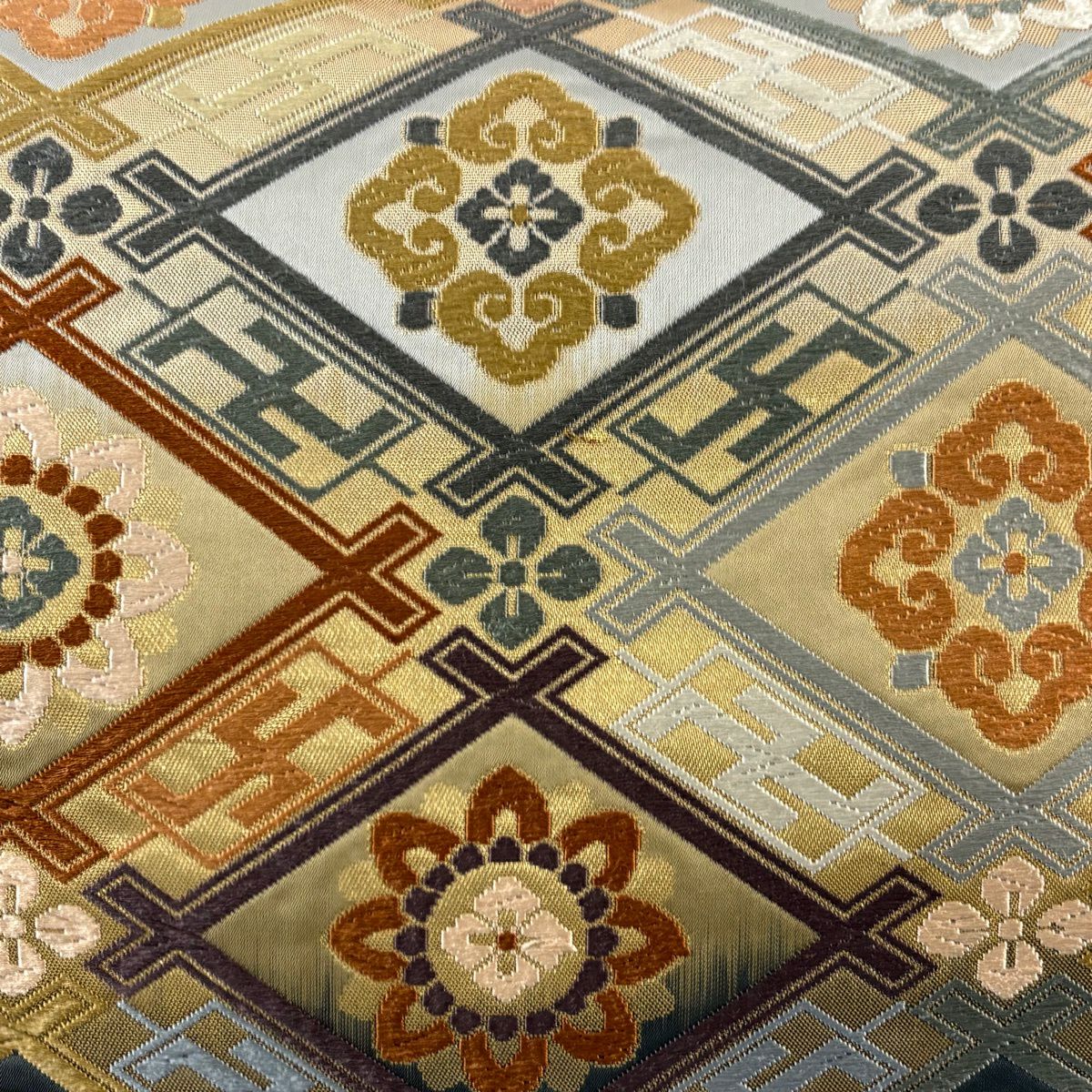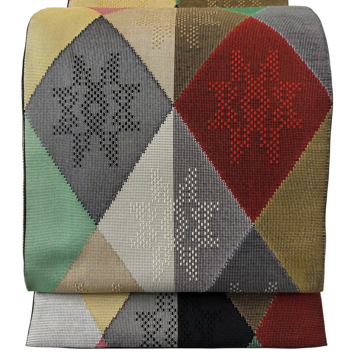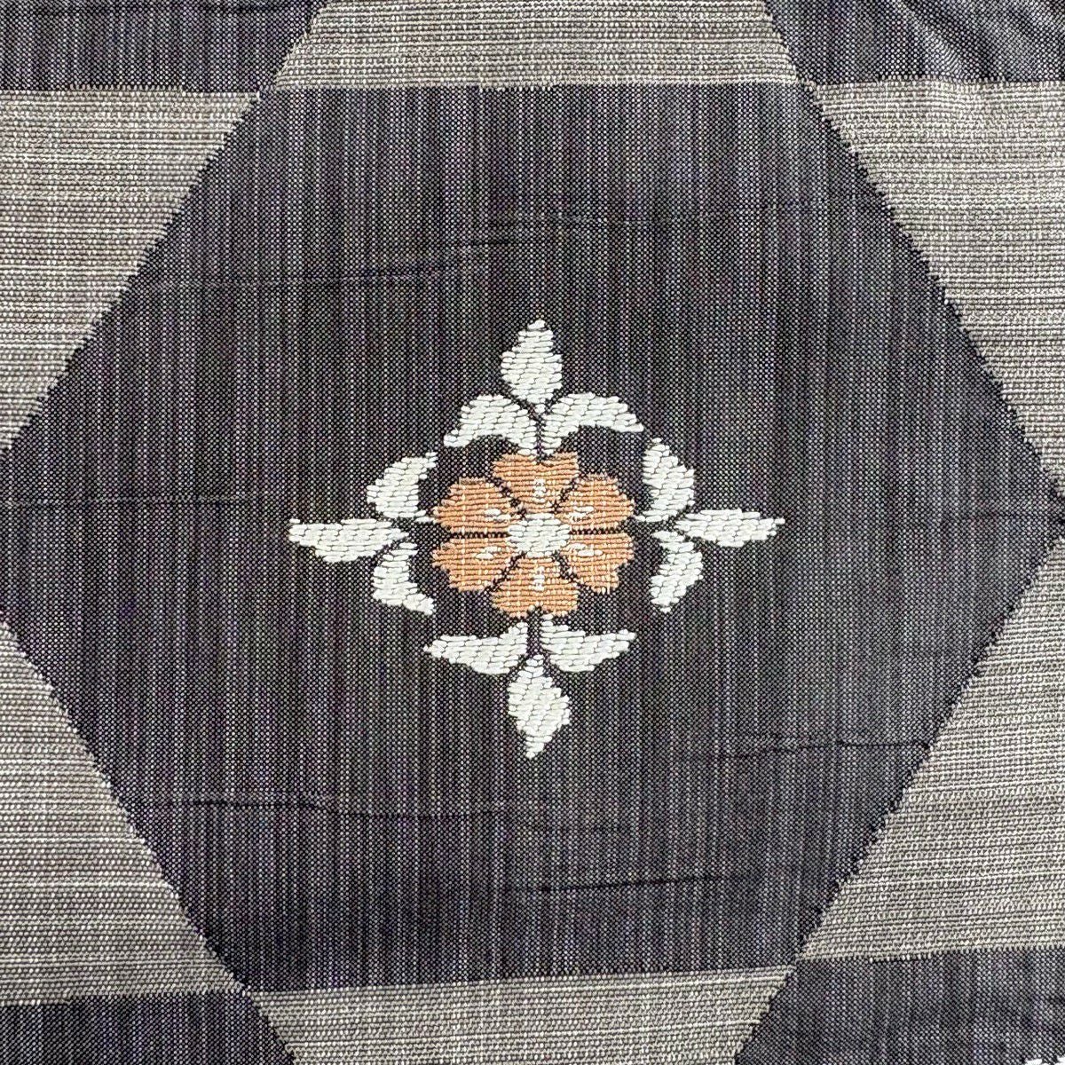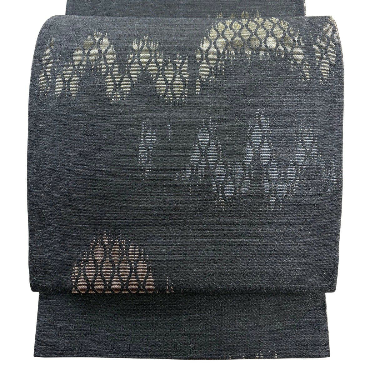 50%OFF 袋帯 秀品 幾何学 菱 金銀糸 墨色 全通 正絹 K50