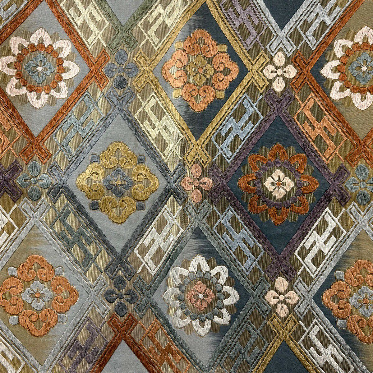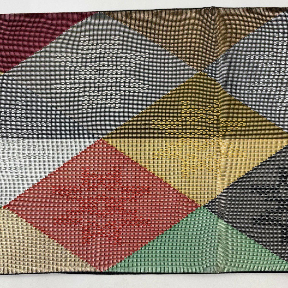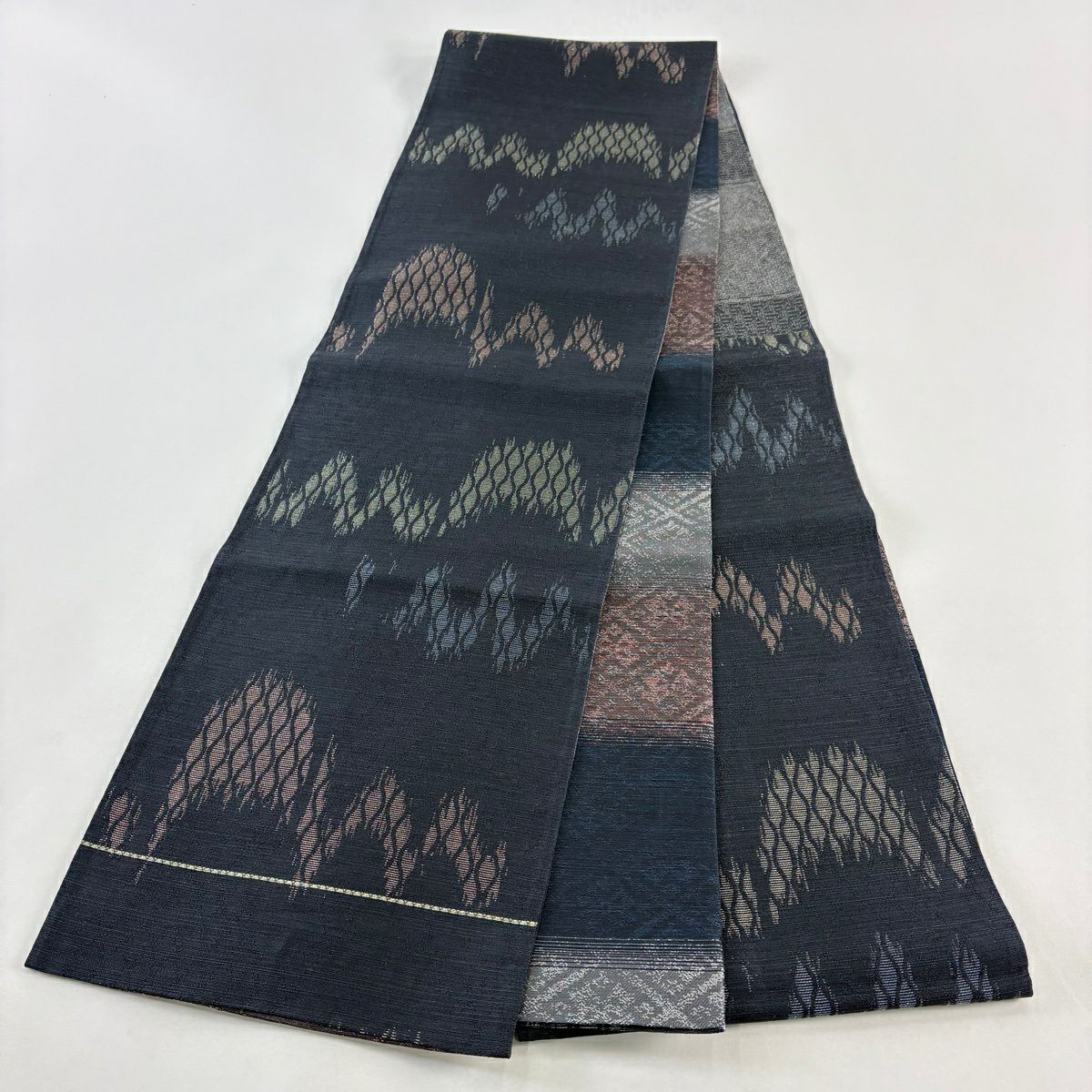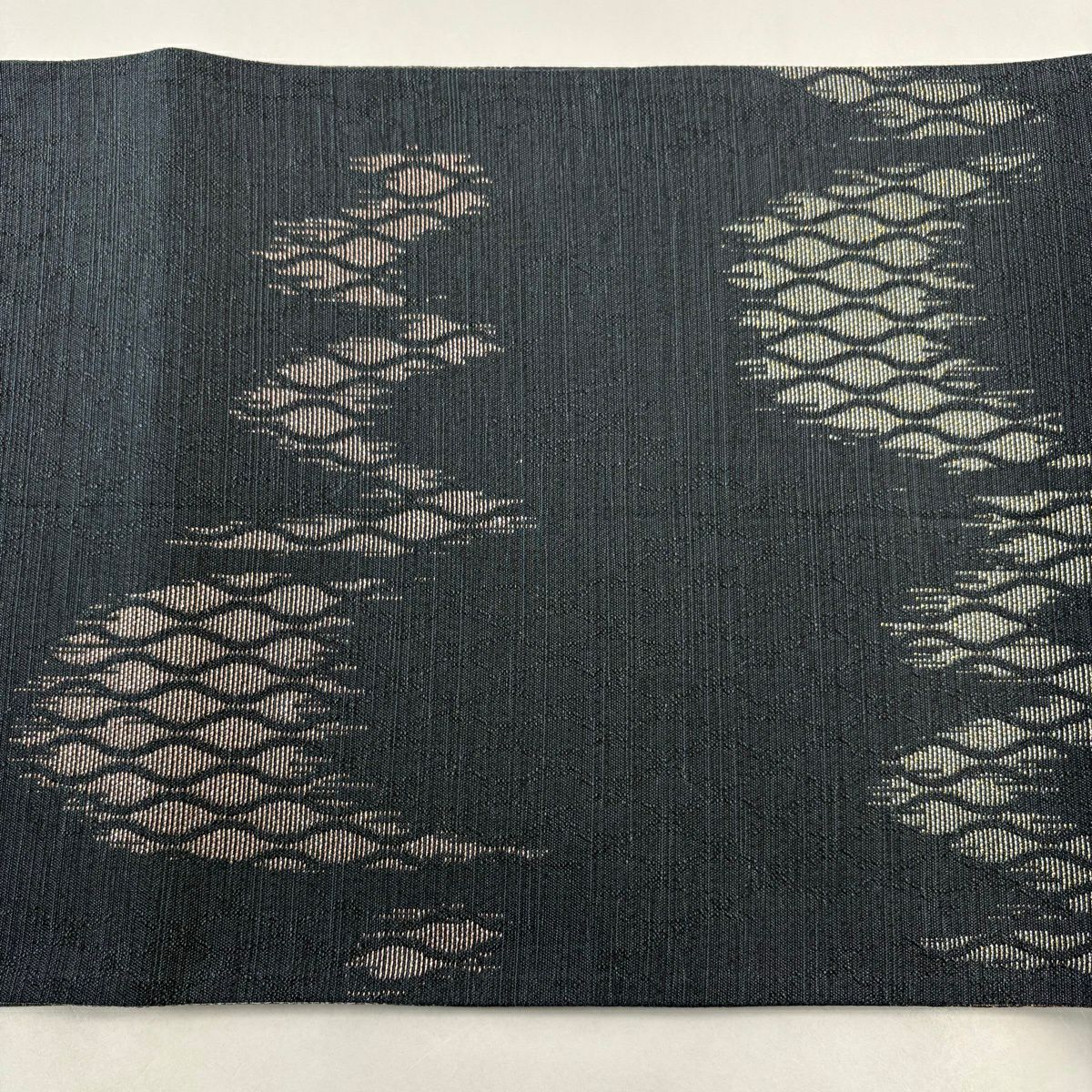 50%OFF 袋帯 秀品 幾何学 菱 金銀糸 墨色 全通 正絹 K50