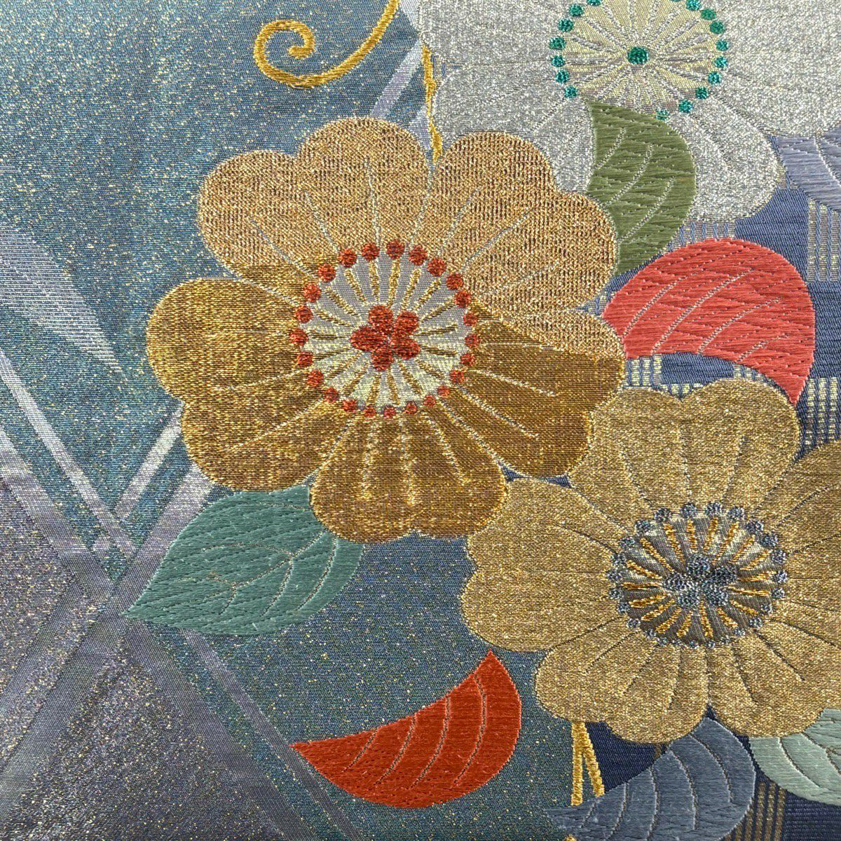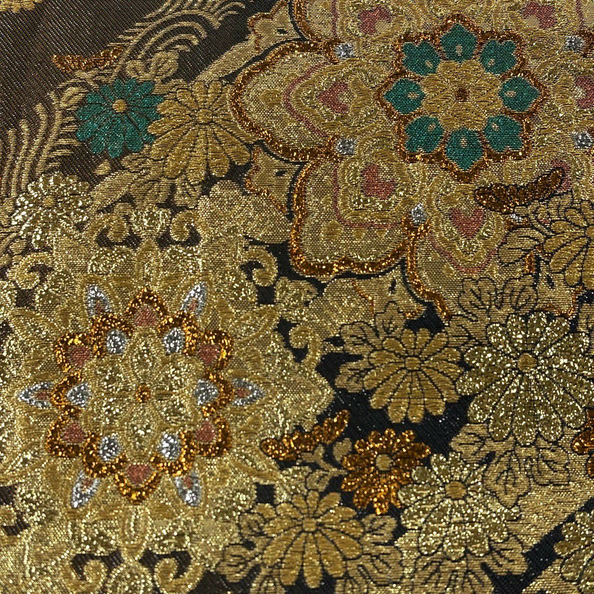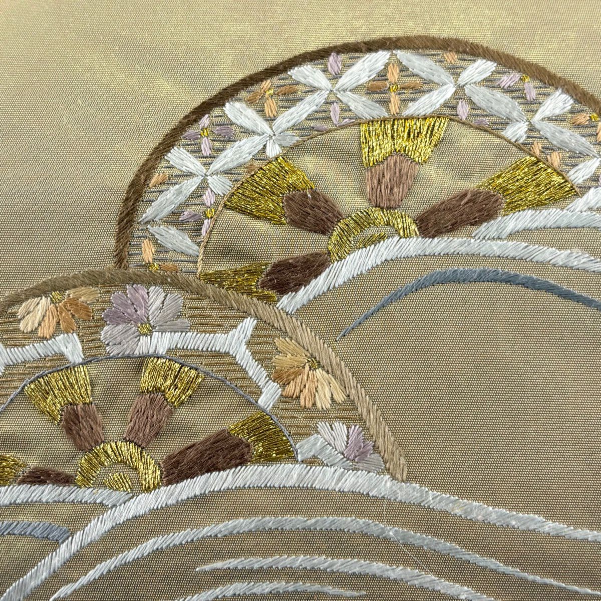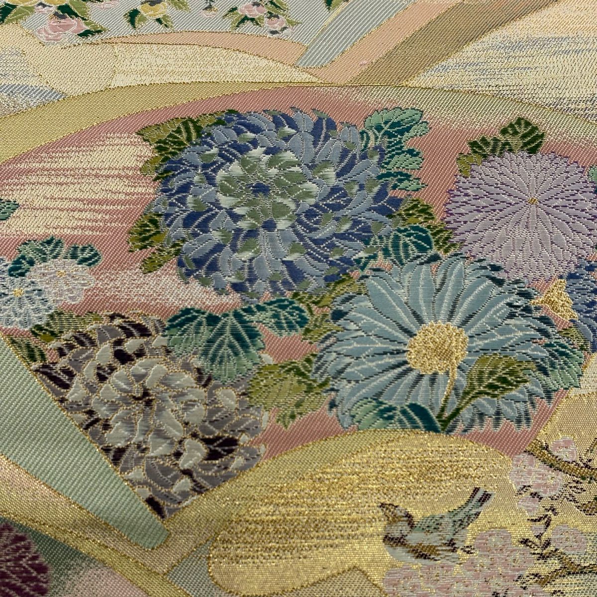 50%OFF 袋帯 秀品 菊 鴛鴦 刺繍 箔 金色 六通 正絹 K50