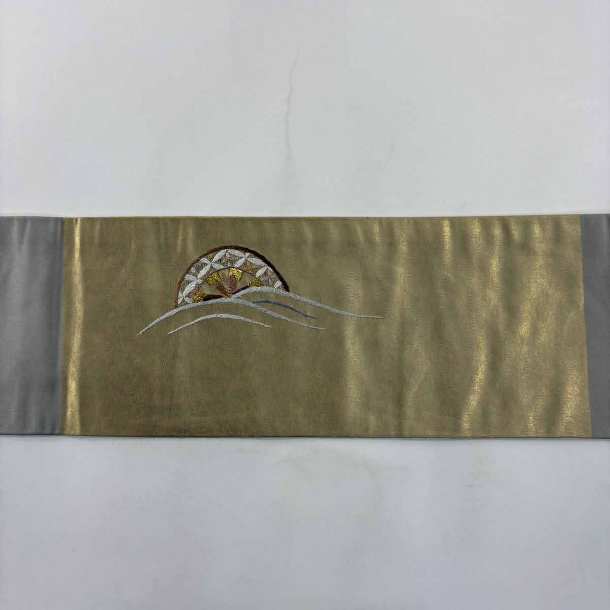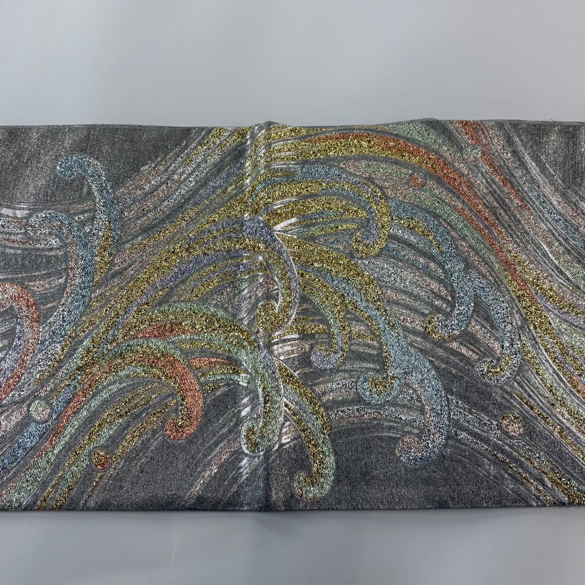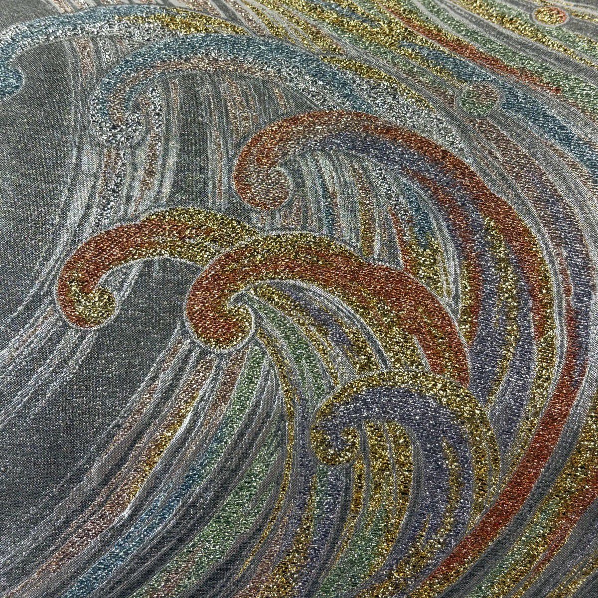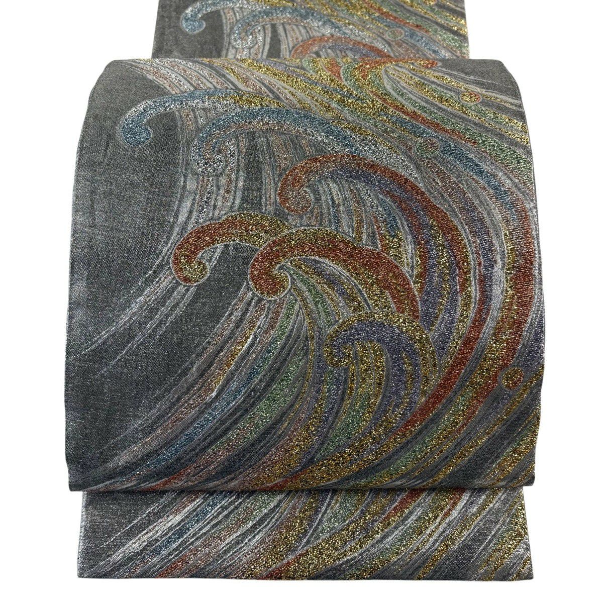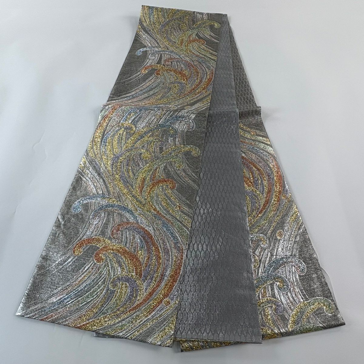 50%OFF 【美品】 袋帯 秀品 波頭 箔 銀色 六通 正絹 K50