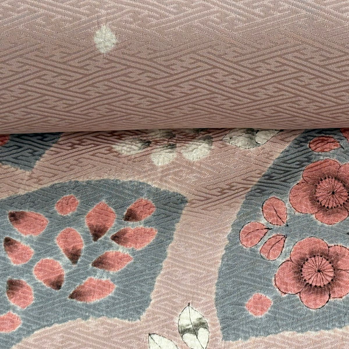 50%OFF 反物 秀品 小紋 扇面 梅 絞り ピンク 正絹 K50
