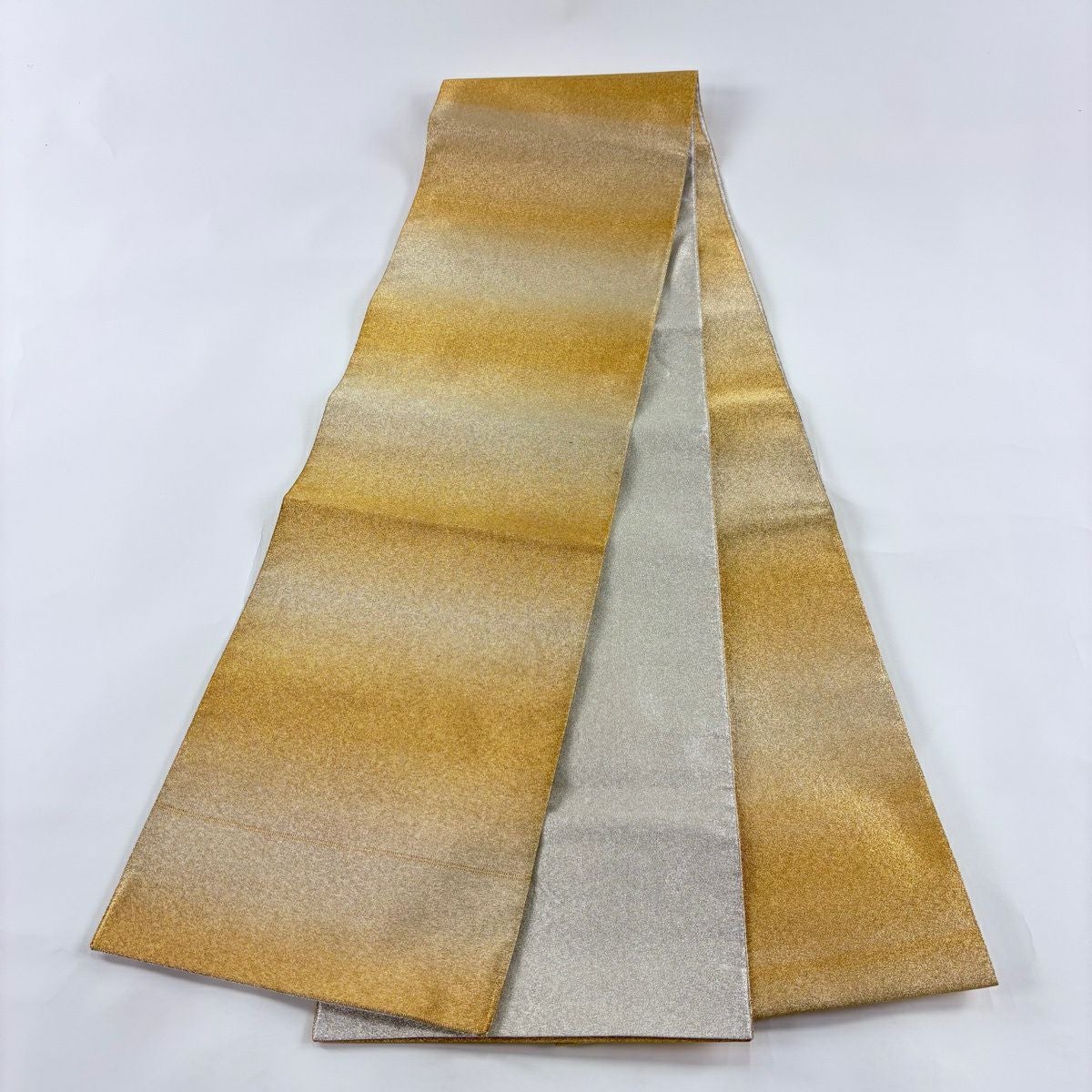 50%OFF 【美品】 袋帯 秀品 段縞 金糸 金色 全通 正絹 K50