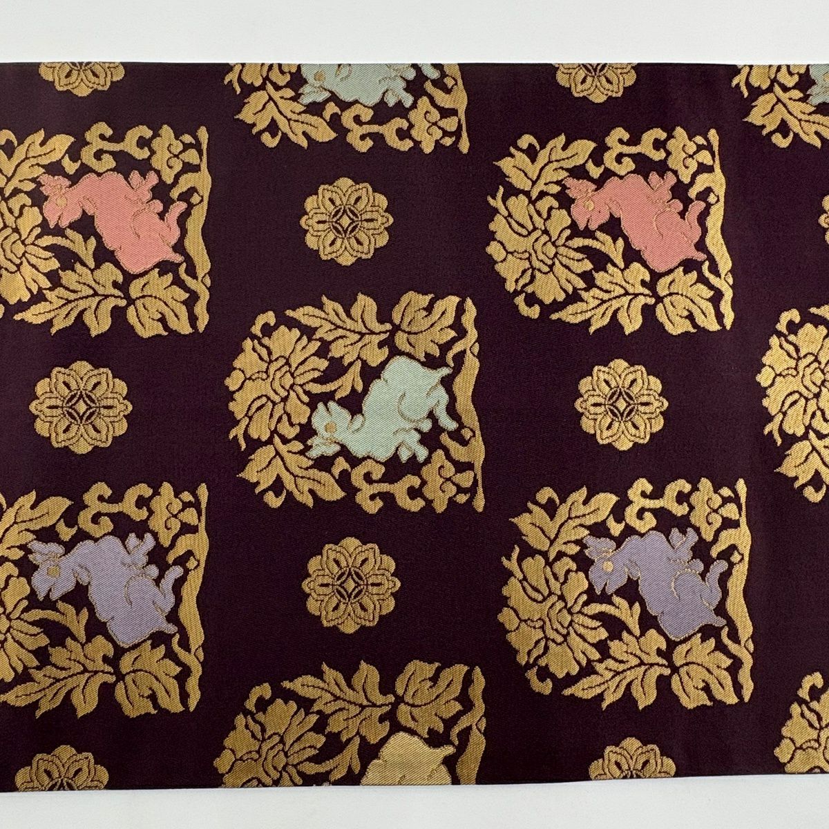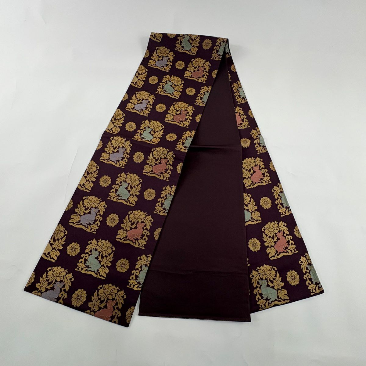 50%OFF 【美品】 袋帯 秀品 花兎 箔 濃紫 全通 正絹 K50