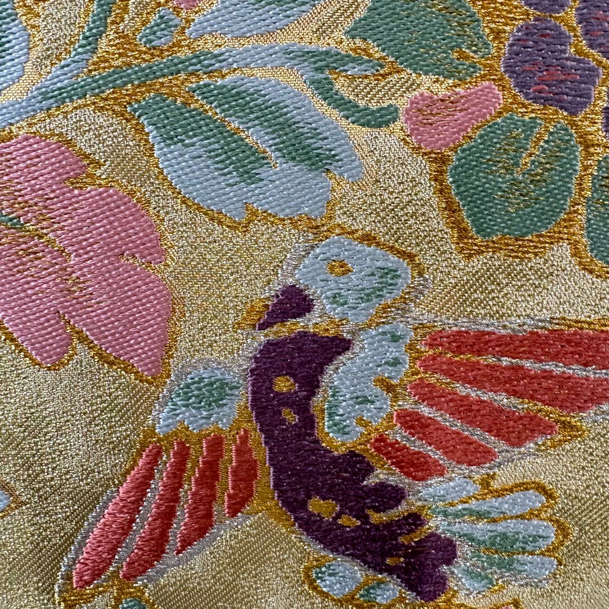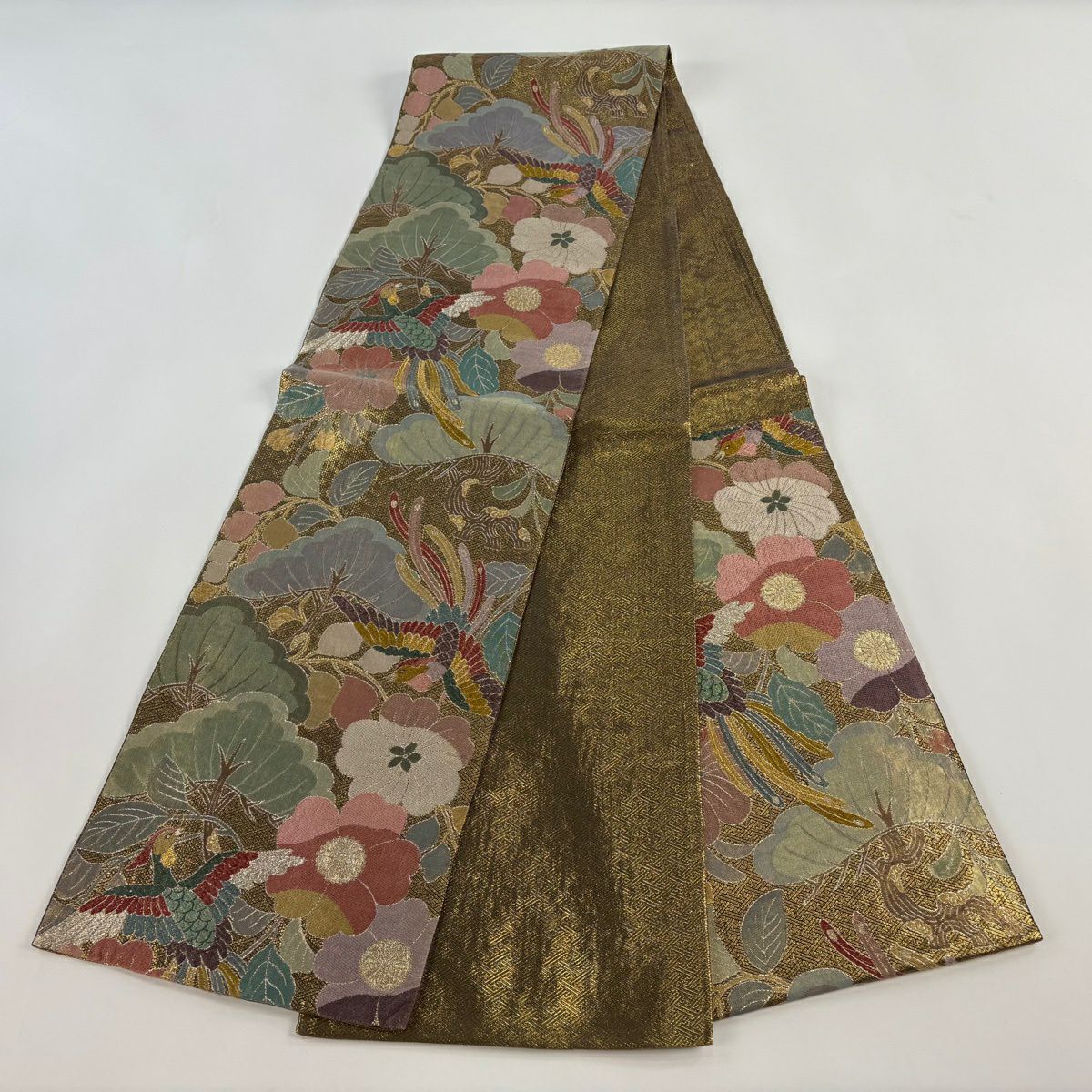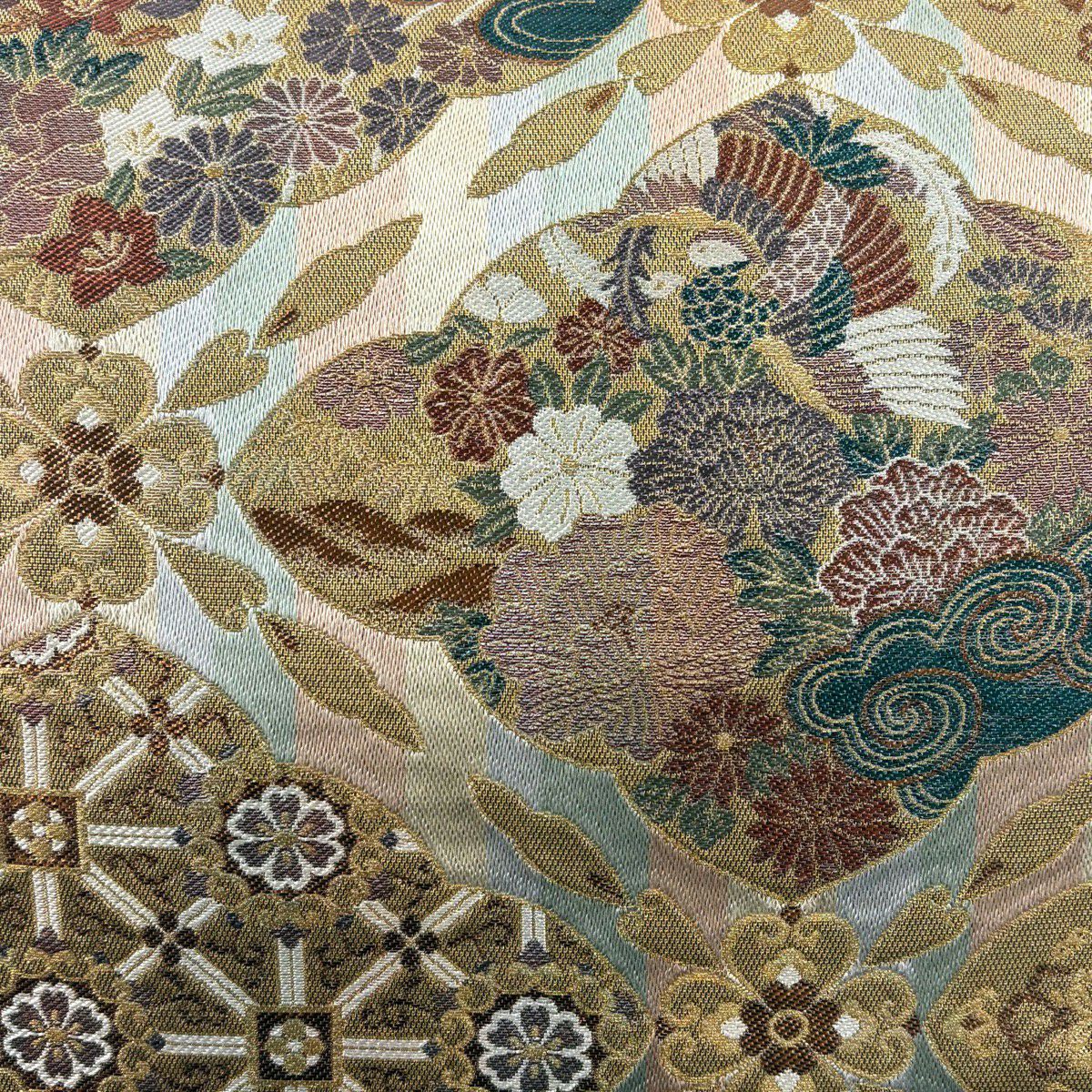 50%OFF 袋帯 秀品 鳳凰 草花 金糸 箔 金色 六通 正絹 K50