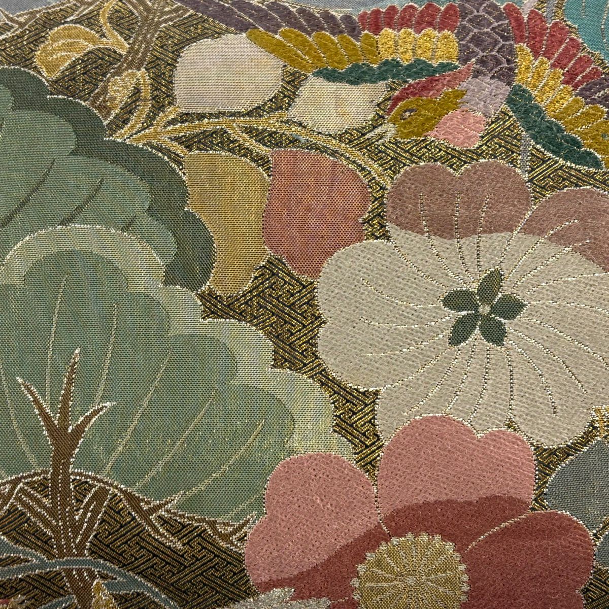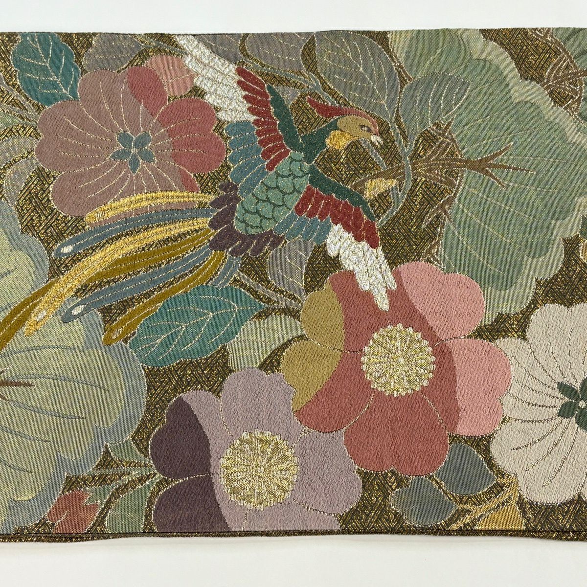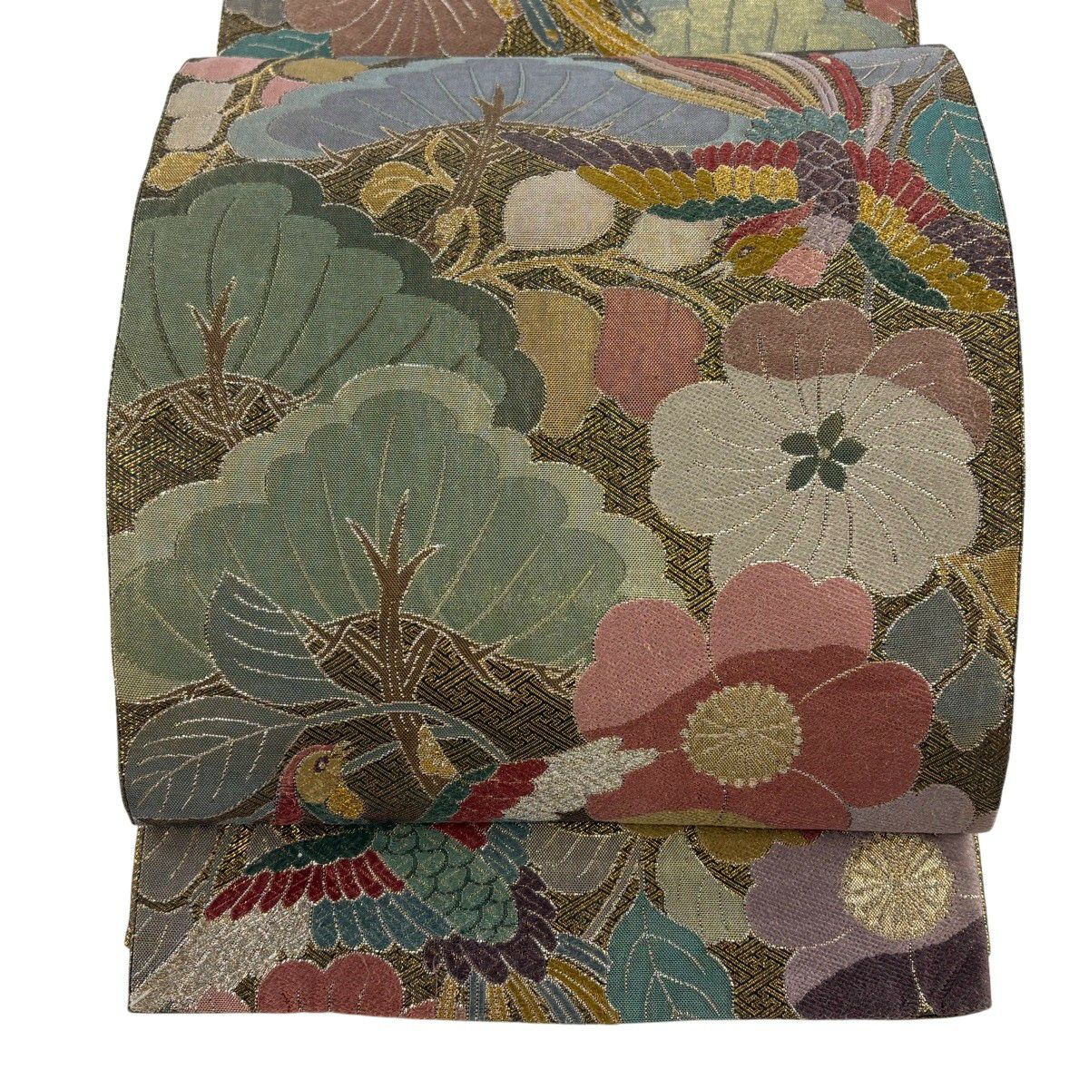 50%OFF 袋帯 秀品 鳳凰 草花 金糸 箔 金色 六通 正絹 K50