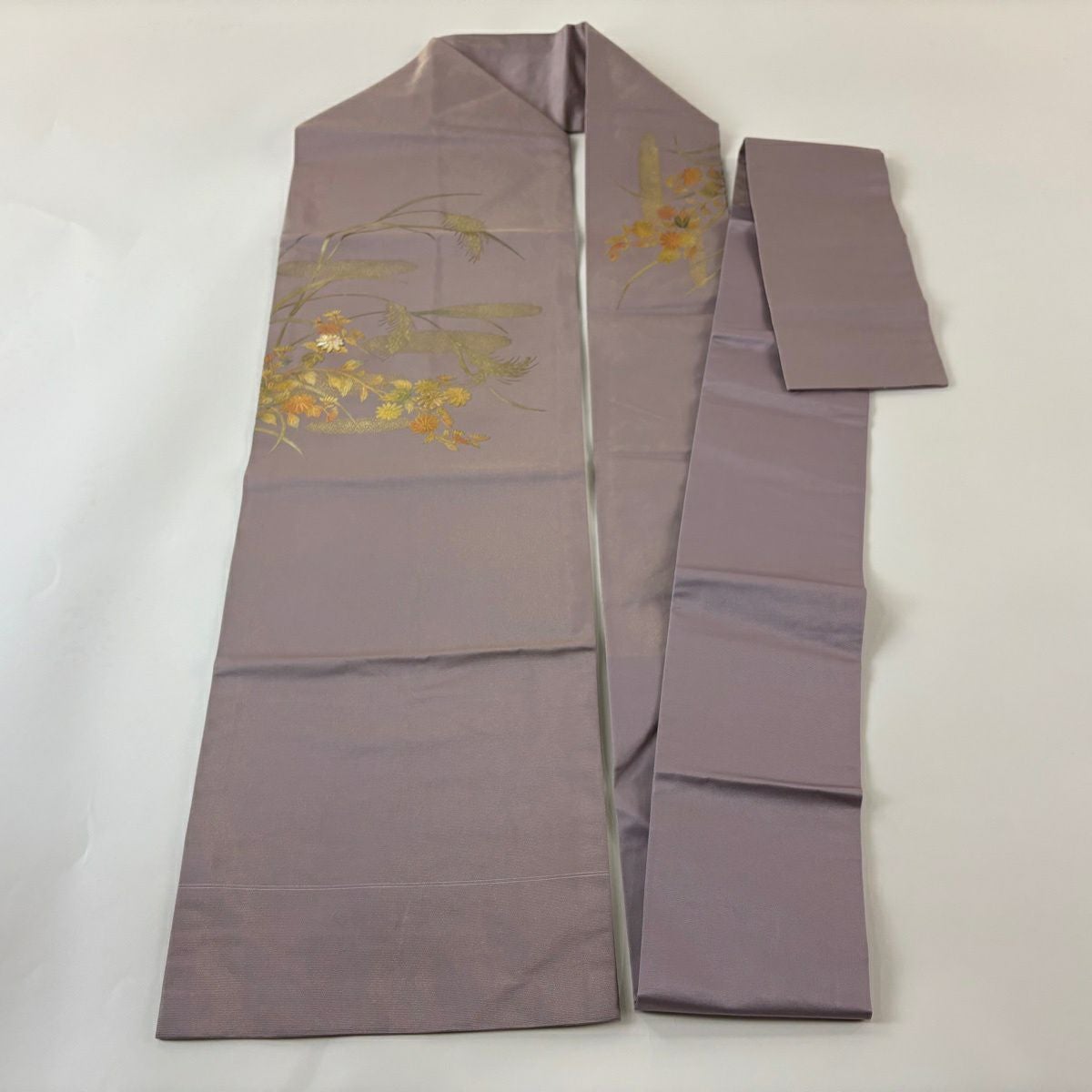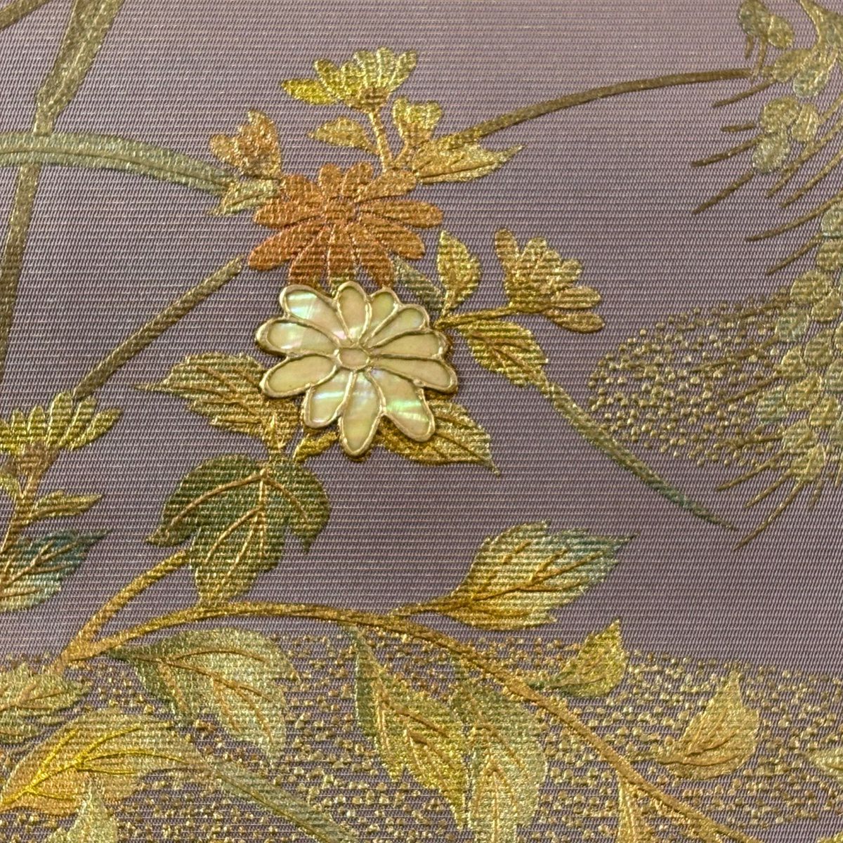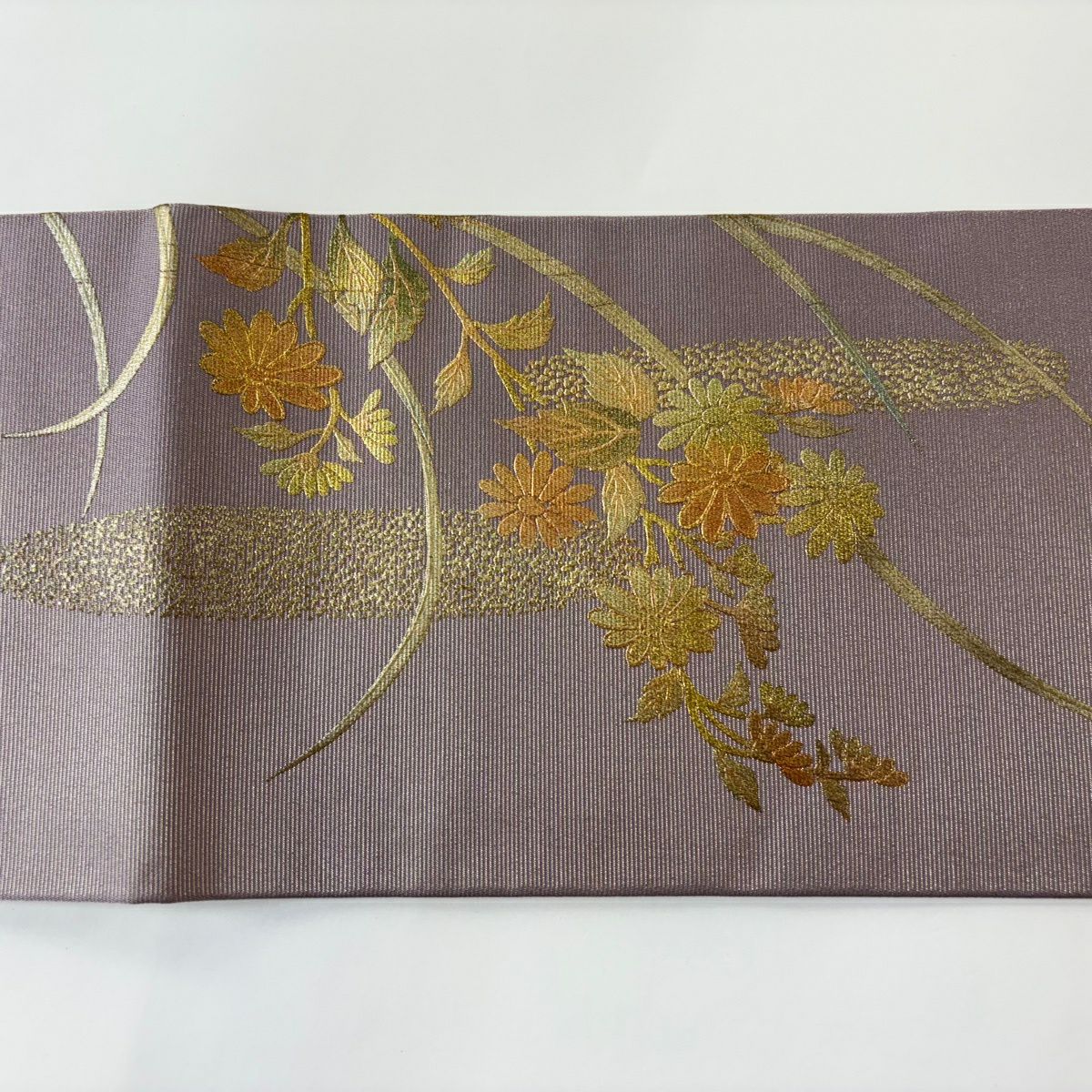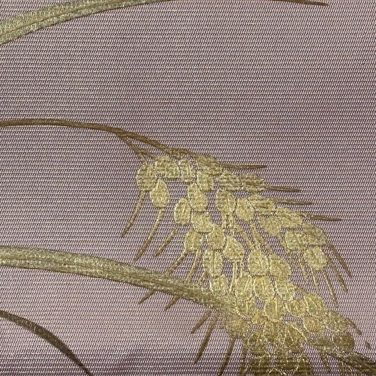 50%OFF 名古屋帯 秀品 菊 稲穂 螺鈿 金彩 灰紫 正絹 K50