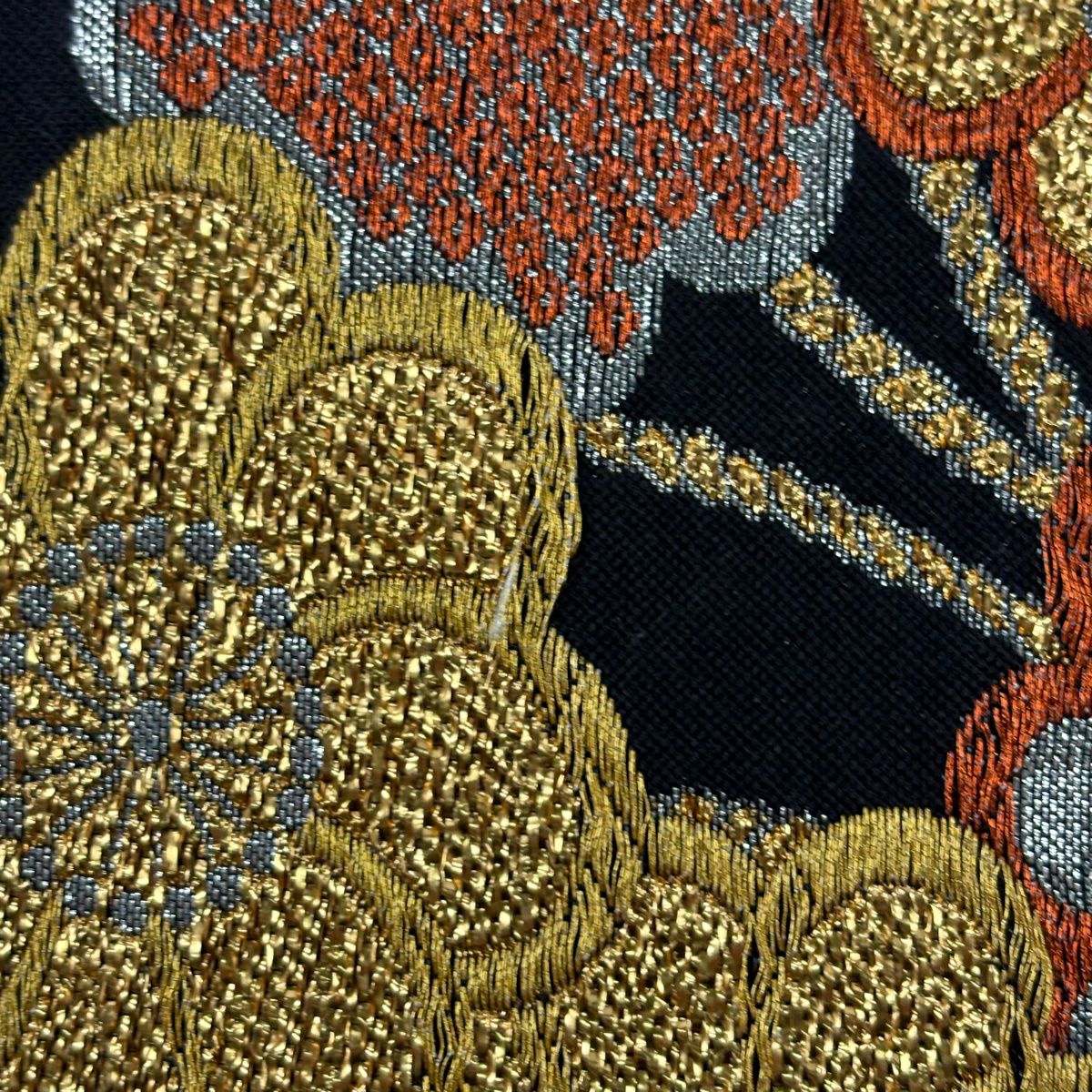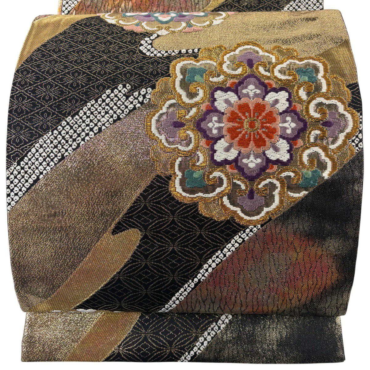 50%OFF 名古屋帯 秀品 幾何学模様 金銀糸 箔 黒 正絹 K50
