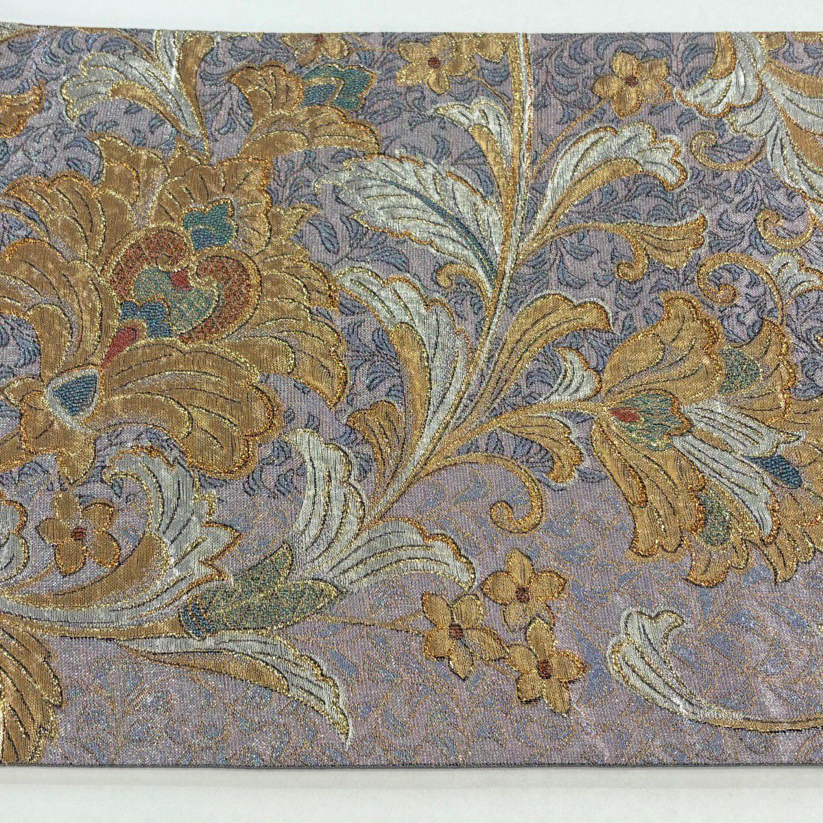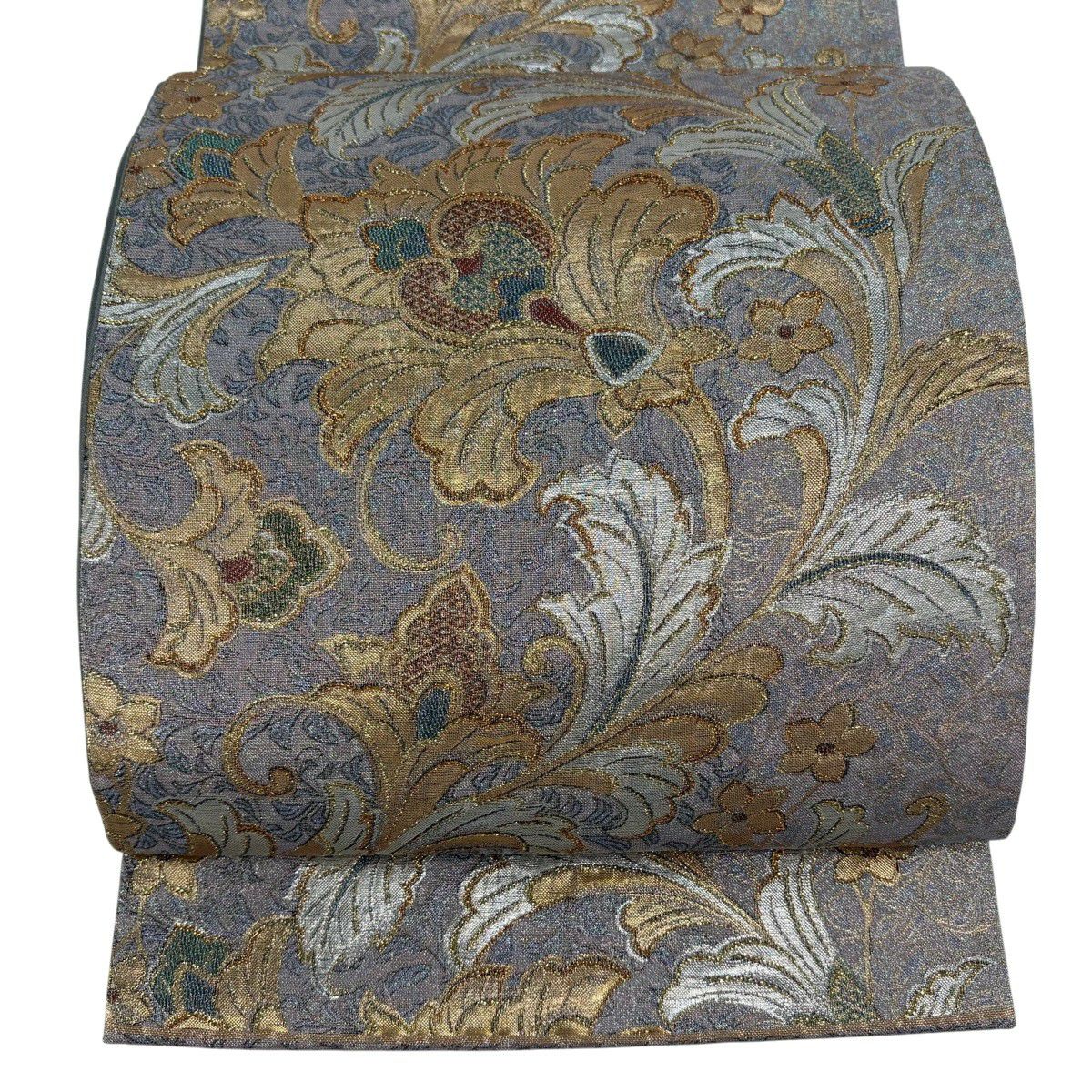 50%OFF 袋帯 秀品 桜 波 箔 金銀糸 灰紫 六通 正絹 K50