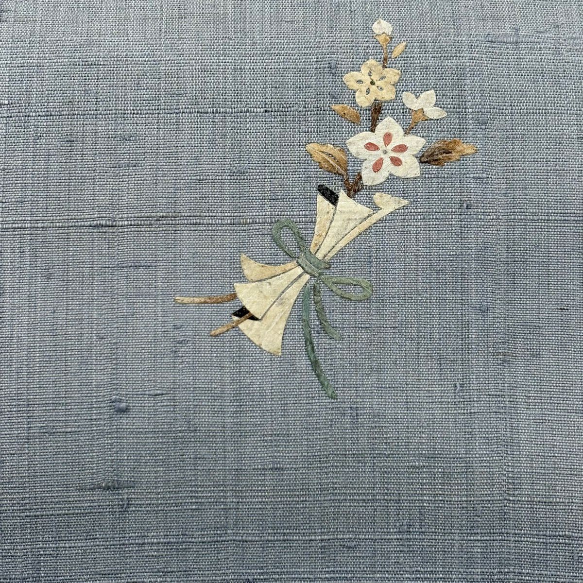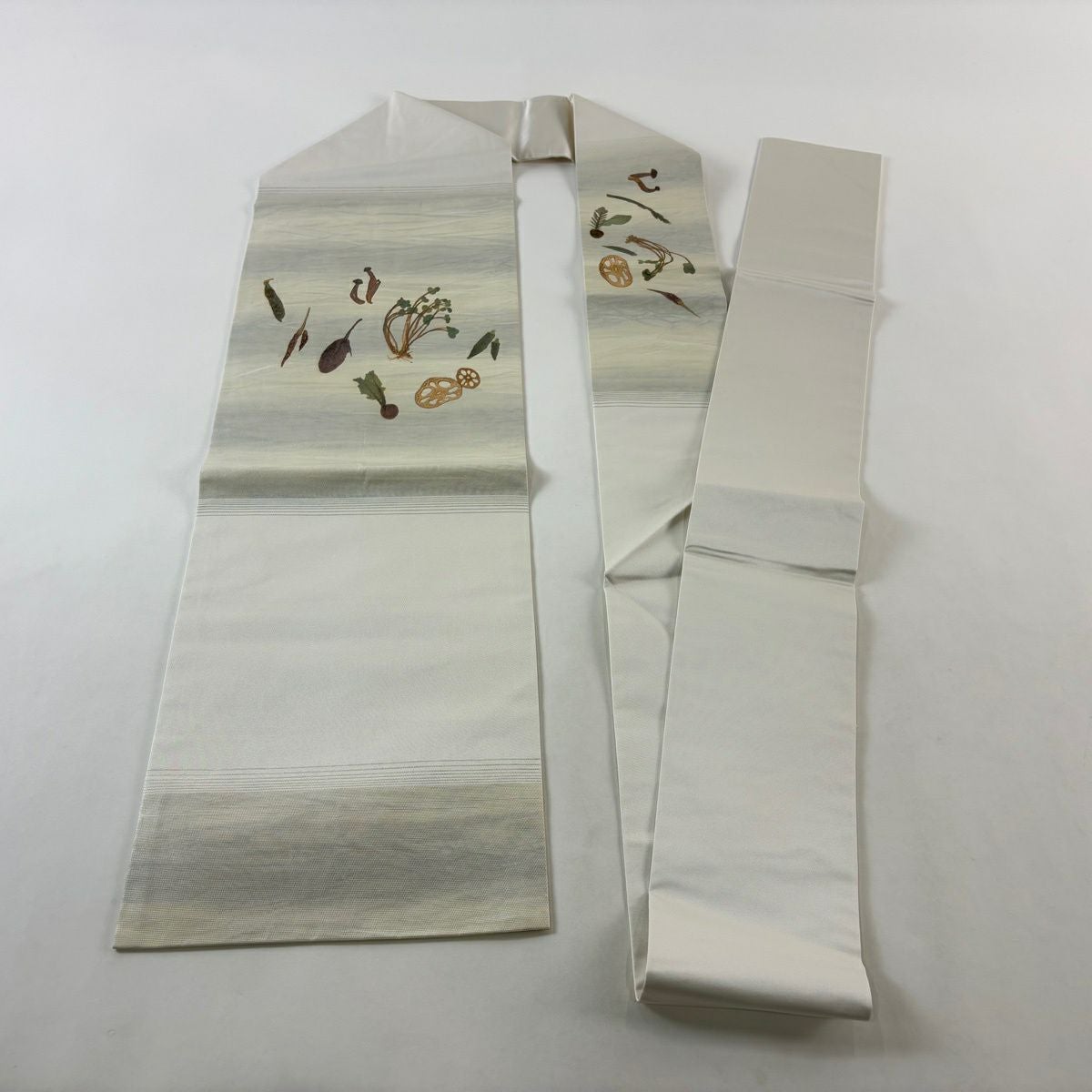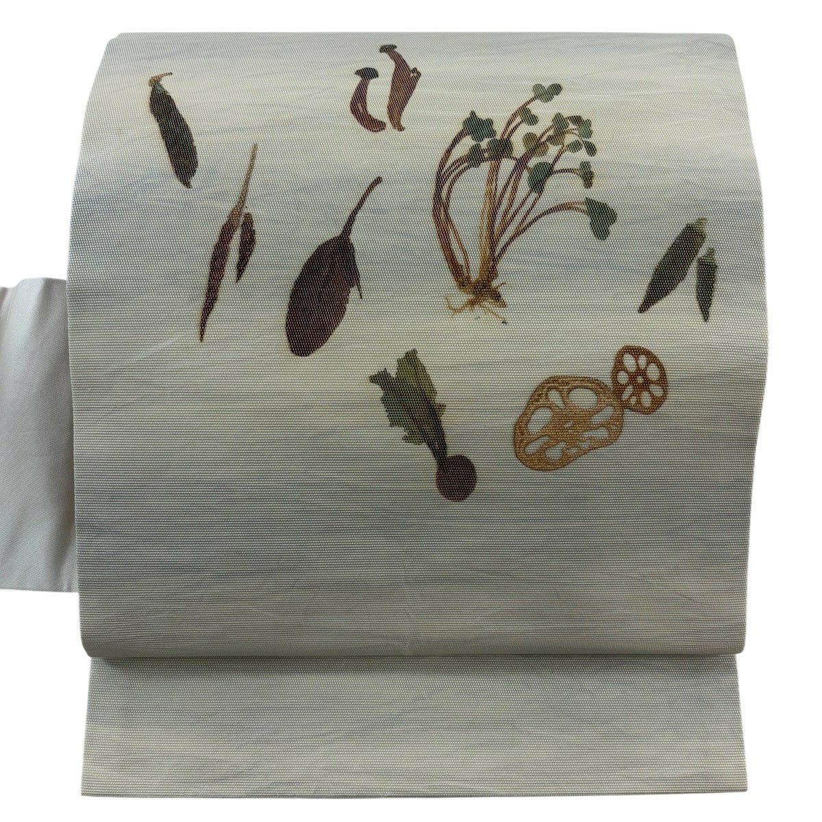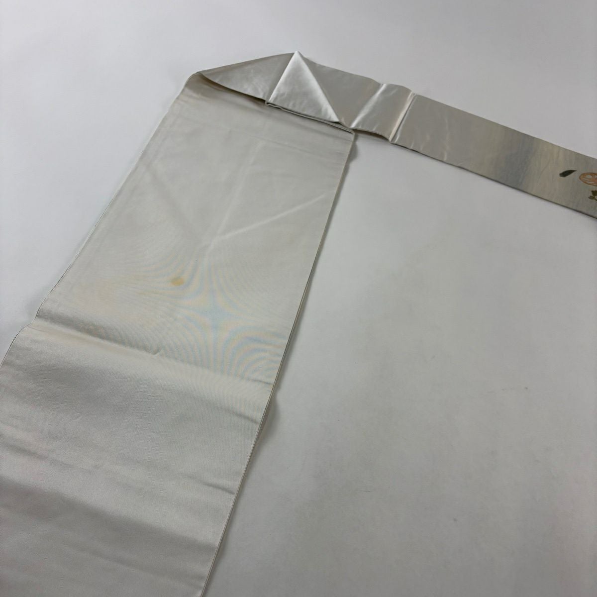 70%OFF 袋帯 秀品 色紙 草花 箔 銀色 お太鼓柄 正絹 K70