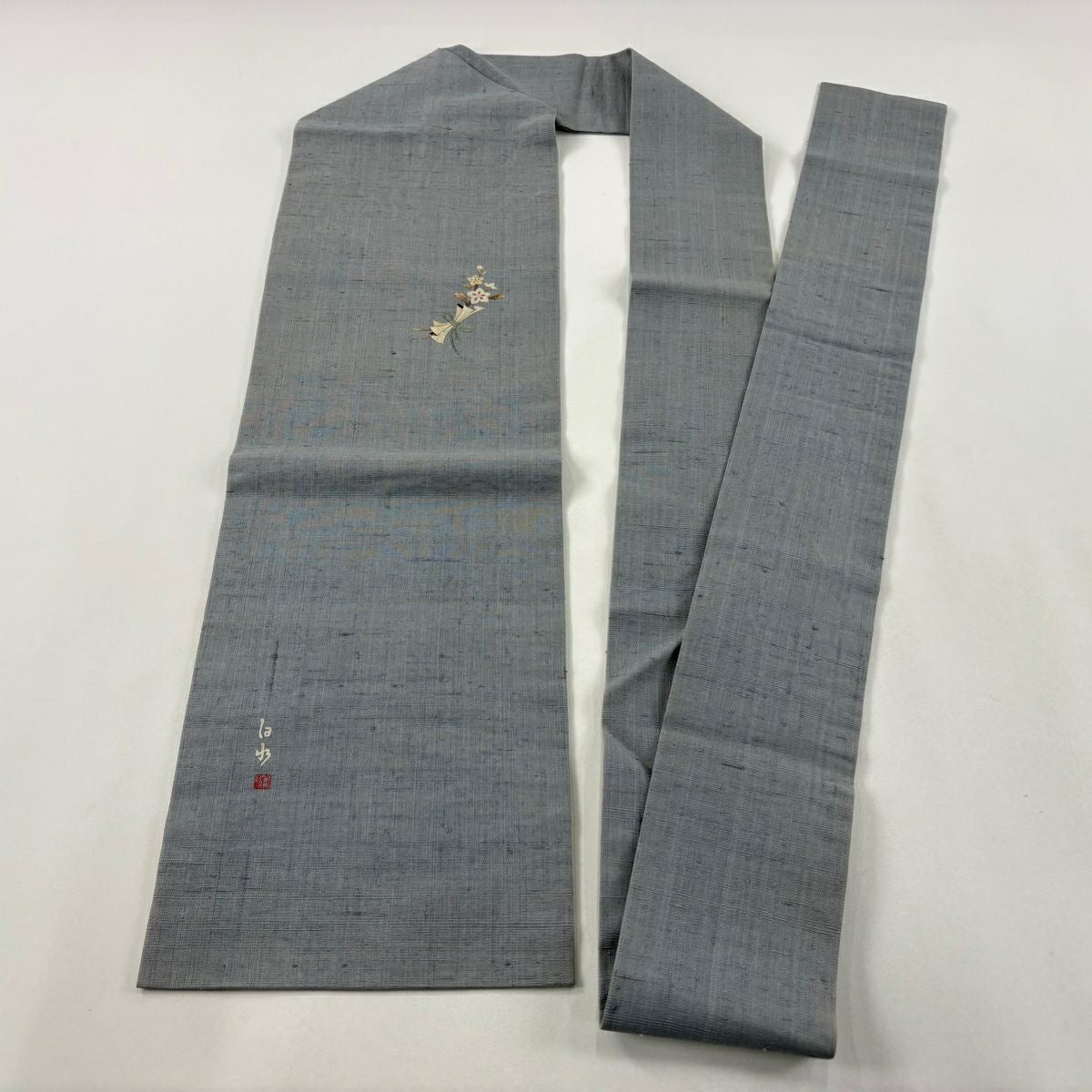 50%OFF 袋帯 秀品 桜 扇面 刺繍 箔 灰色 六通 正絹 K50