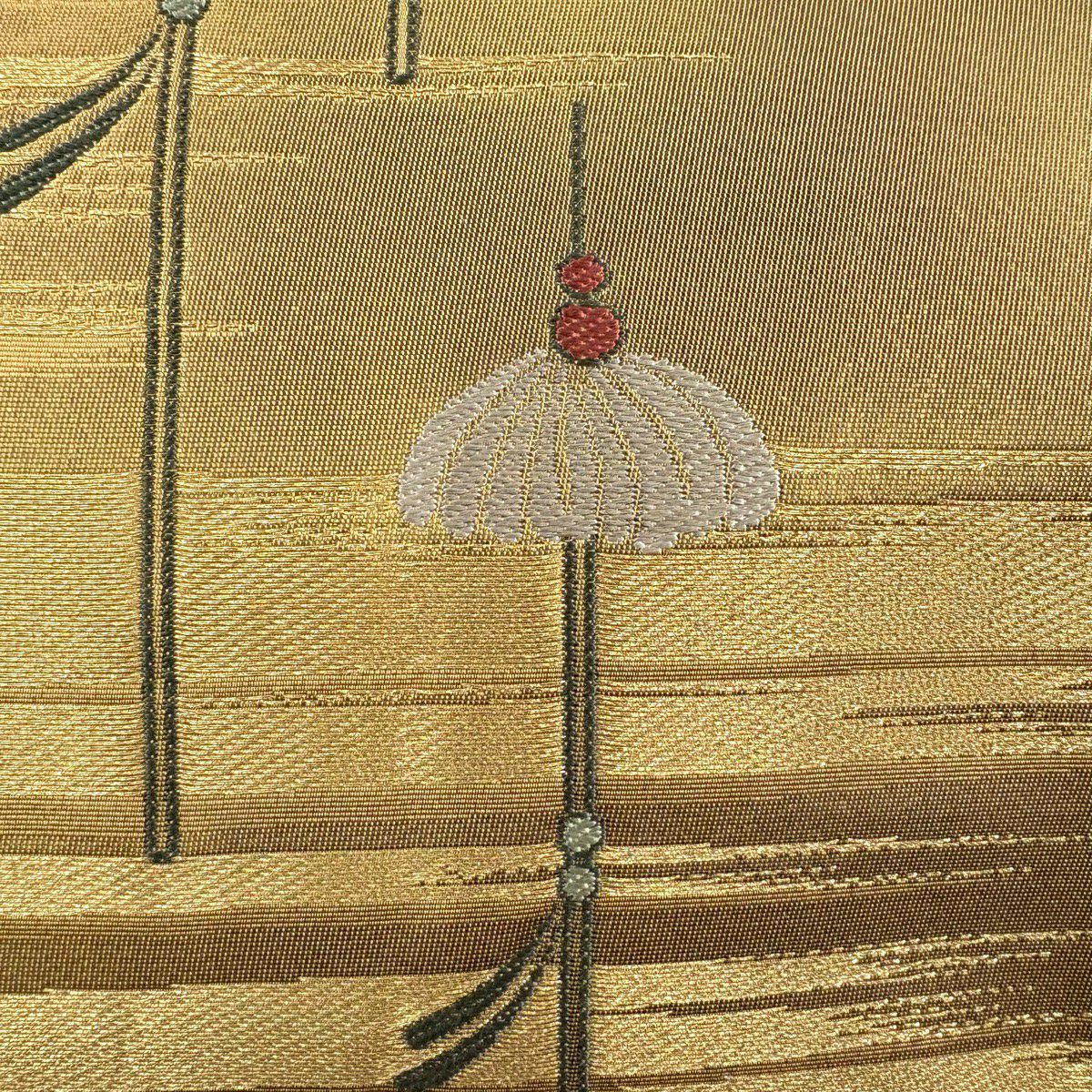 70%OFF 袋帯 秀品 鶴 笠松 唐織 箔 金色 六通 正絹 K70