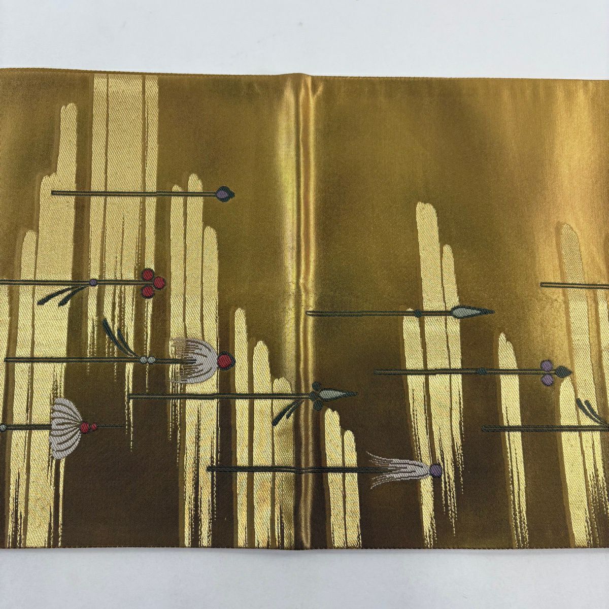 70%OFF 袋帯 秀品 短冊 花鳥 金糸 箔 金色 六通 正絹 K70